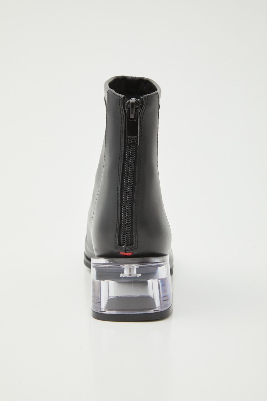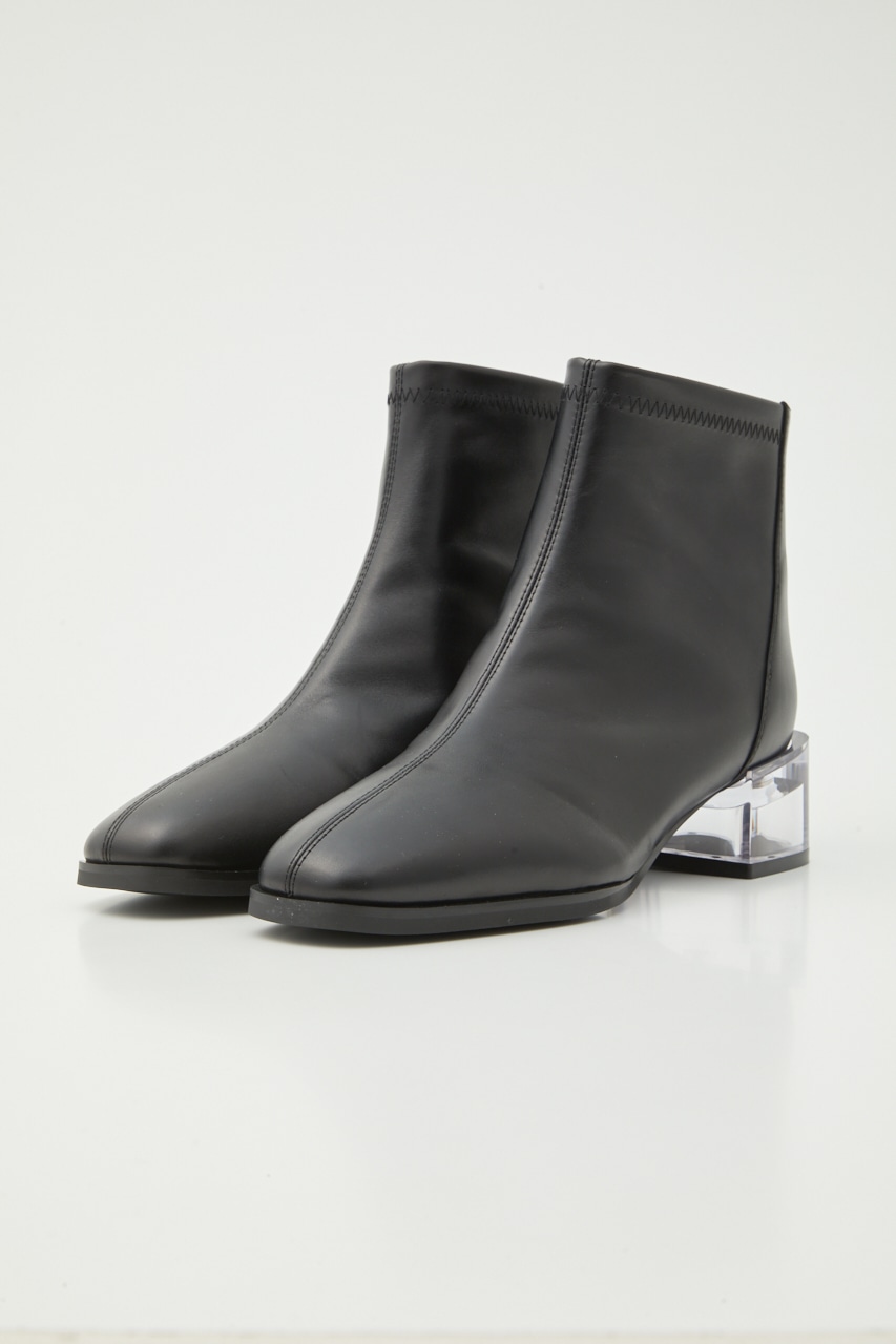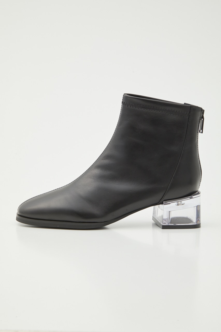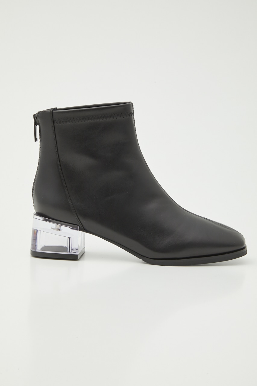 大人気のクリアヒールブーツが復刻発売!程よいスクエアトゥ&ミドル丈のショートブーツにヌーディーなクリアヒールを合わせたデザインブーツ。重たくなりがちな秋冬のスタイリングにヌケ感をプラスしてくれる太めのクリアヒールは、足元を演出するだけでなく安定感のある歩行も◎