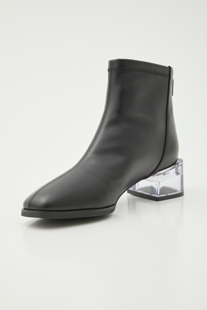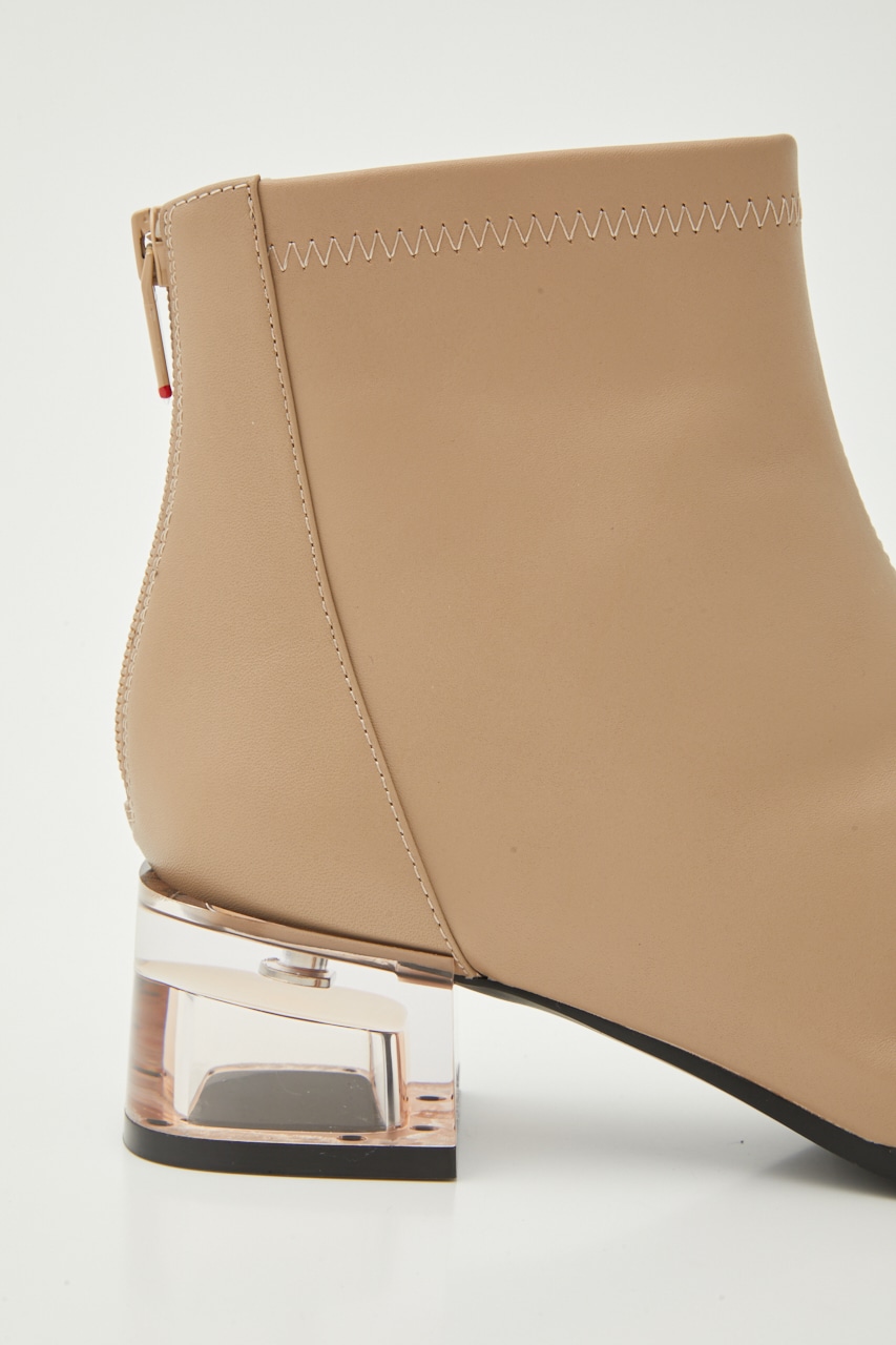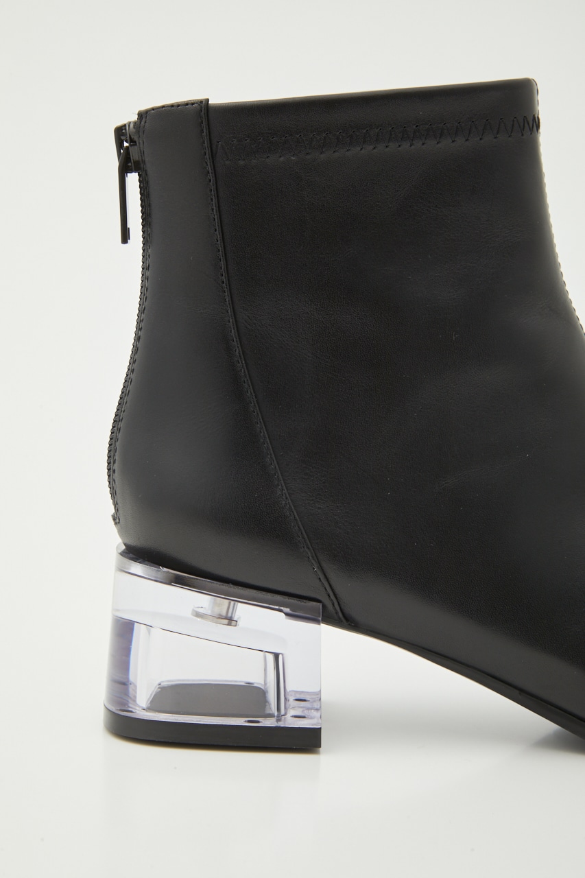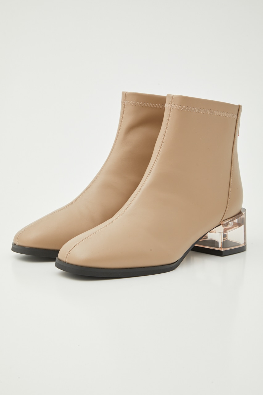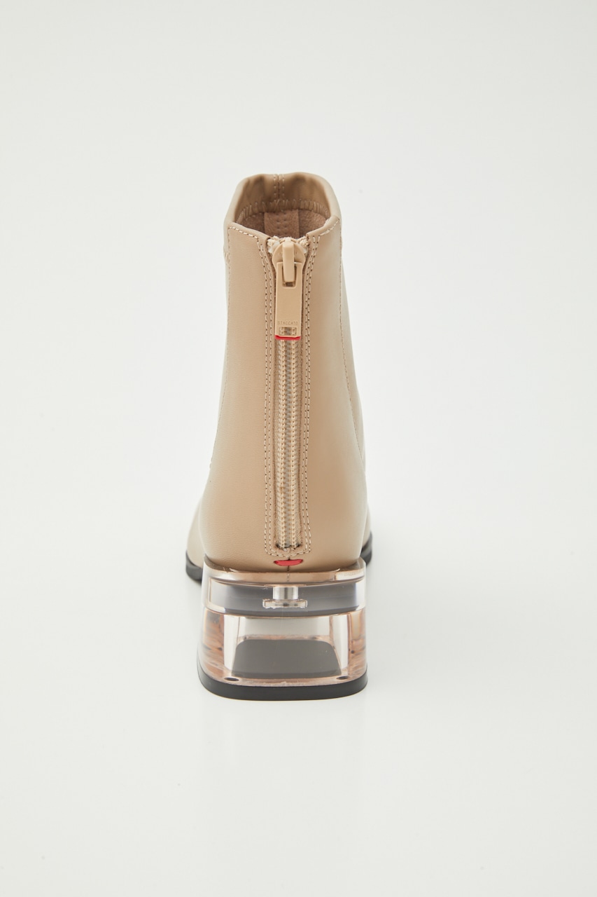 大人気のクリアヒールブーツが復刻発売!程よいスクエアトゥ&ミドル丈のショートブーツにヌーディーなクリアヒールを合わせたデザインブーツ。重たくなりがちな秋冬のスタイリングにヌケ感をプラスしてくれる太めのクリアヒールは、足元を演出するだけでなく安定感のある歩行も◎