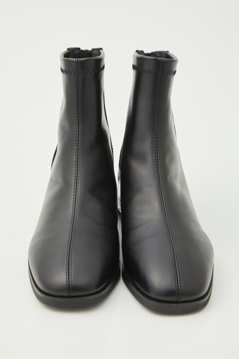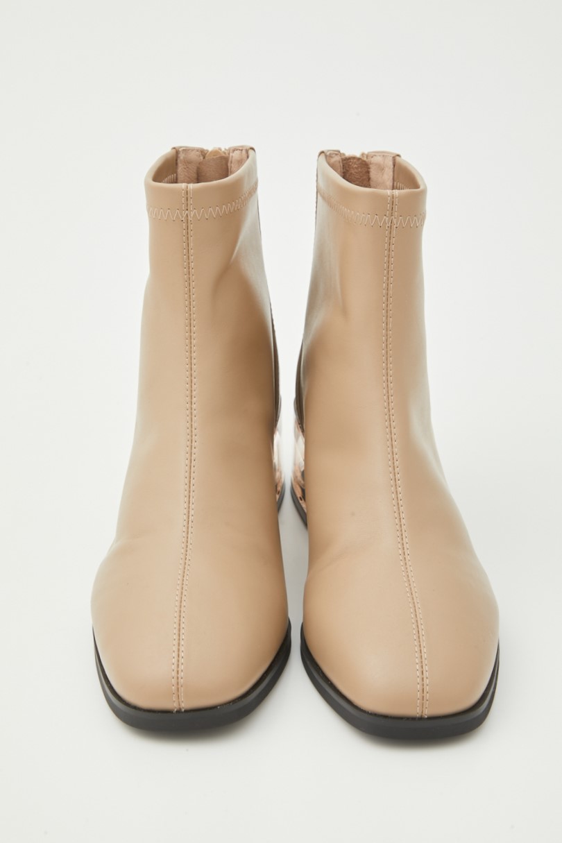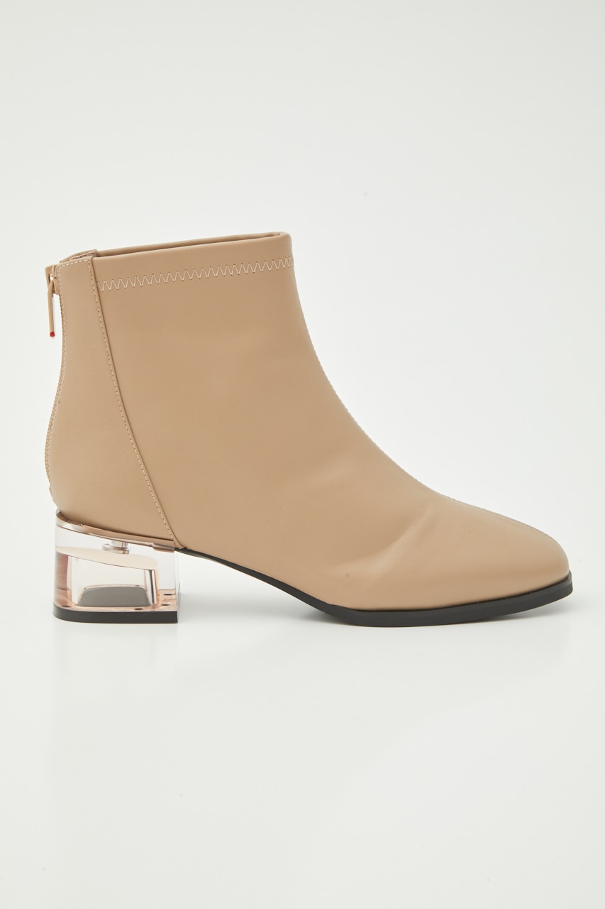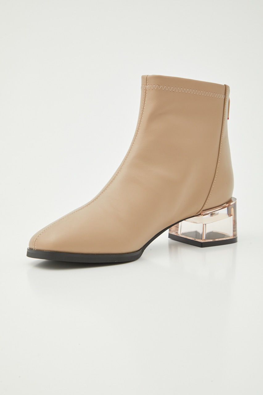 大人気のクリアヒールブーツが復刻発売!程よいスクエアトゥ&ミドル丈のショートブーツにヌーディーなクリアヒールを合わせたデザインブーツ。重たくなりがちな秋冬のスタイリングにヌケ感をプラスしてくれる太めのクリアヒールは、足元を演出するだけでなく安定感のある歩行も◎