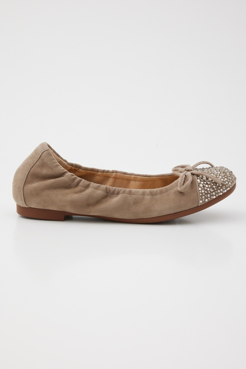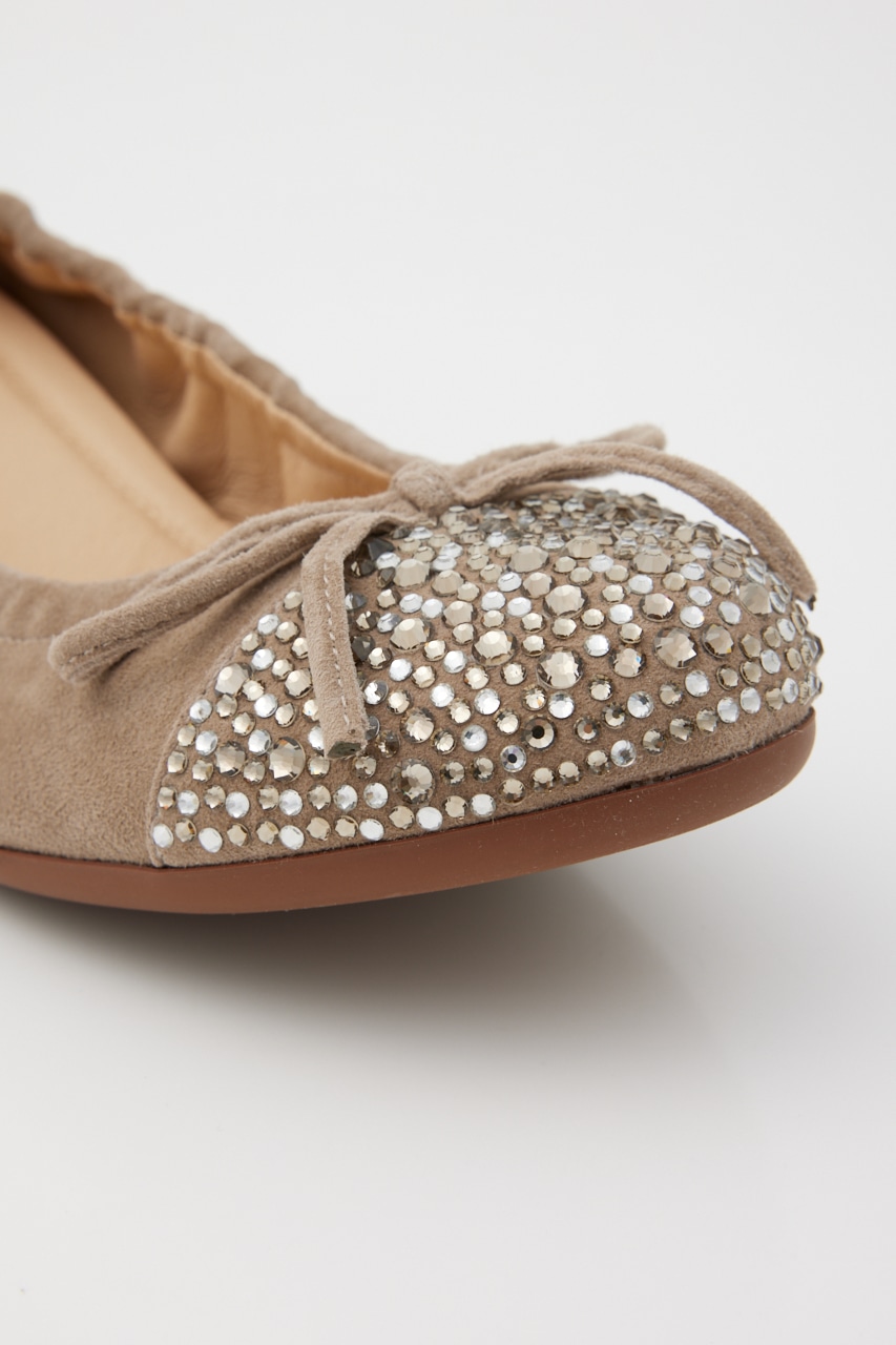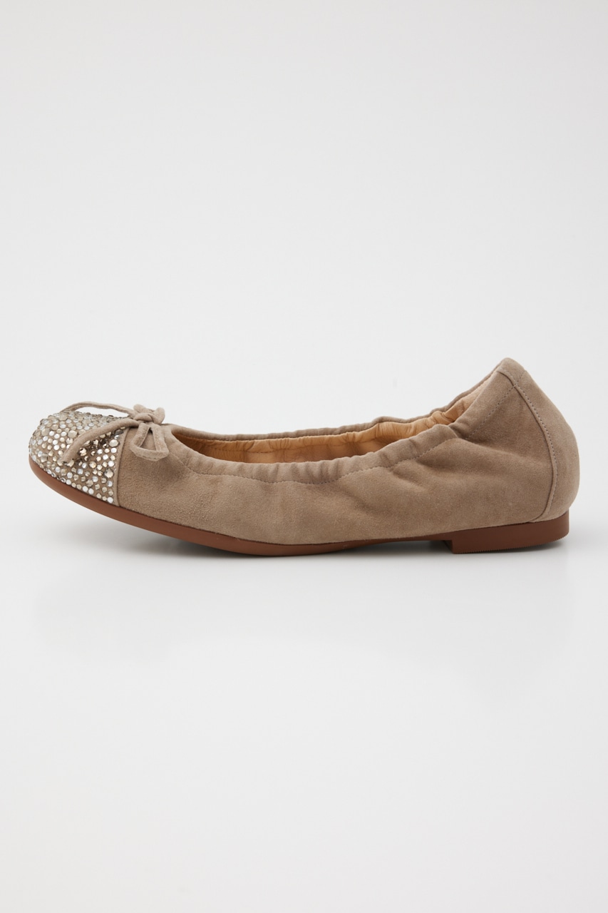 ラフに履けるのにカジュアル見えしない、つま先部分のMIXカラーストーンが煌びやかで上品見えしてくれる。屈曲・柔軟性も◎なオリジナリティ溢れるバレエシューズ。厚みのあるインソール入りで足裏負荷もかかりにくく、もっちりとした履き心地です。