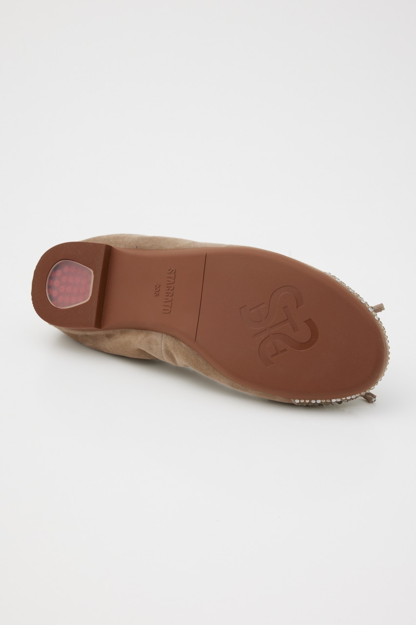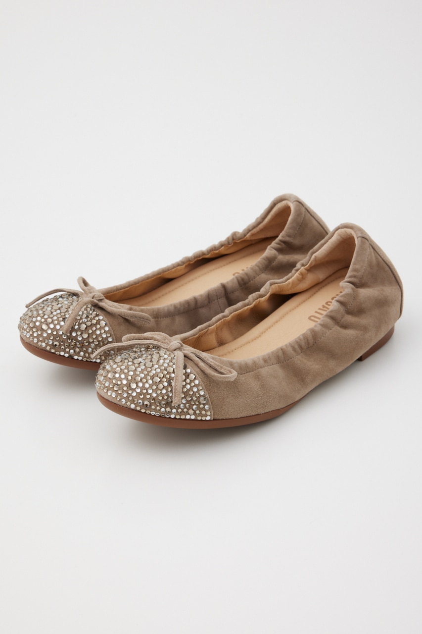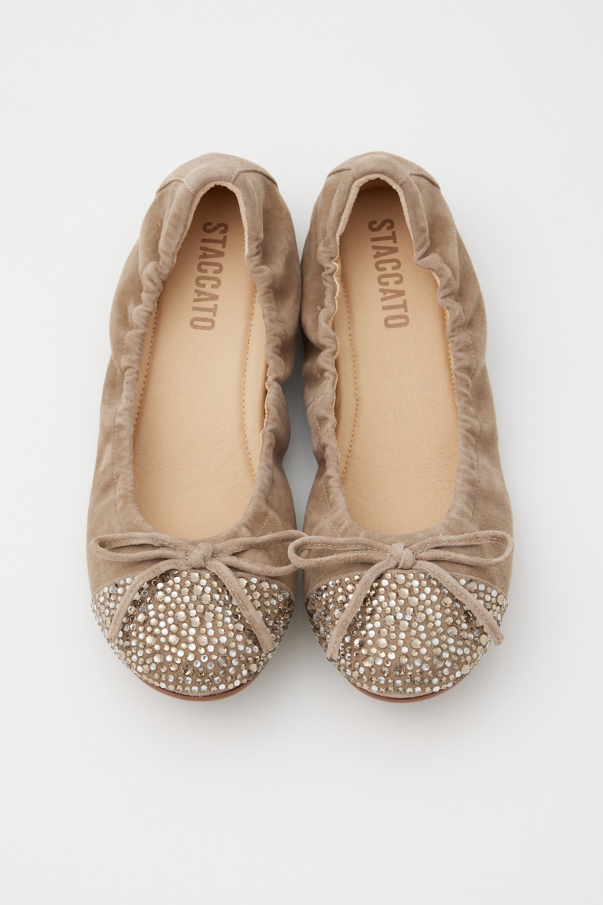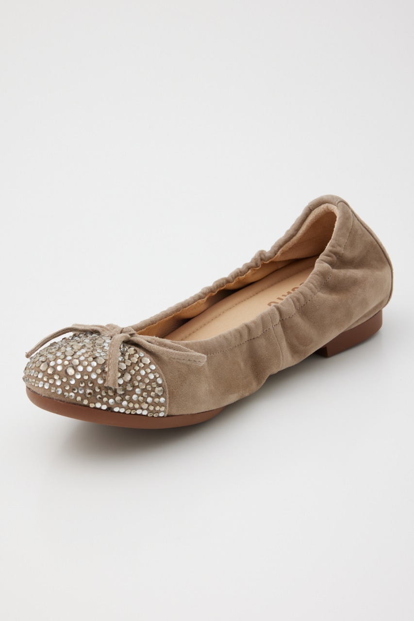 ラフに履けるのにカジュアル見えしない、つま先部分のMIXカラーストーンが煌びやかで上品見えしてくれる。屈曲・柔軟性も◎なオリジナリティ溢れるバレエシューズ。厚みのあるインソール入りで足裏負荷もかかりにくく、もっちりとした履き心地です。