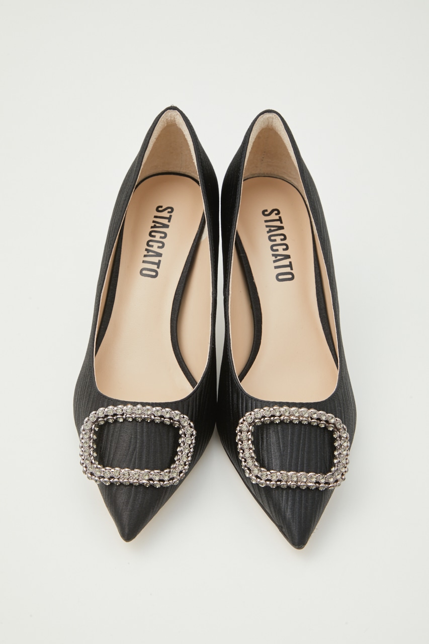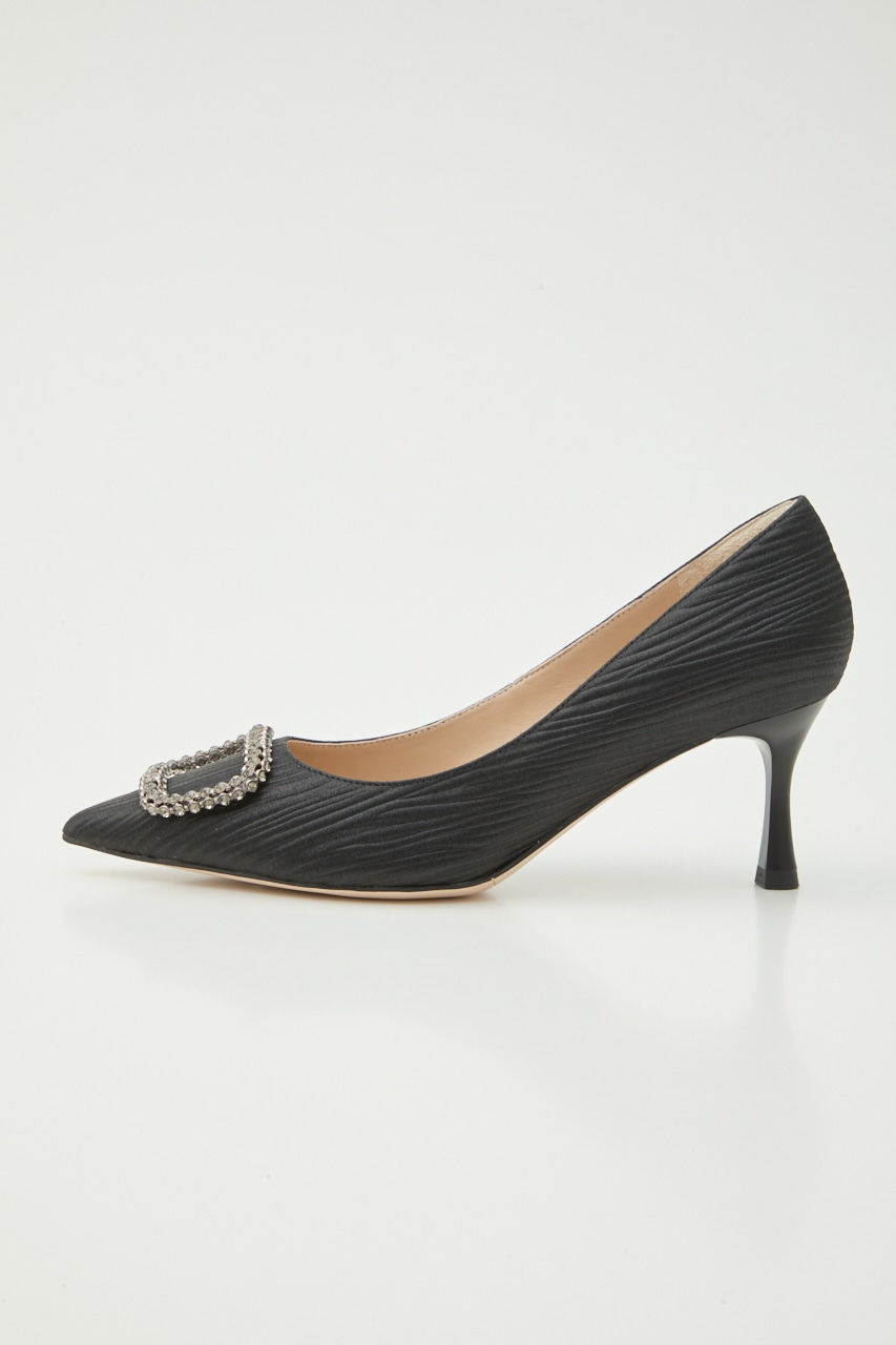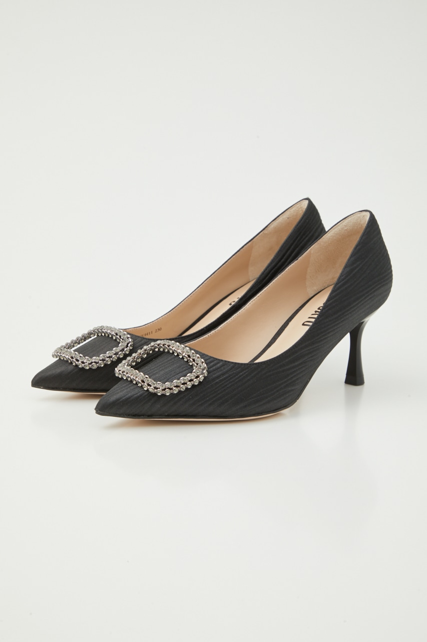 【ELLE DIGITAL 2023年8月18日UP分】 品格ある足元を叶えてくれる、美フォルムパンプス。光沢感ある麗しいドレープ風サテン地にどこからみてもBrilliantなバックルが乙女心くすぐる秀逸なデザインです。