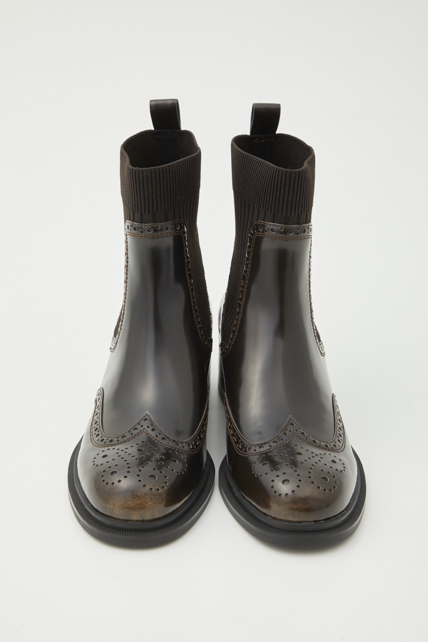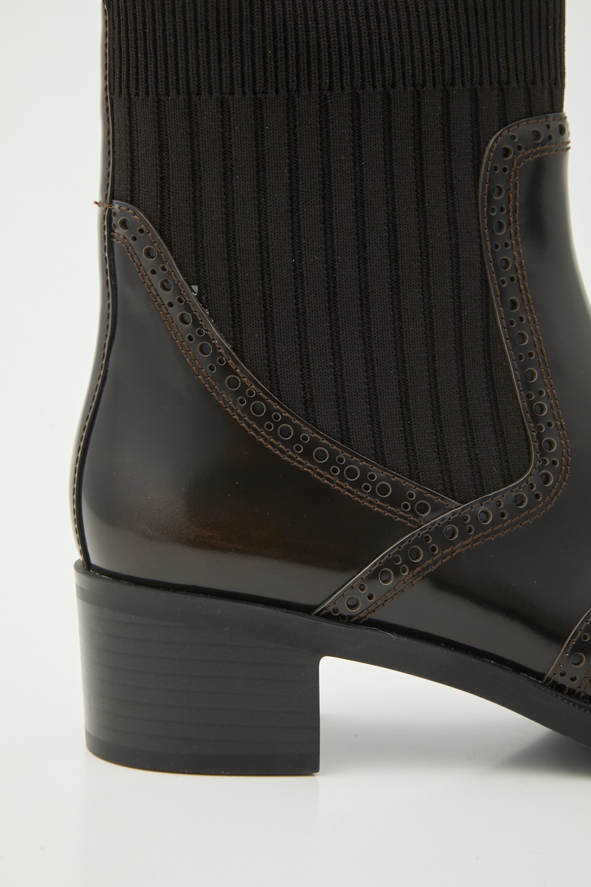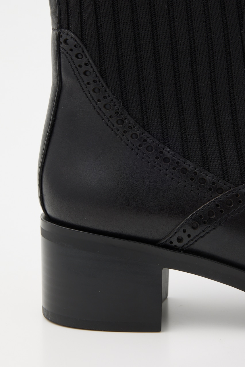 風格あるブリティッシュなルックスに、クラシカル感が旬なリブニットコンビブーツ。かっちりとしたスタイルからフェミニンなスタイルまで相性抜群。平坦しすぎない表情感あるデザインはきっちり感もありながら、履き口部分は太めのリブなので伸縮性と程良いフィット感もあり心地の良い足あたりです。
