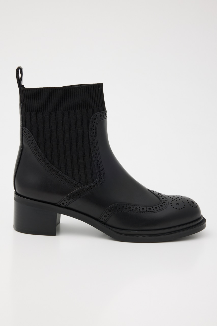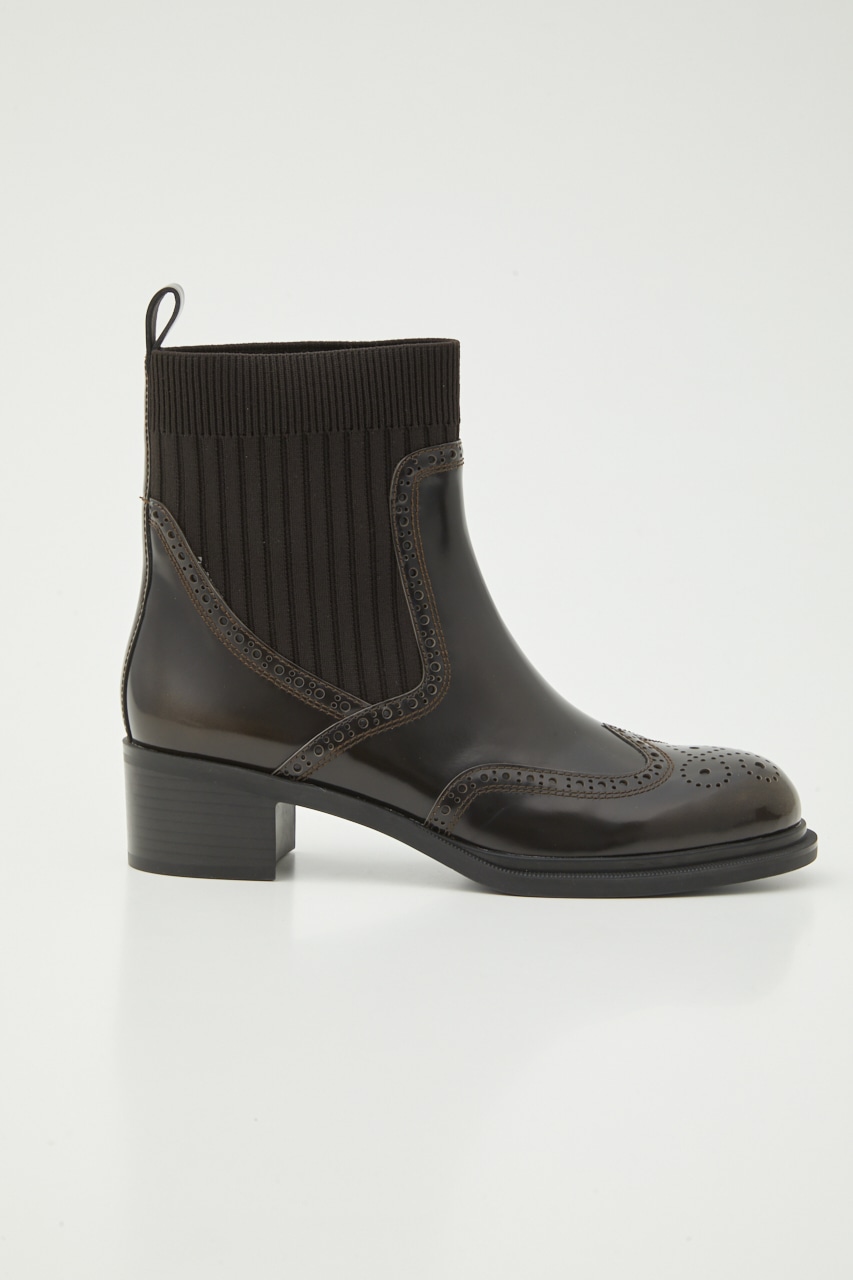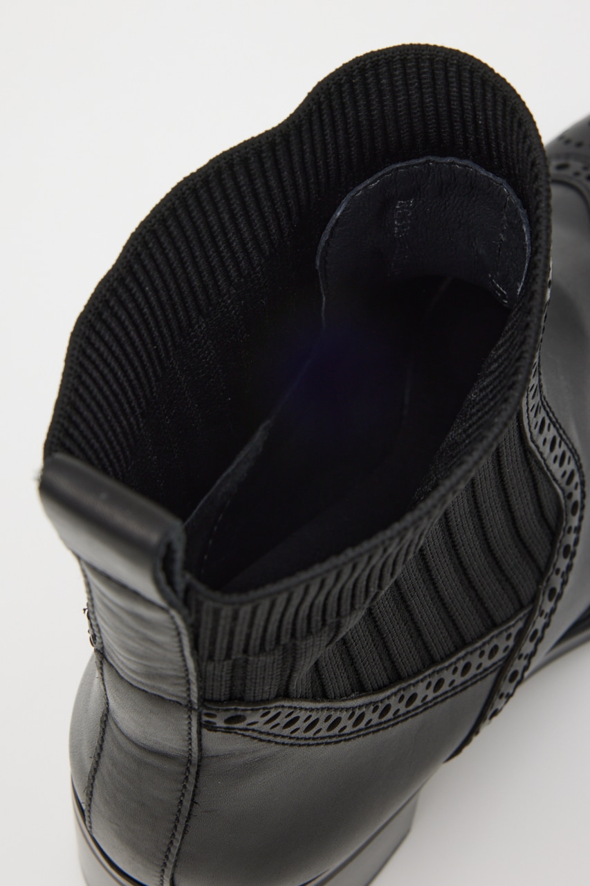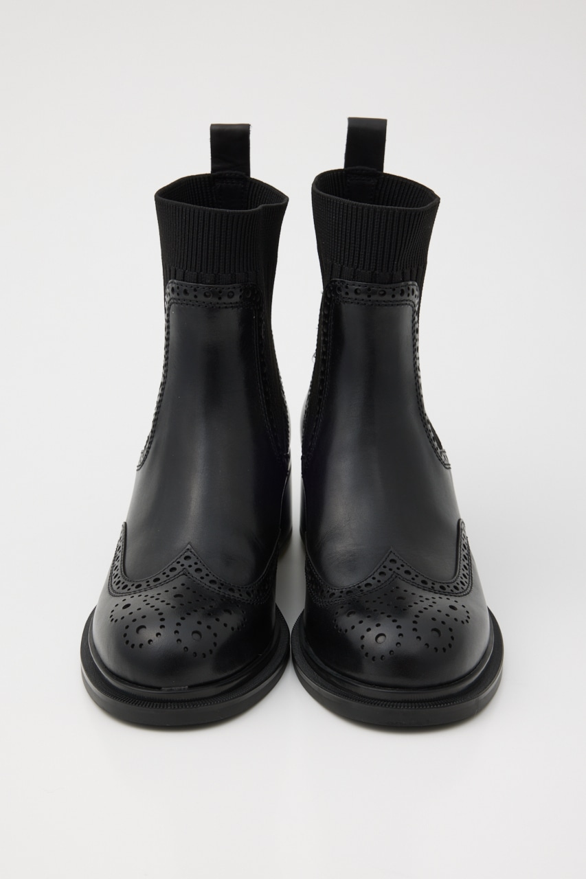 風格あるブリティッシュなルックスに、クラシカル感が旬なリブニットコンビブーツ。かっちりとしたスタイルからフェミニンなスタイルまで相性抜群。平坦しすぎない表情感あるデザインはきっちり感もありながら、履き口部分は太めのリブなので伸縮性と程良いフィット感もあり心地の良い足あたりです。