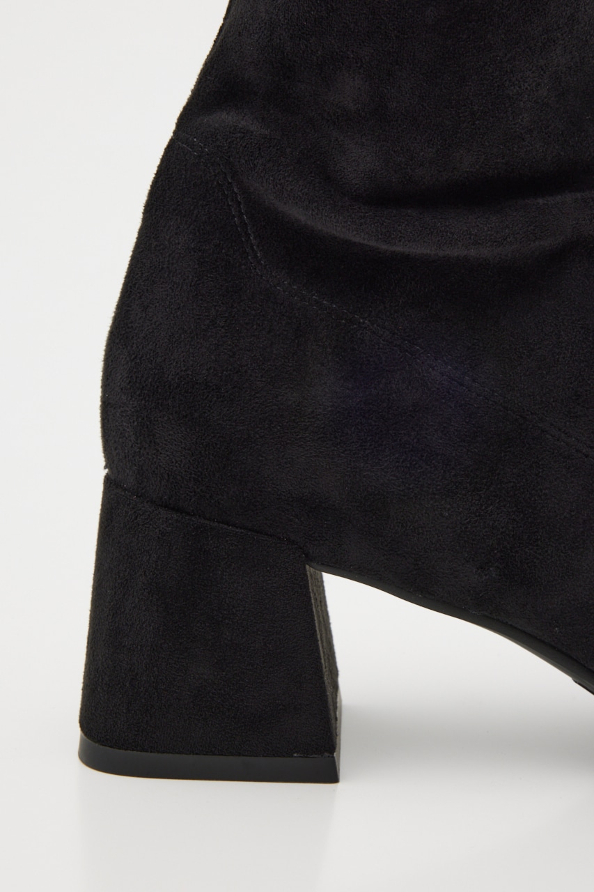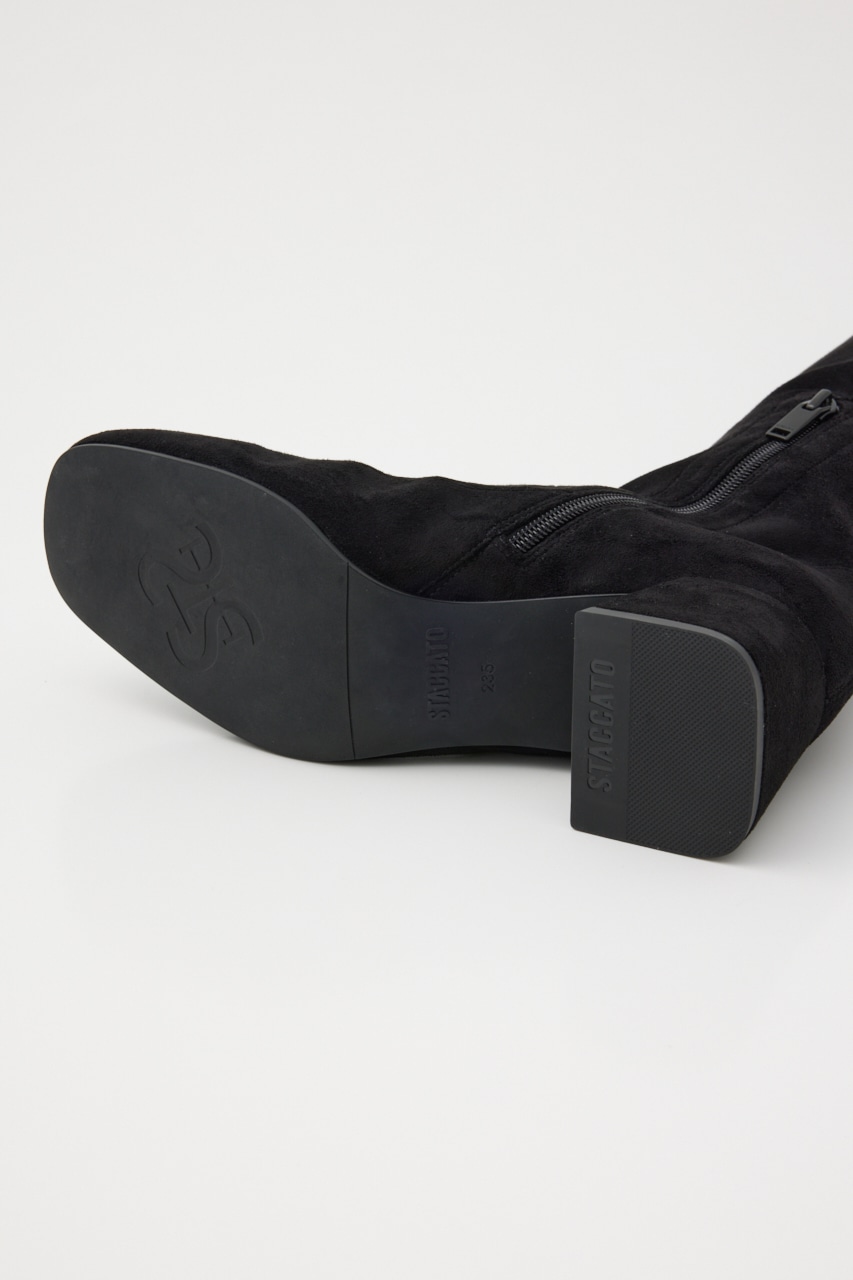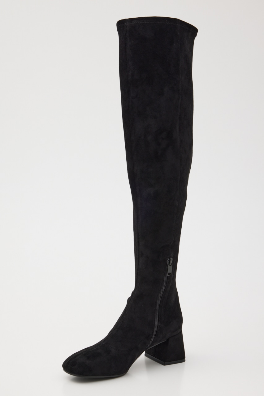 フィット感と脚長効果抜群のスタイルアップが叶うストレッチニーハイブーツ。窮屈感のないラウンドトゥ&接地面の広いブロックヒールで安定感も抜群です。滑らかなスエードタッチにストレッチがきいているのでINでもOUTでも履いていただけます。