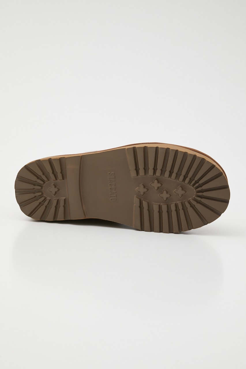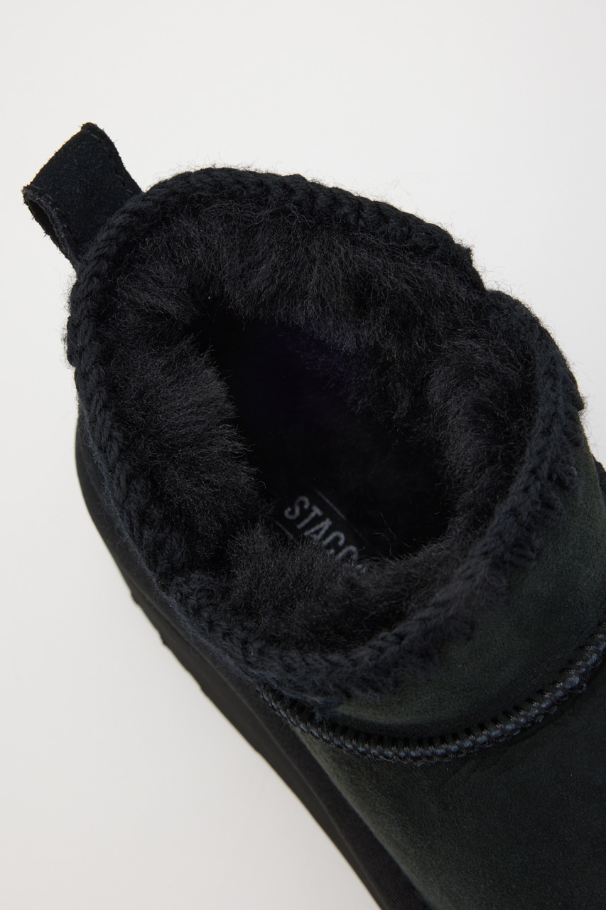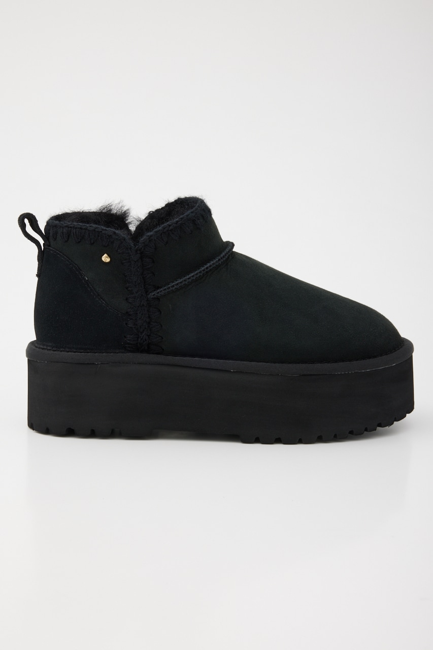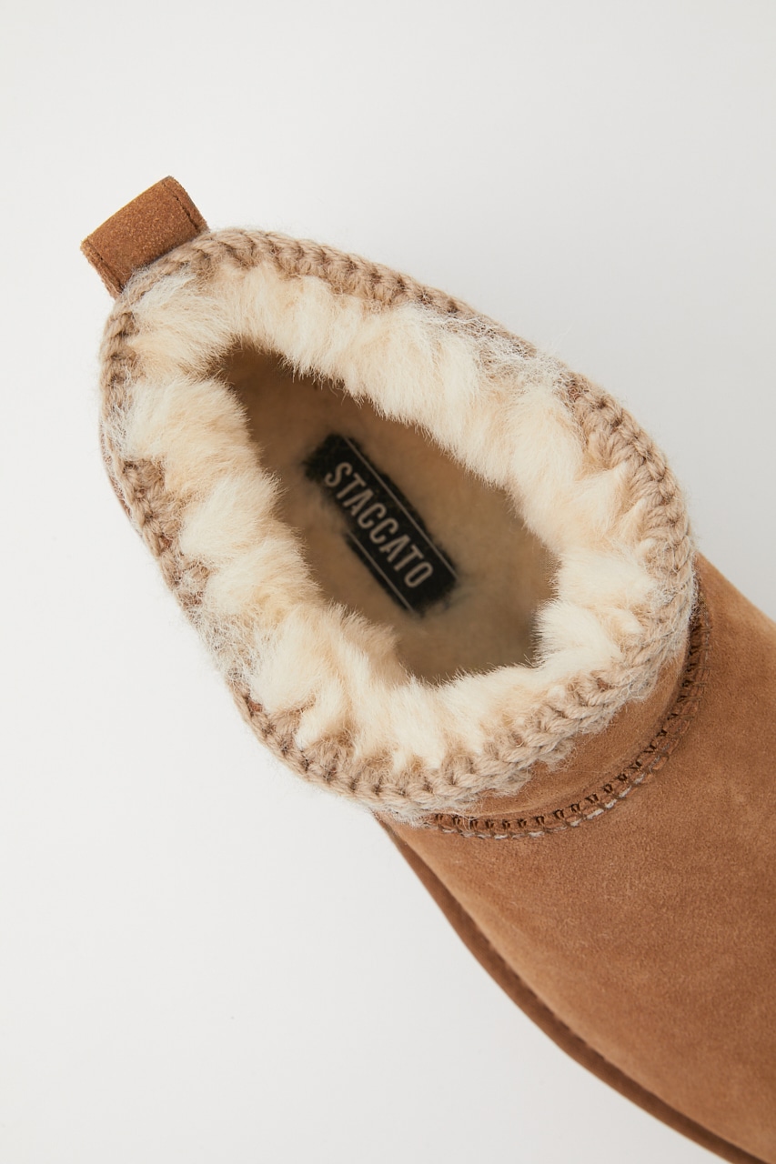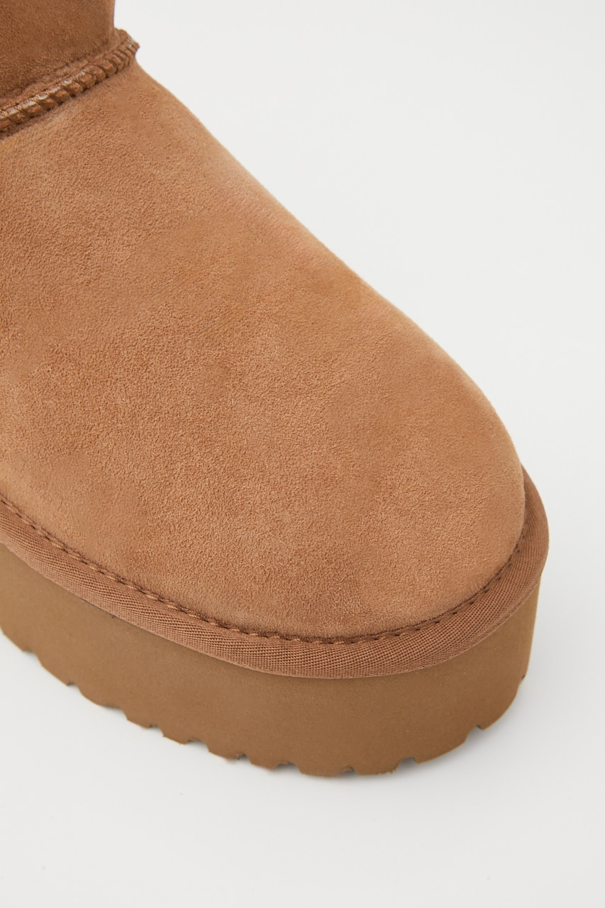 【GISELe 2024年1月号 P72,73掲載】 ボヘミアンな雰囲気のムートンブーツ。カントリー感も感じる太めステッチに、トレンドライクな厚底ソールが脚長効果も◎ライニングは吸湿性と放湿性・通気性に優れたシープスキンで快適&保温性も防寒対策もパッチリです。