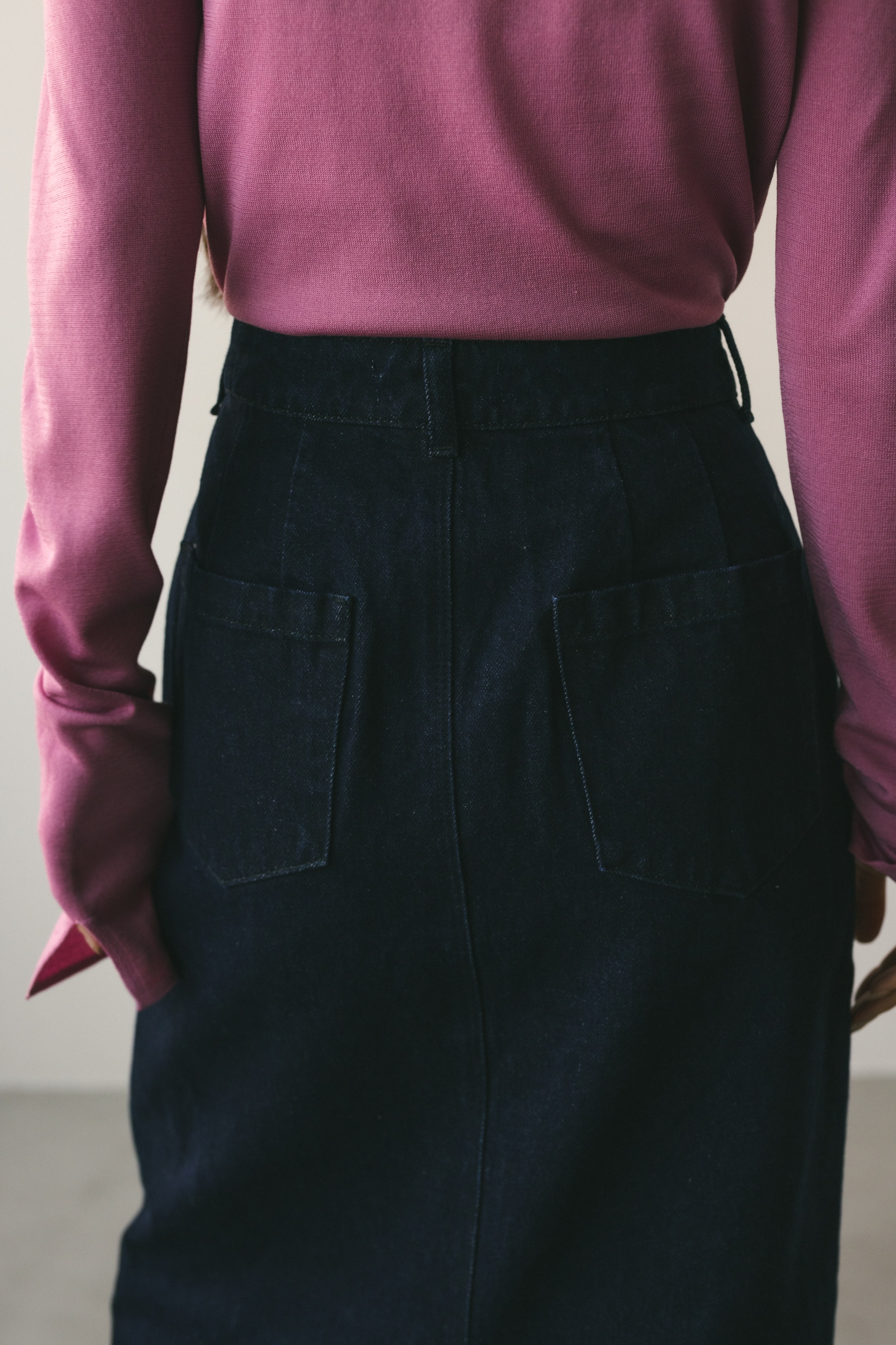 大きく開いた上品な重ねバックスリットがポイントのペンシルラインスカート。