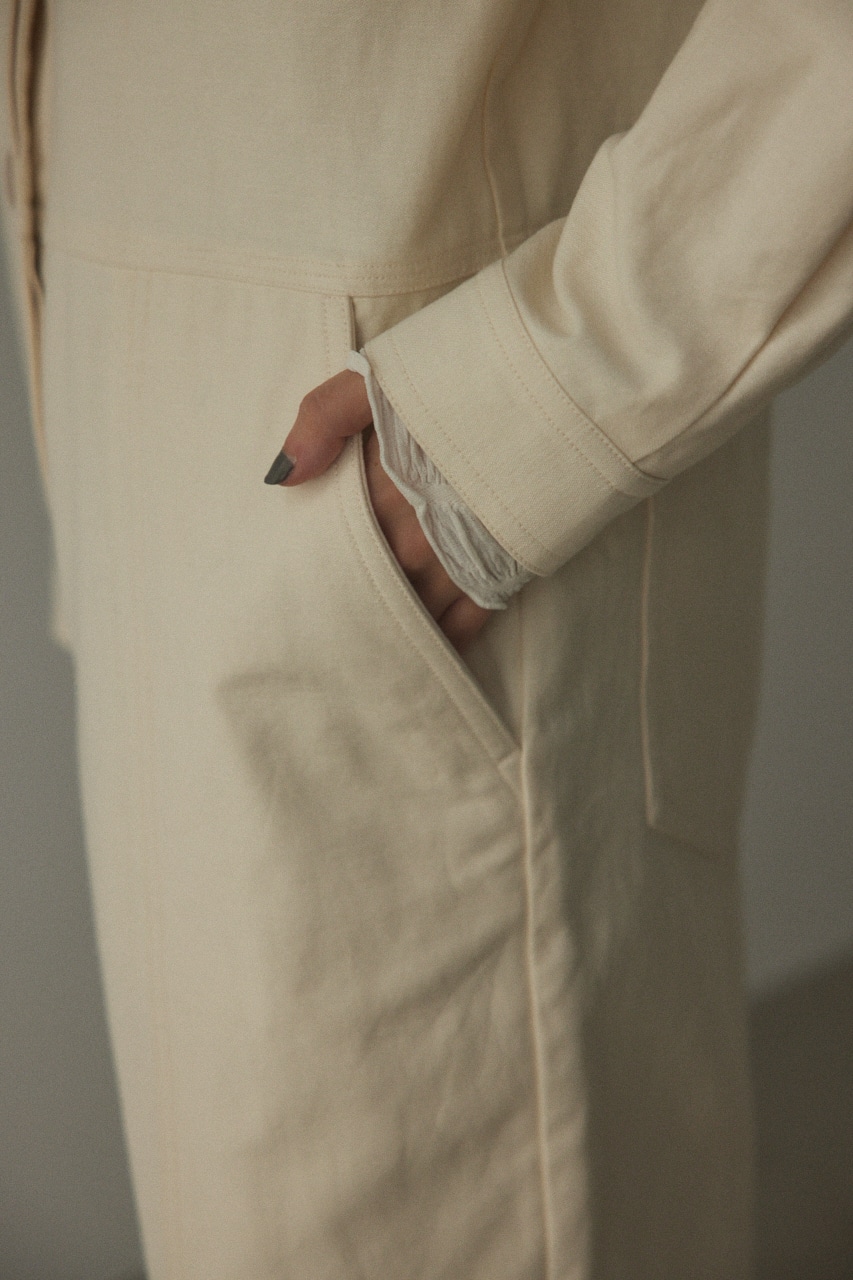 インナーにトップスを合わせ、袖を腰に結んだスタイリングも楽しめる一枚。