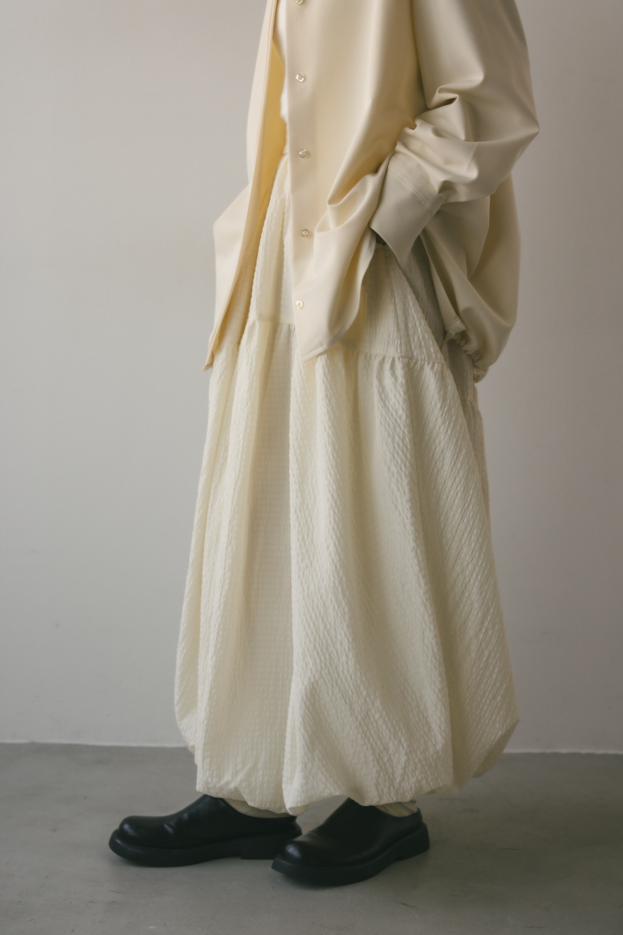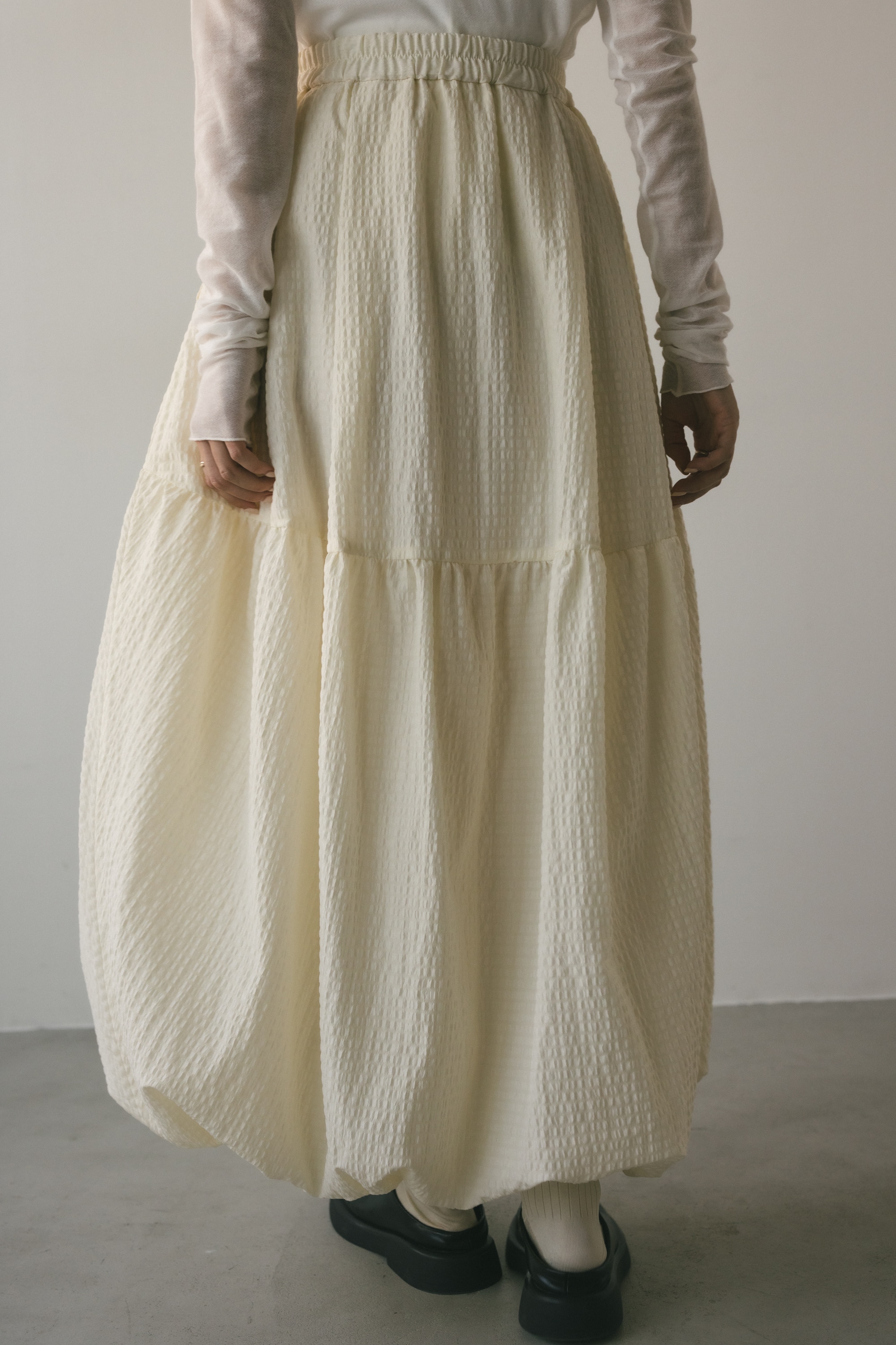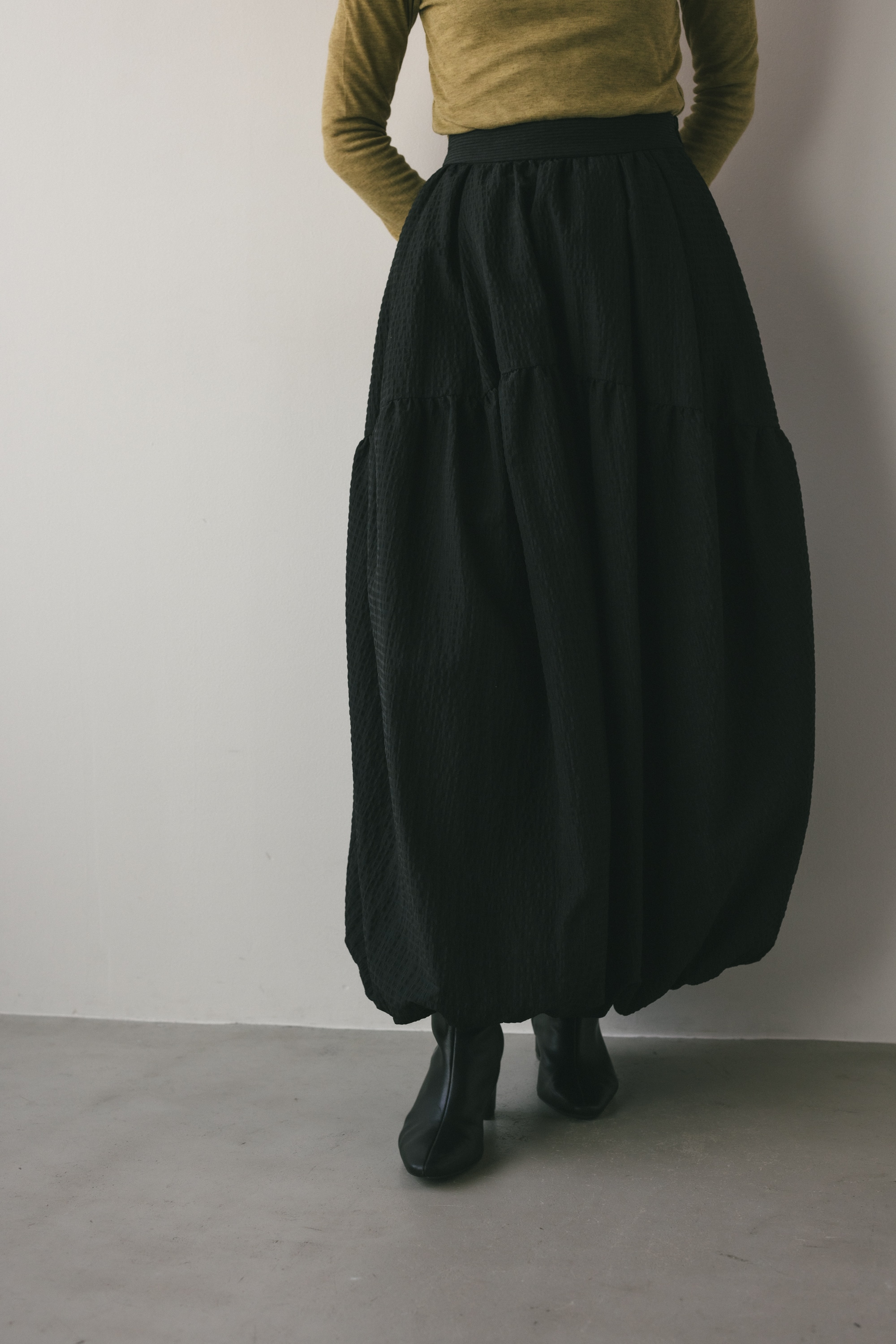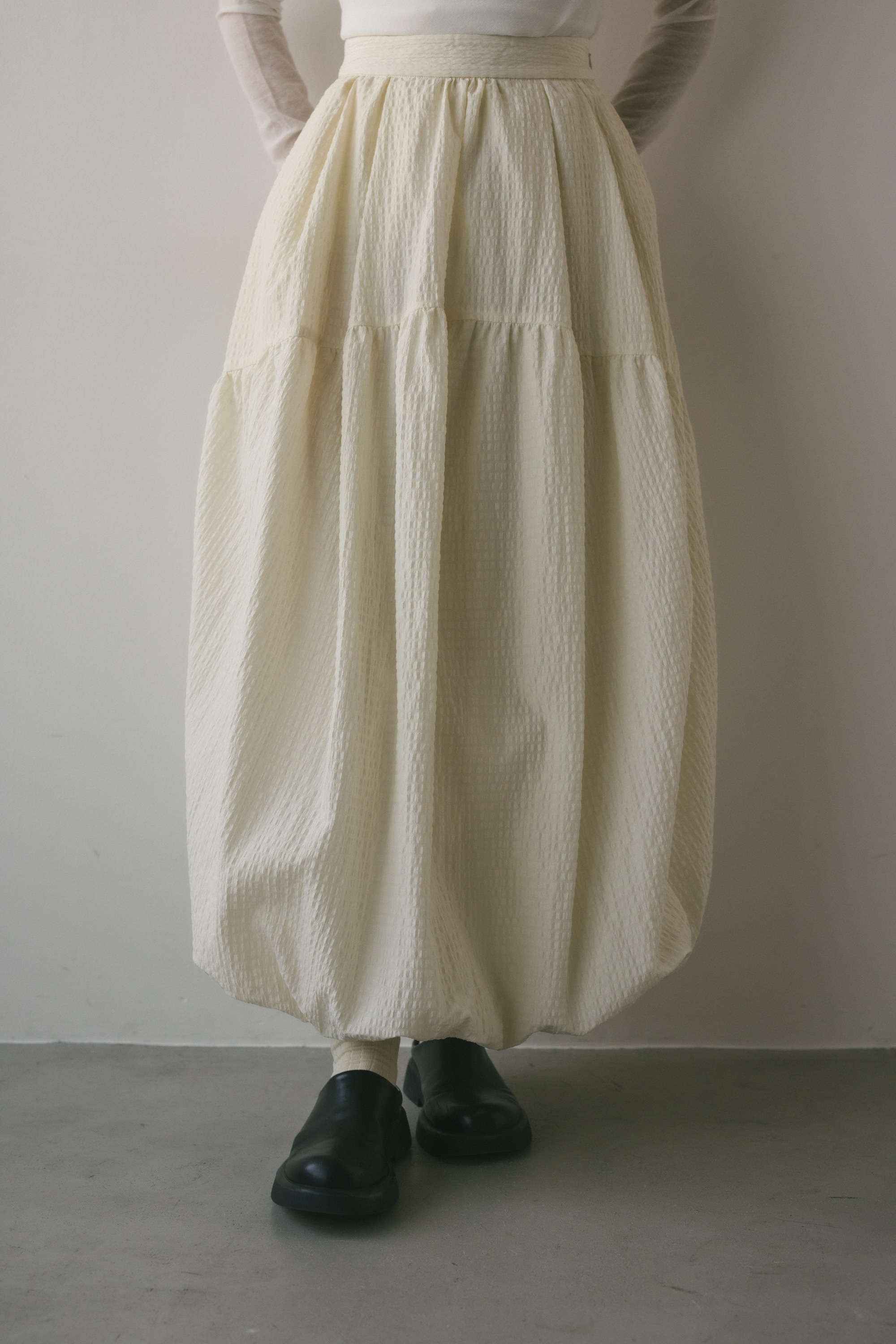 凹凸感のある表情が可愛い生地を使用したバルーンデザインスカート。