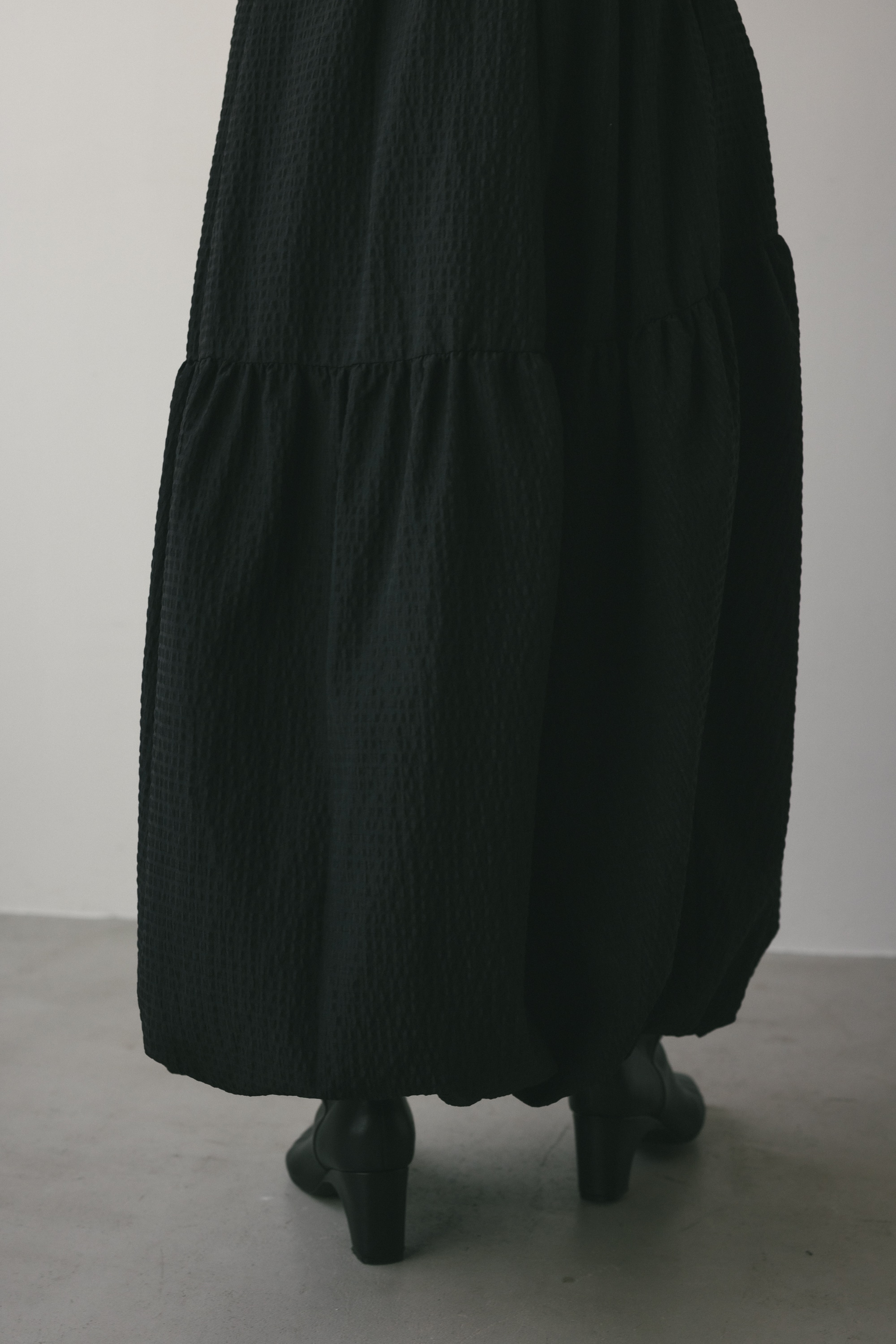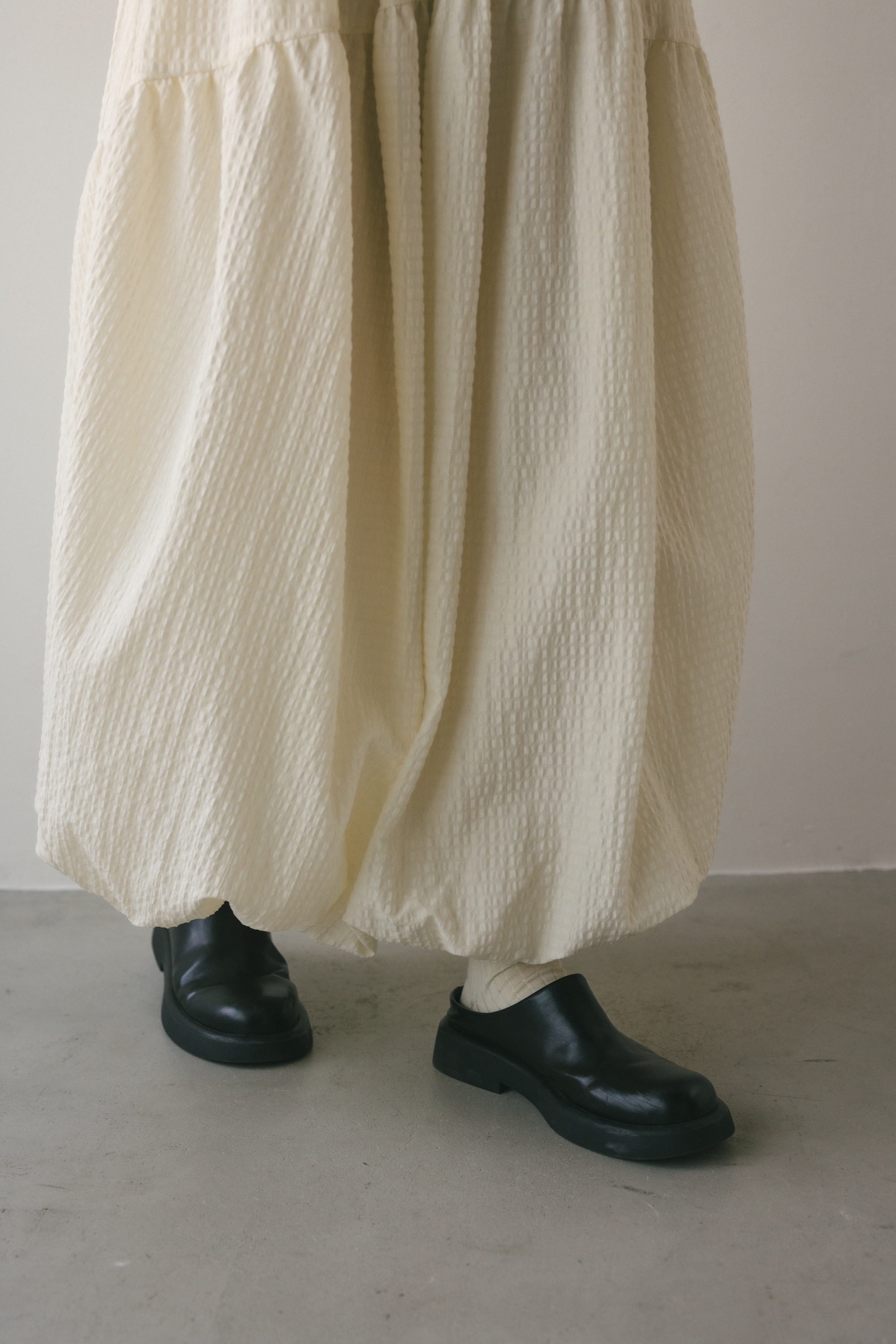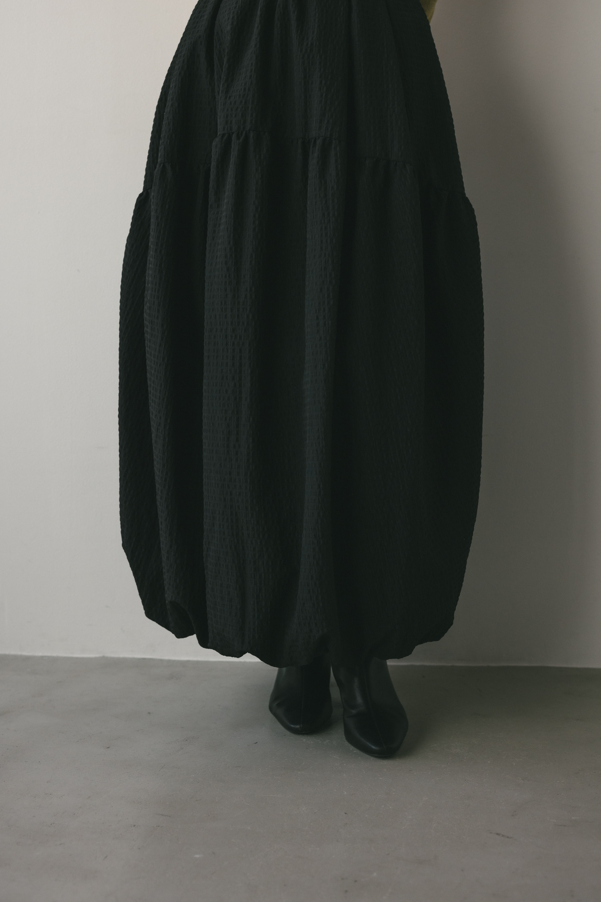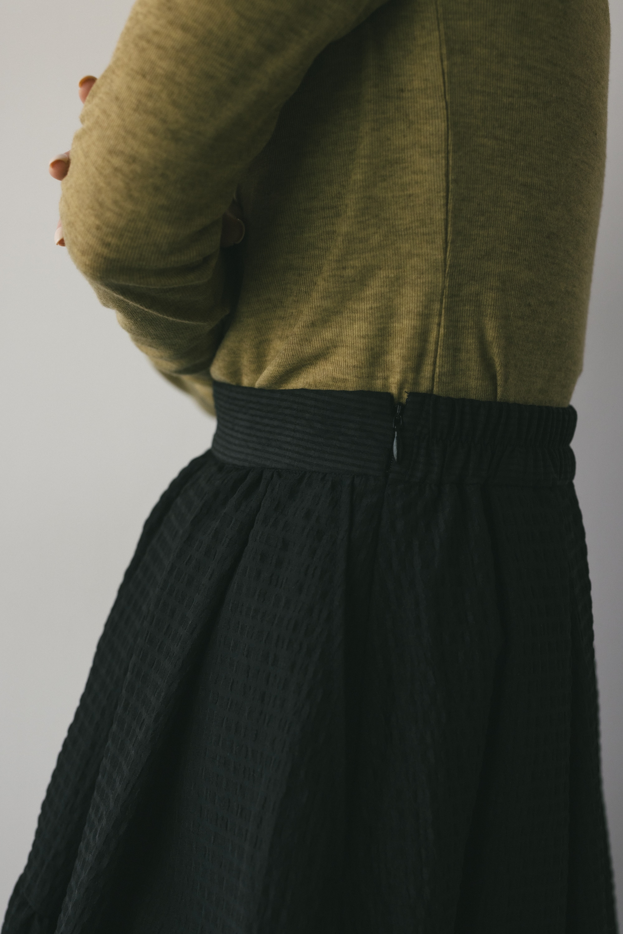 凹凸感のある表情が可愛い生地を使用したバルーンデザインスカート。