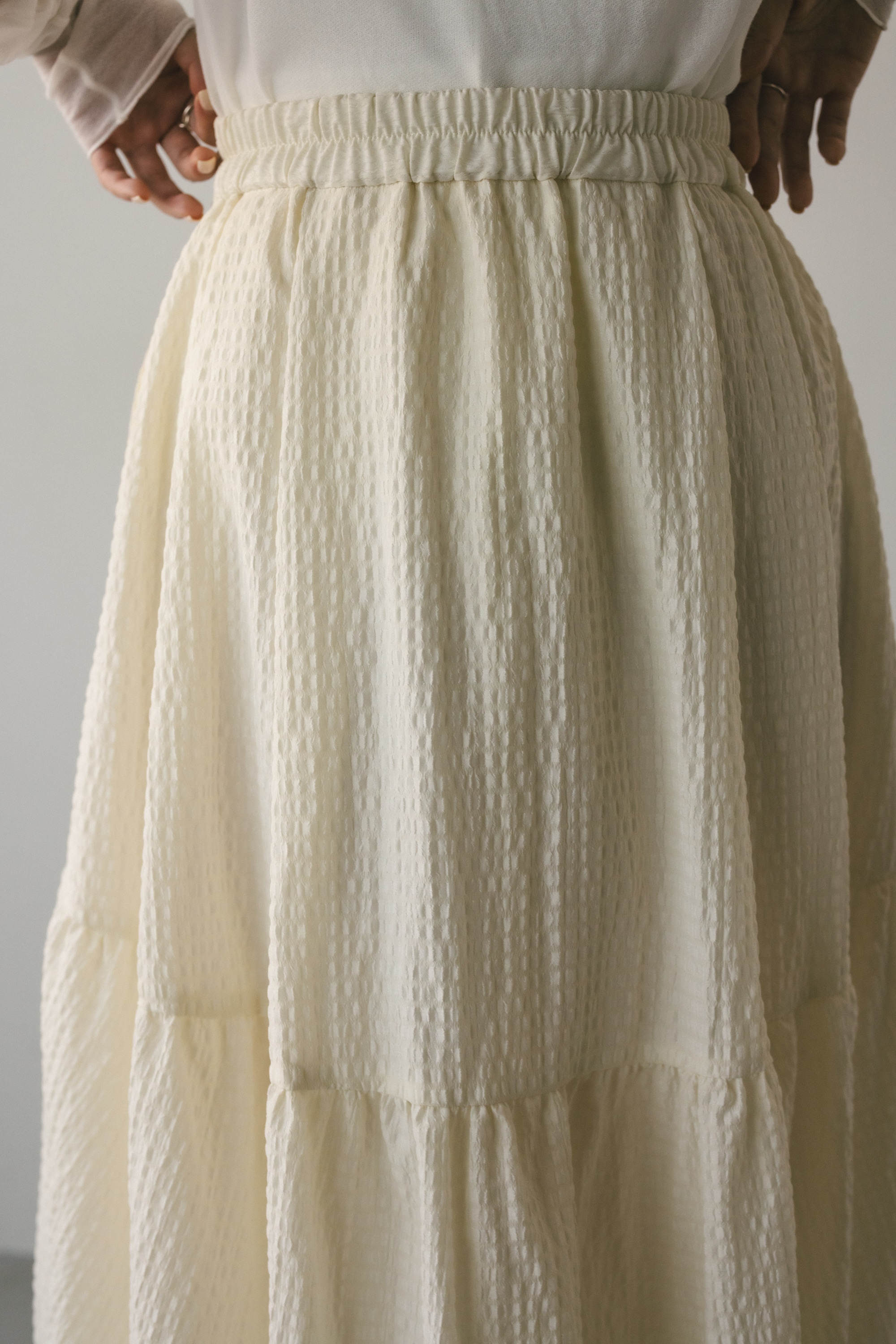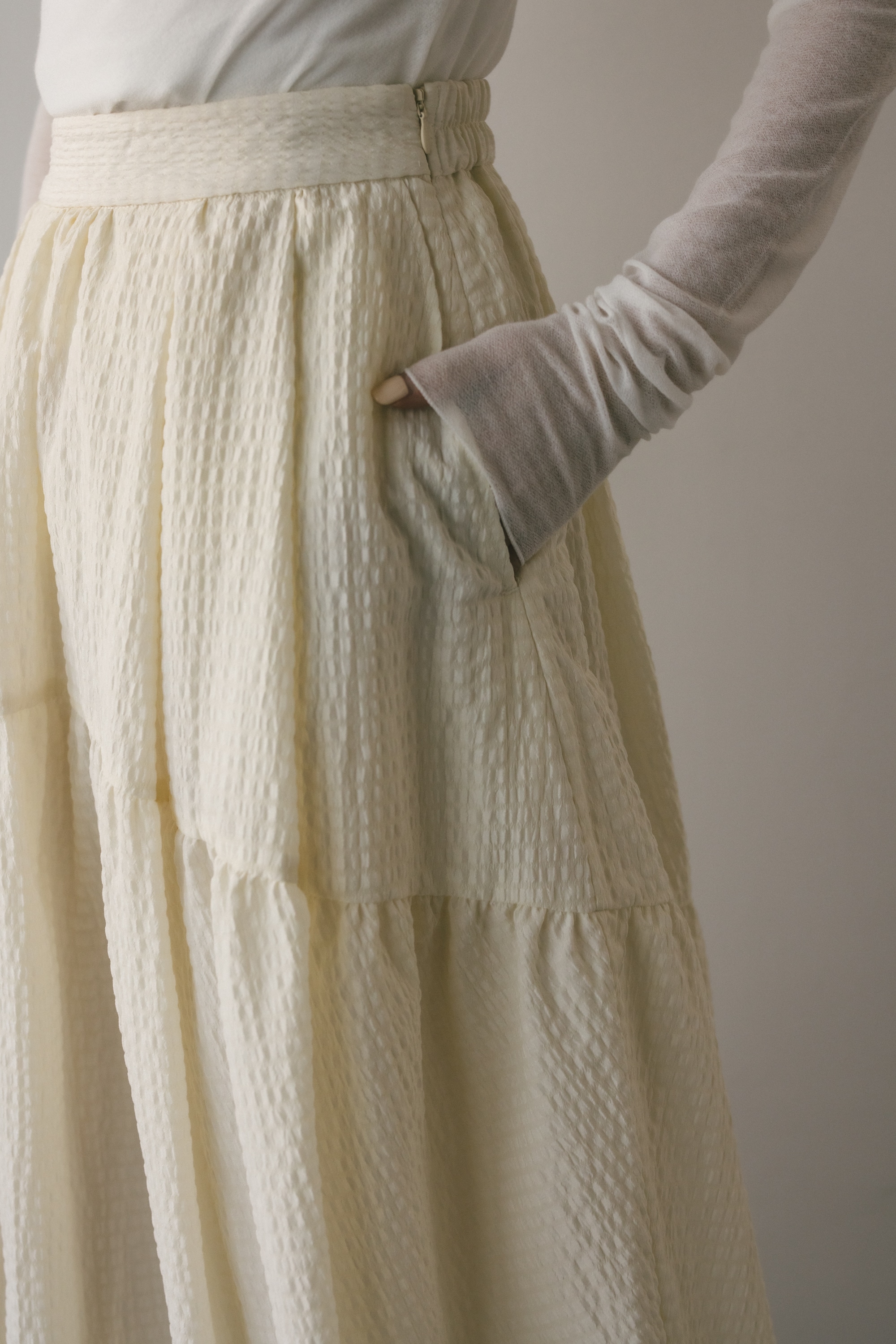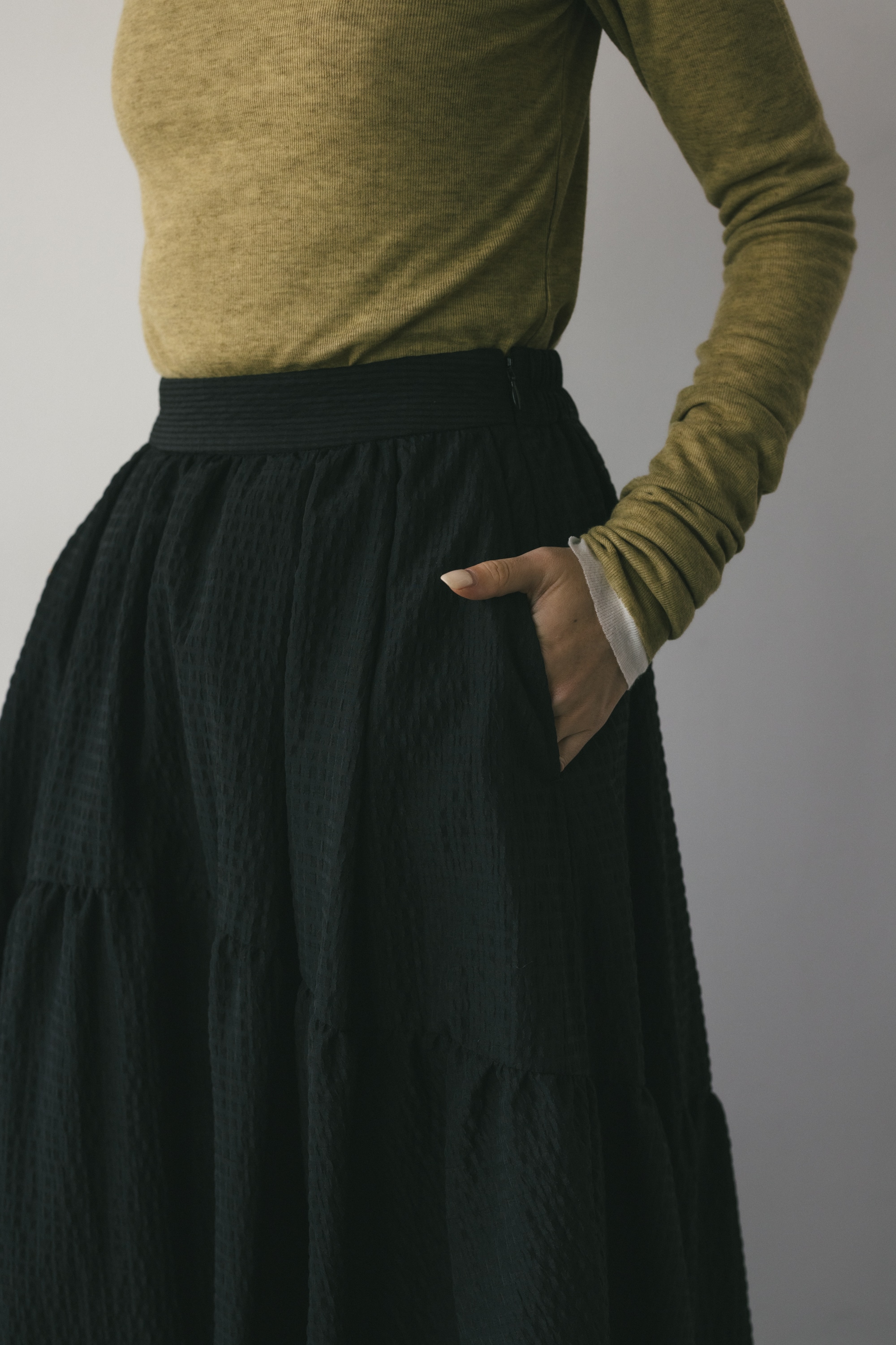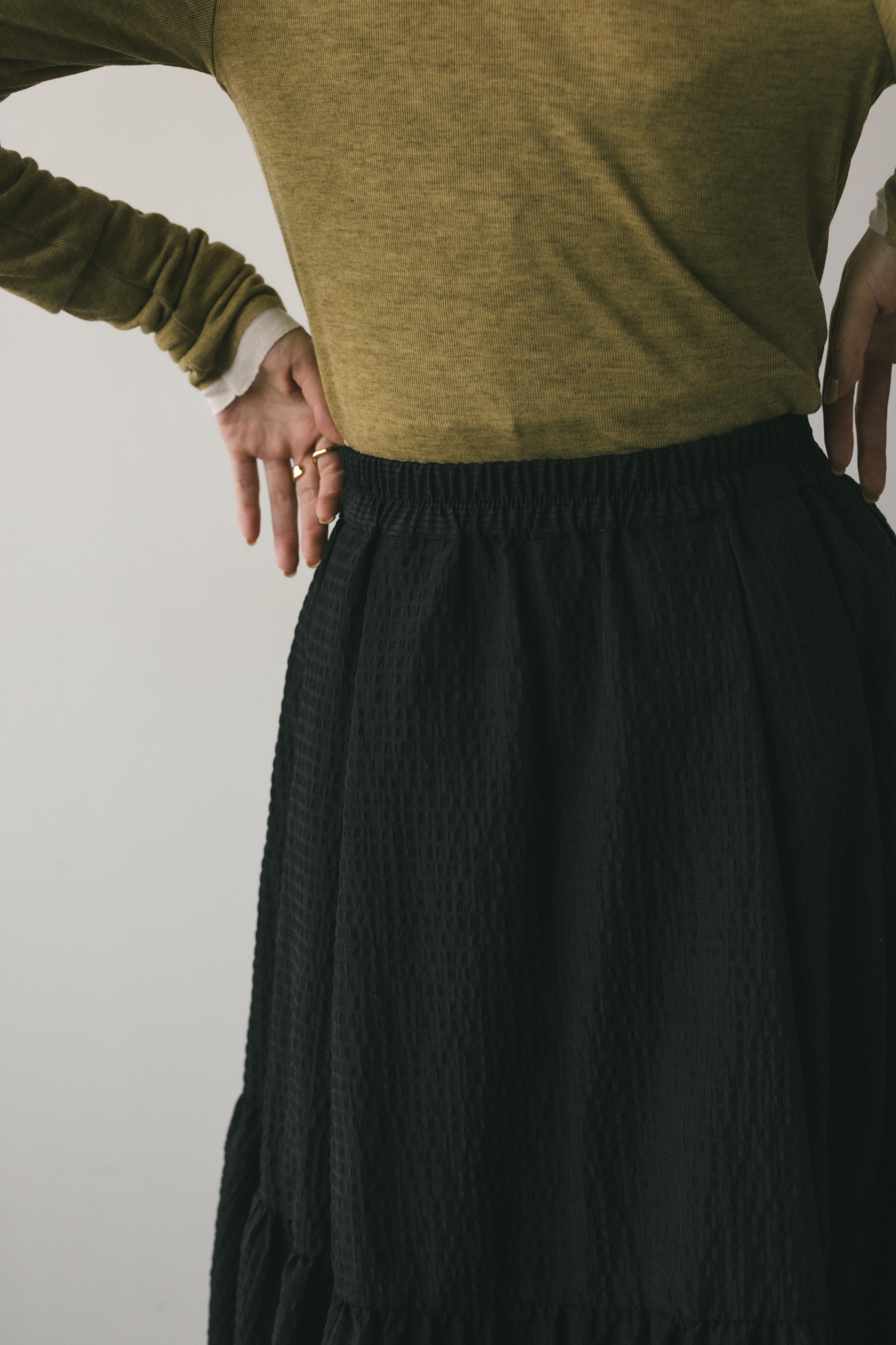 凹凸感のある表情が可愛い生地を使用したバルーンデザインスカート。