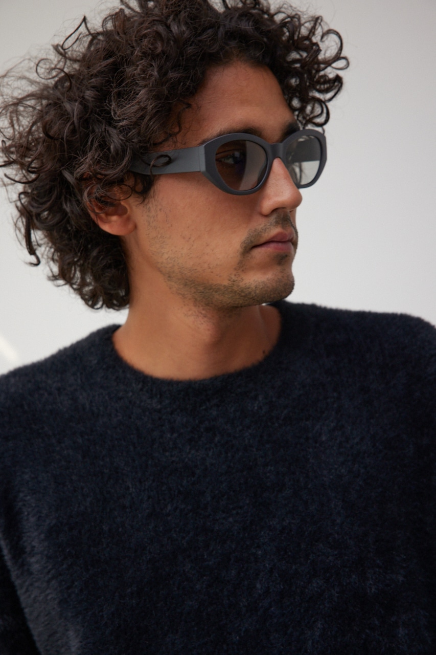 ・エッジの効いているシャープなフォルムとBLKとGRYのレンズが大人っぽい印象に。