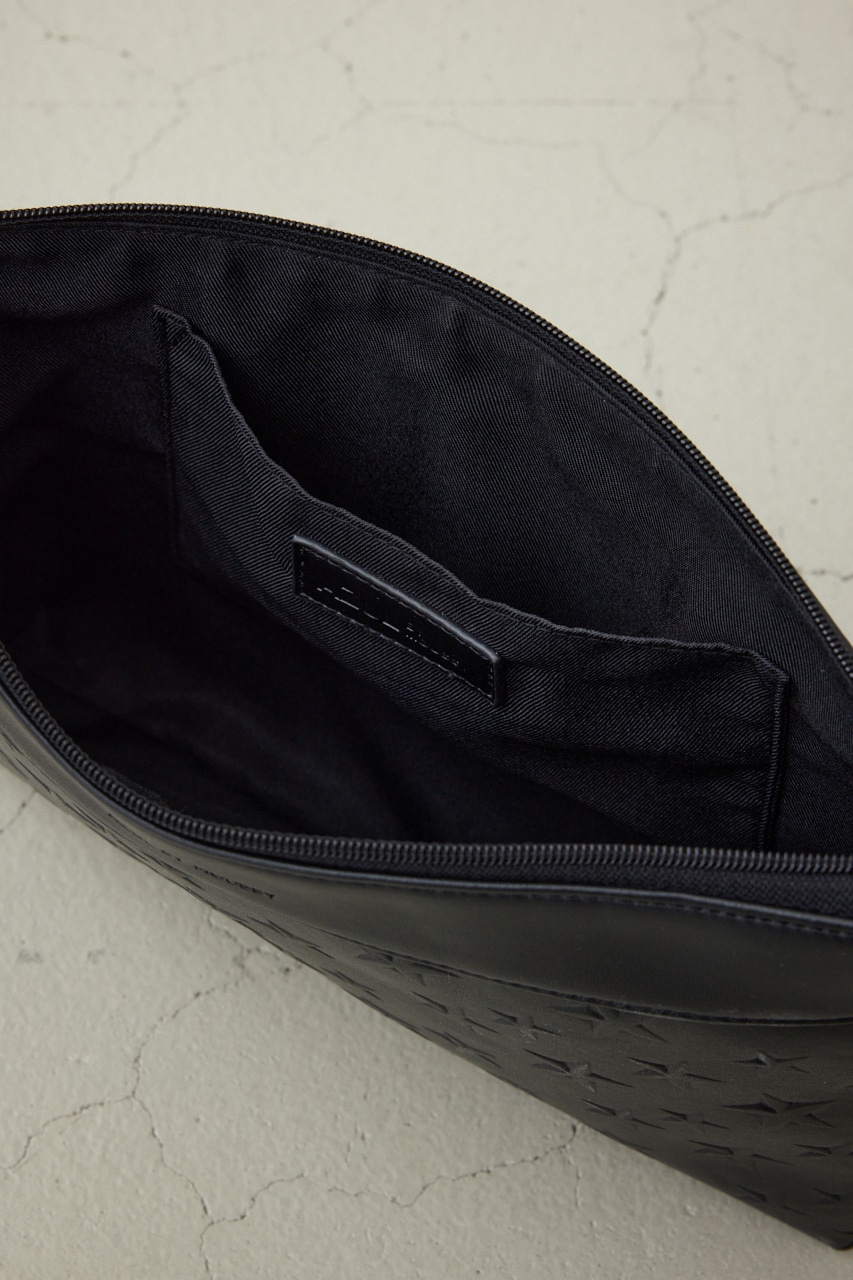 ・スターのエンボス加工を施した合皮クラッチバッグ。