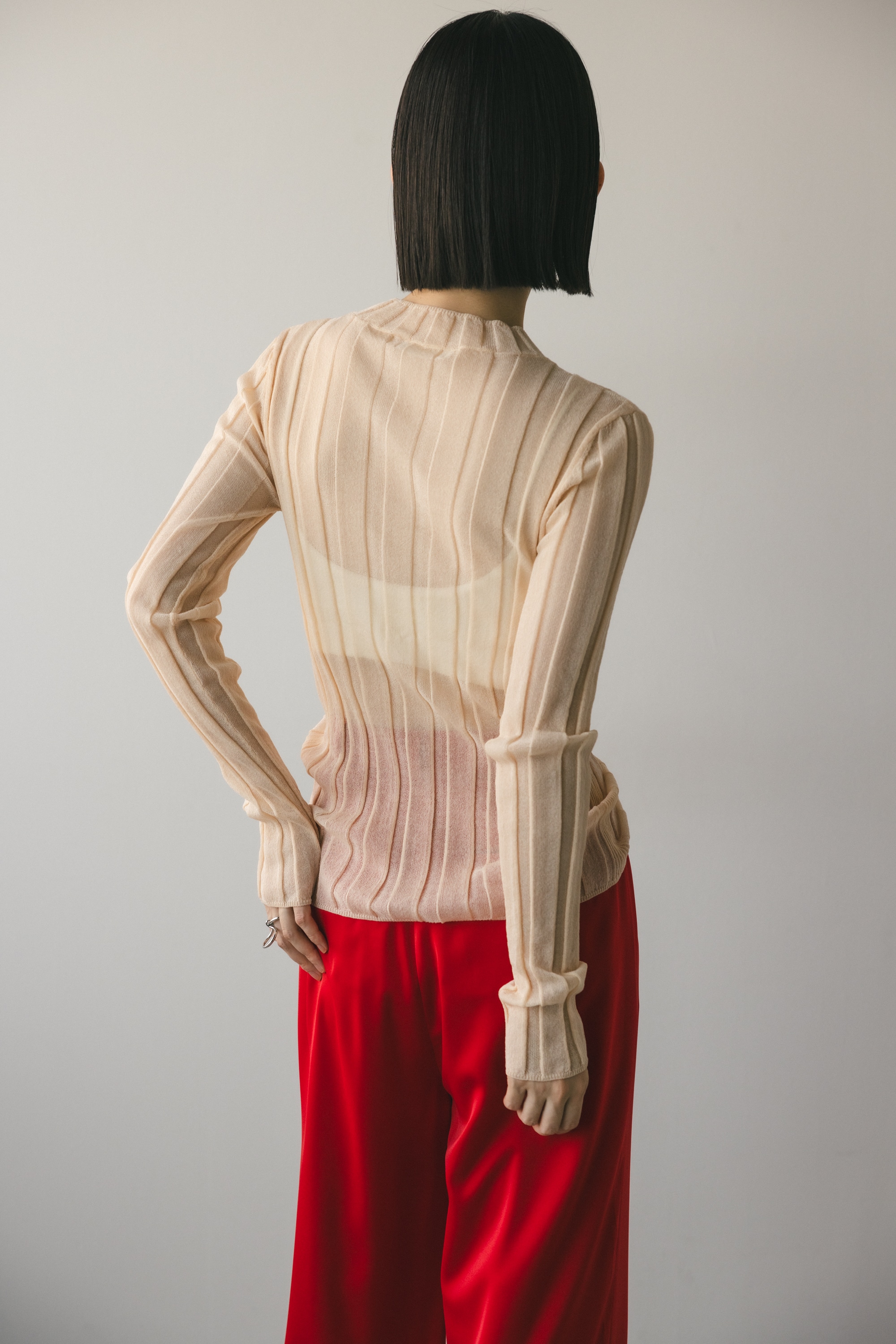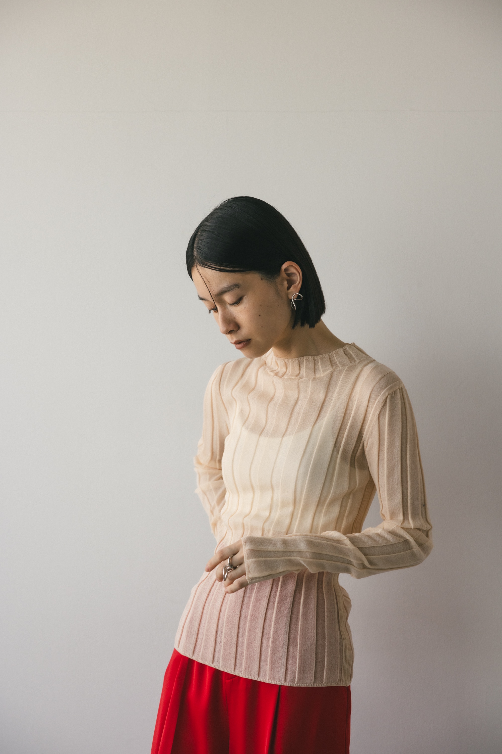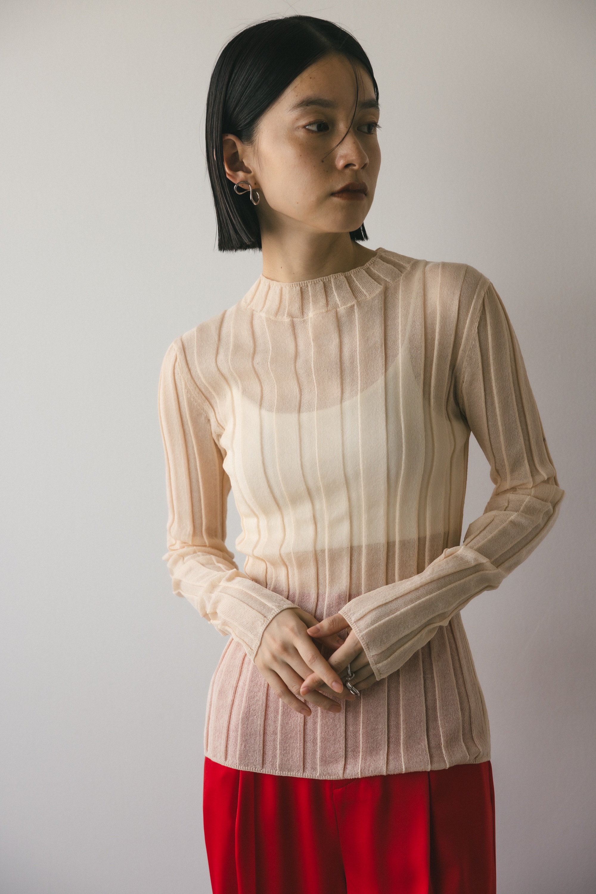 ワイドなリブ編みがポイントの上品なシアーニットトップ。