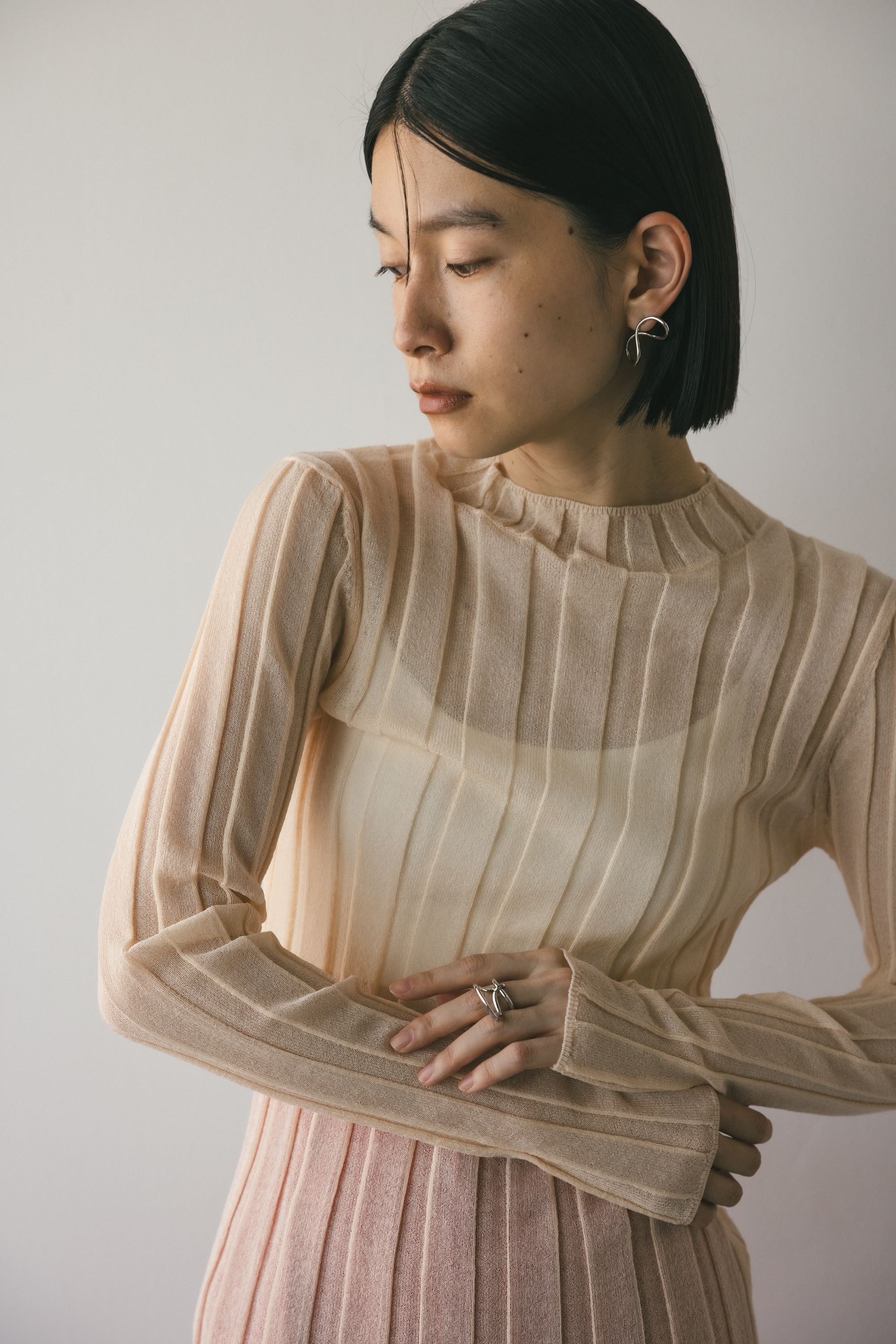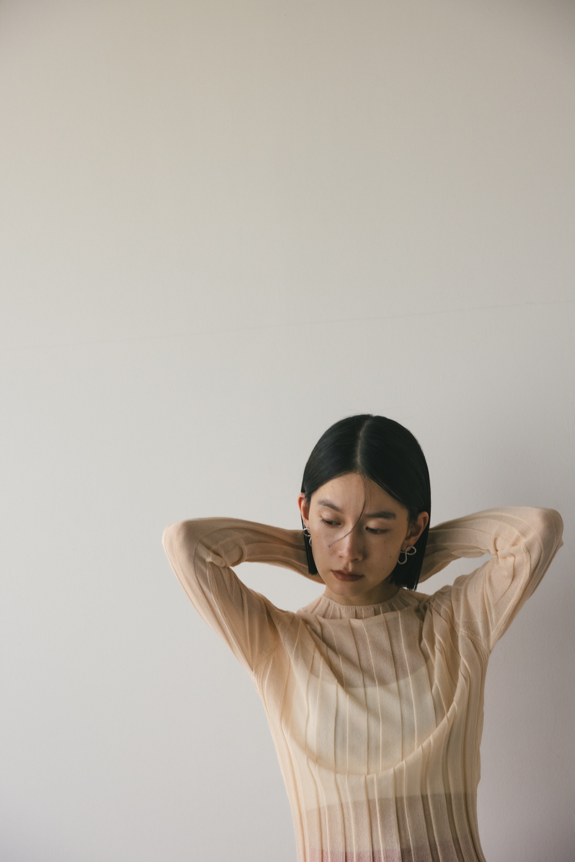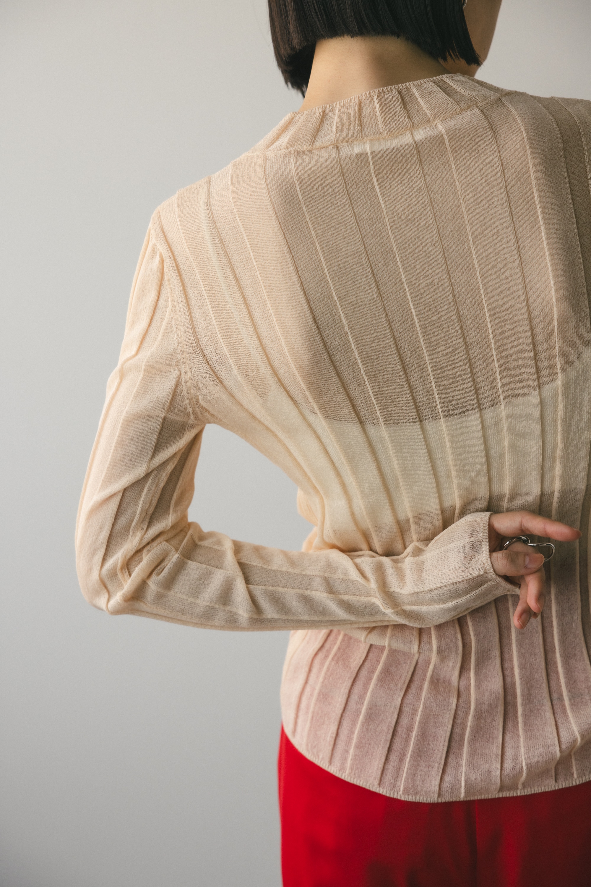 ワイドなリブ編みがポイントの上品なシアーニットトップ。
