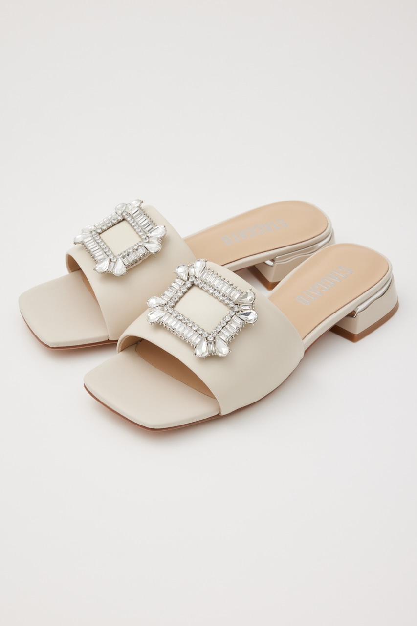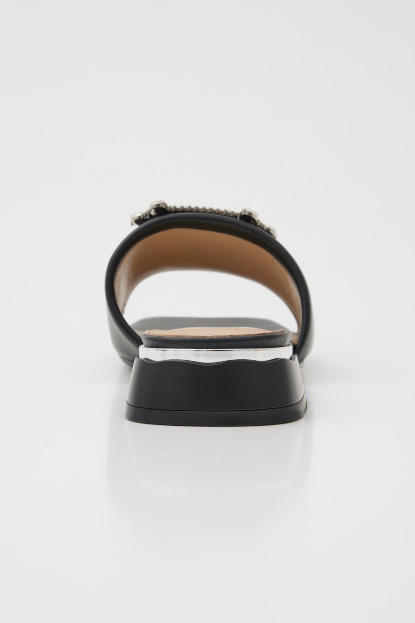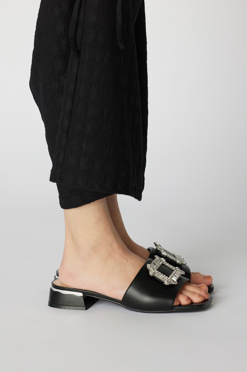 ドラマティックで、どこかレトロルックな雰囲気のローヒールサンダル。ラフになりすぎない上品なバックルが印象的。ワンピースやあえてカジュアルダウンしたパンツスタイルにも相性抜群。スタイルを選ばないさっと履けるミュールデザインも◎バックスタイルにも抜かりないシルバーピースもポイントです。