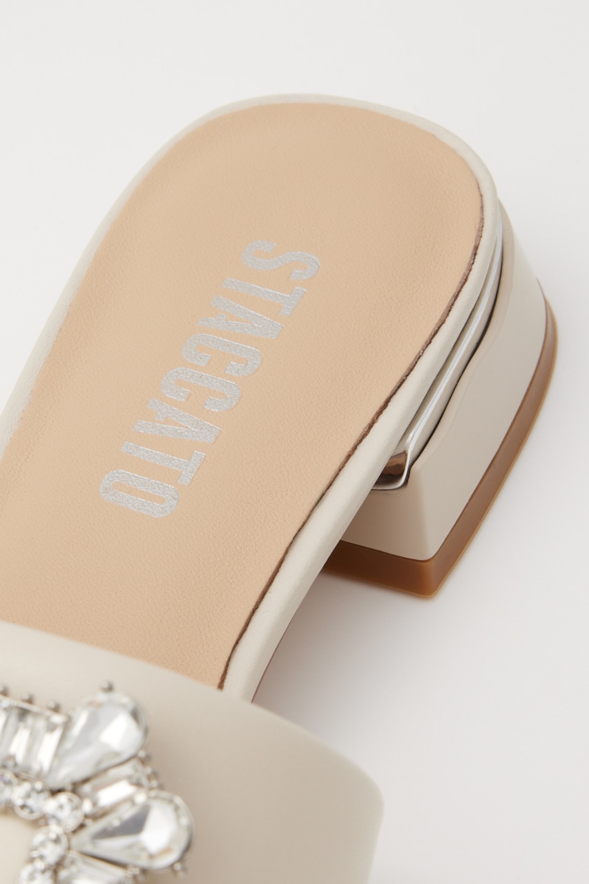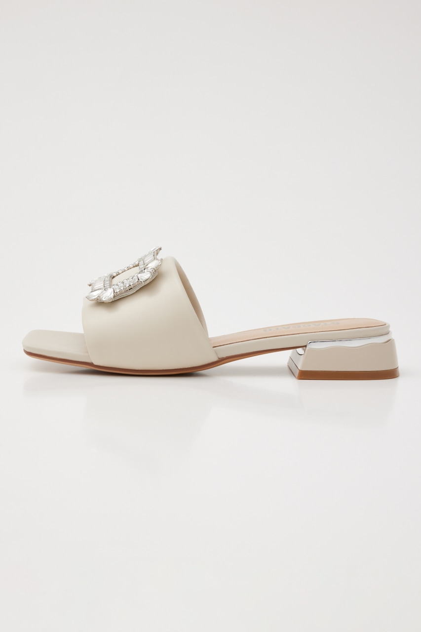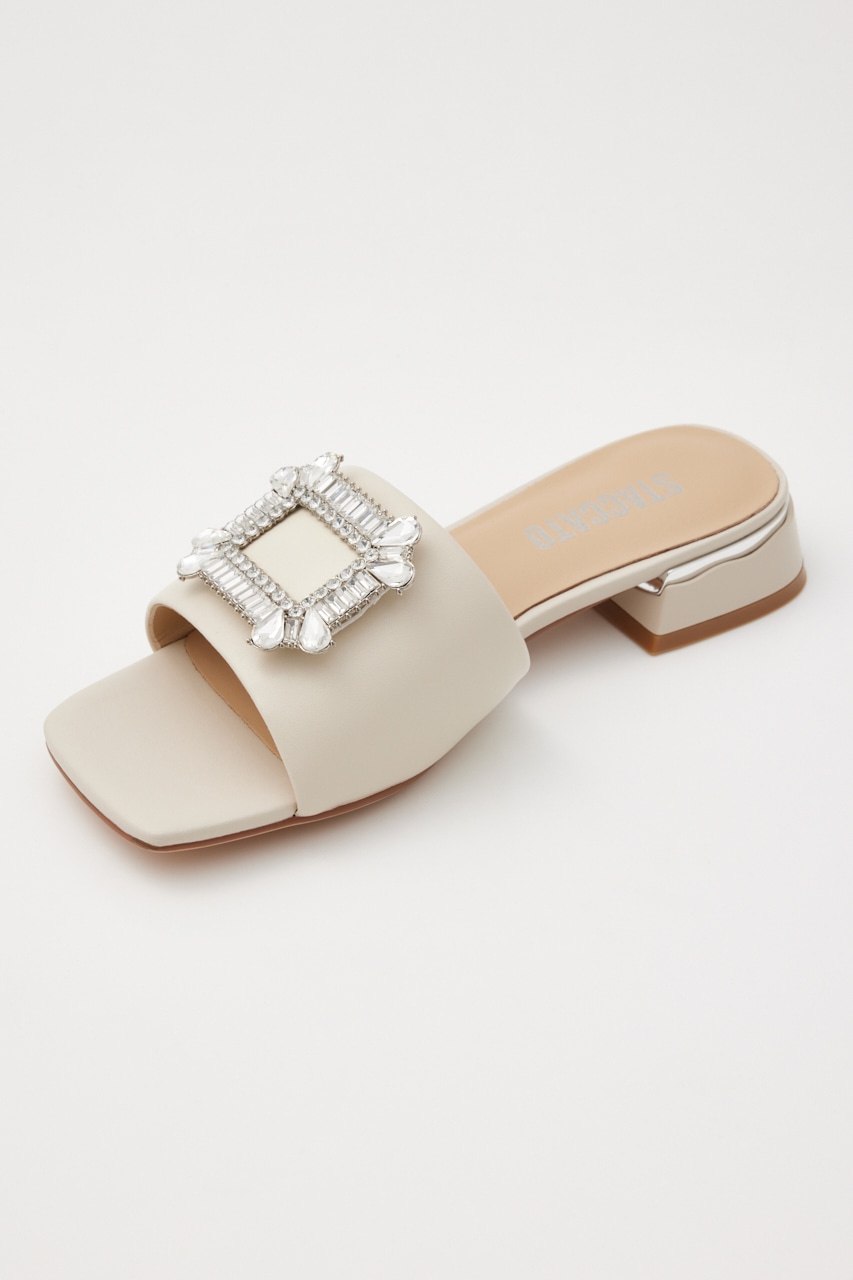 ドラマティックで、どこかレトロルックな雰囲気のローヒールサンダル。ラフになりすぎない上品なバックルが印象的。ワンピースやあえてカジュアルダウンしたパンツスタイルにも相性抜群。スタイルを選ばないさっと履けるミュールデザインも◎バックスタイルにも抜かりないシルバーピースもポイントです。