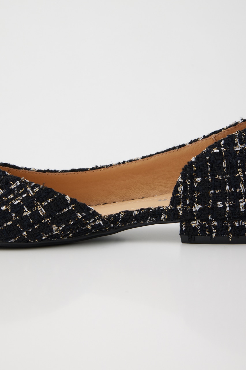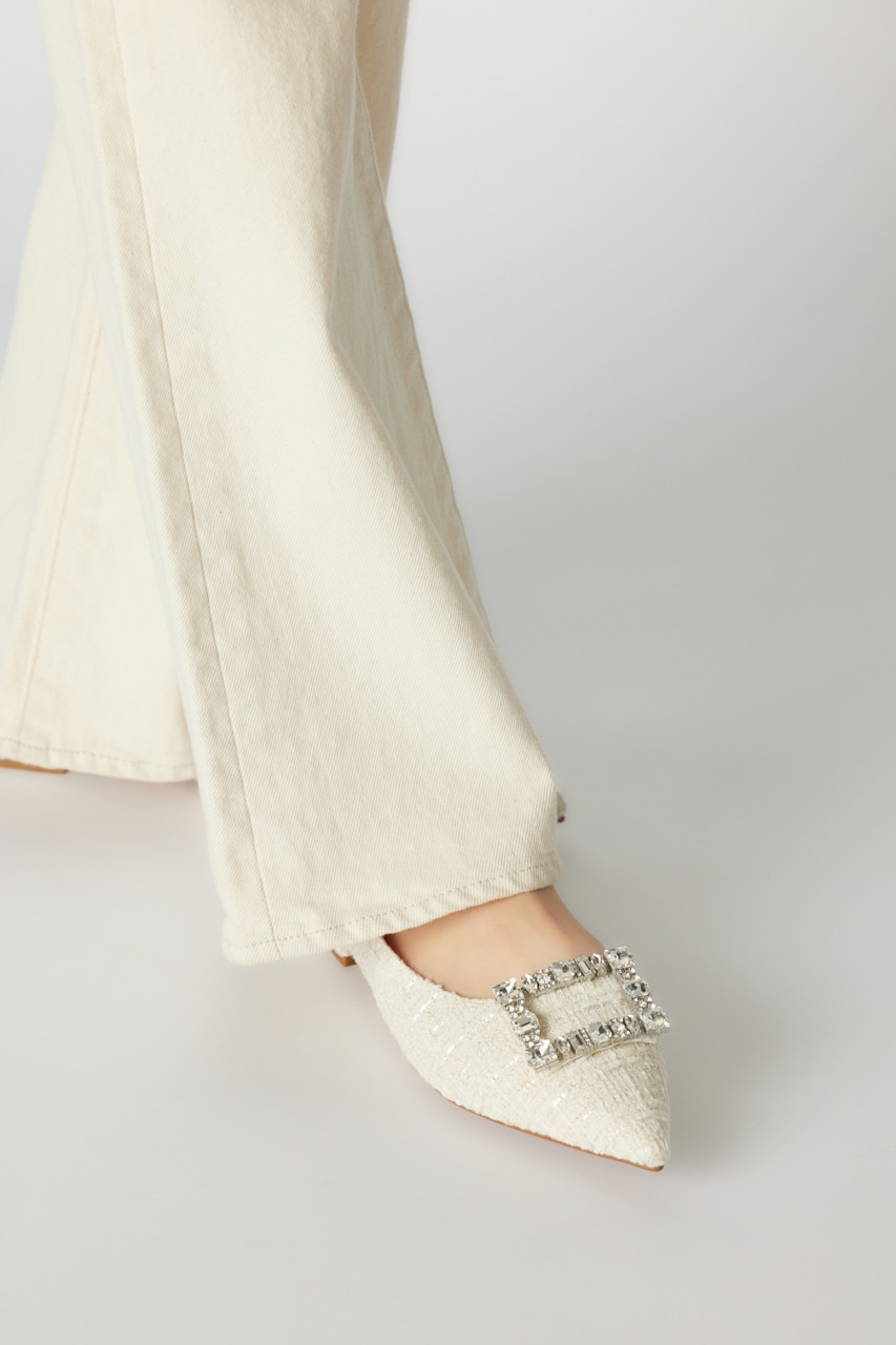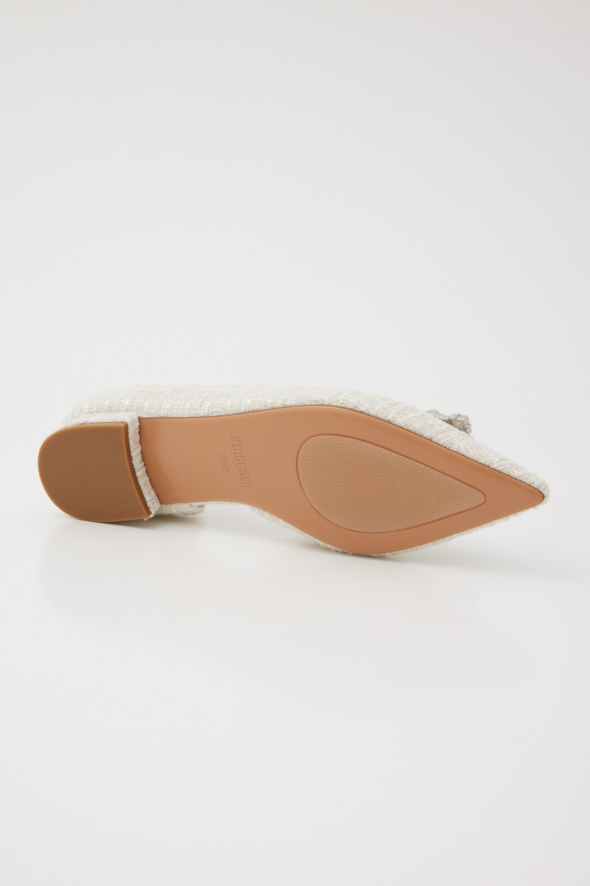 春らしい足元を飾るサイドカットパンプス。贅沢使いな大ぶりのMIXストーンのバックルとさわやかな春の香りが漂うサマーツイードがエレガントかつ華やかにみせてくれます。ローヒールなので気取りすぎず感度高めなスタイルにアップデート。