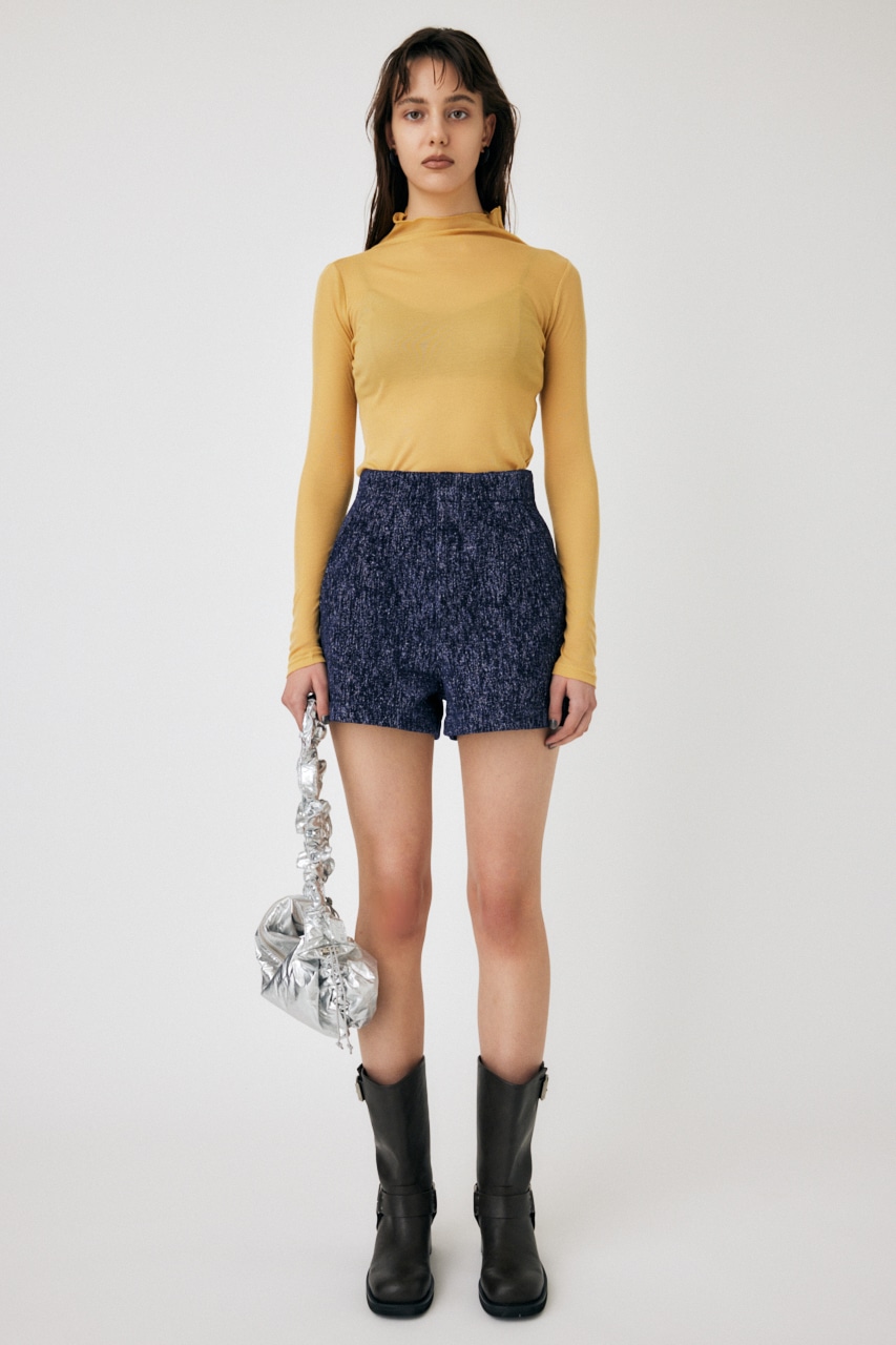 繊細な糸を使用した、透け感のあるソフトタッチなハイネックトップスです。