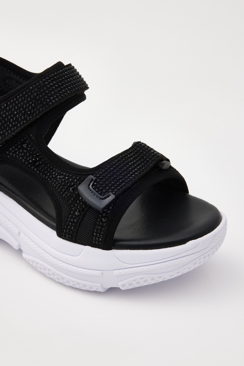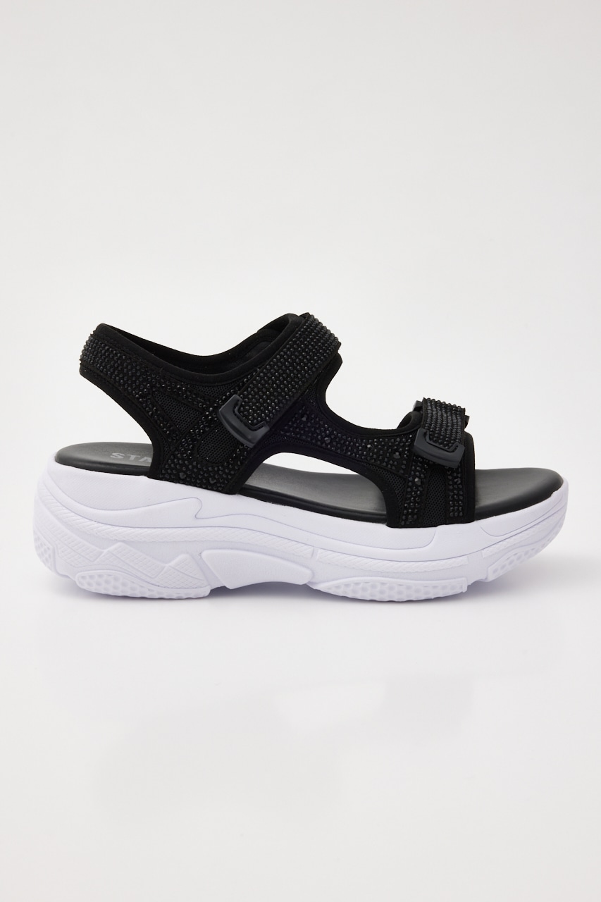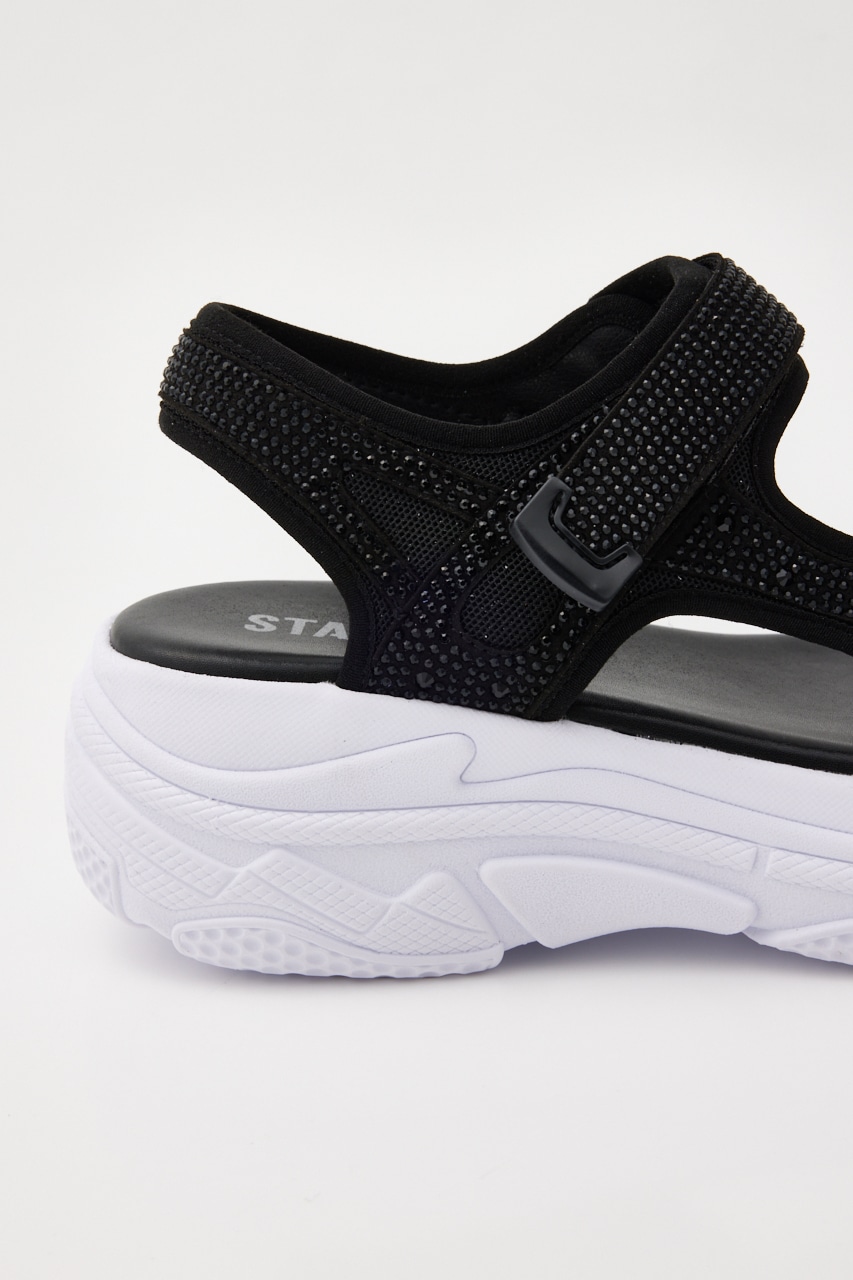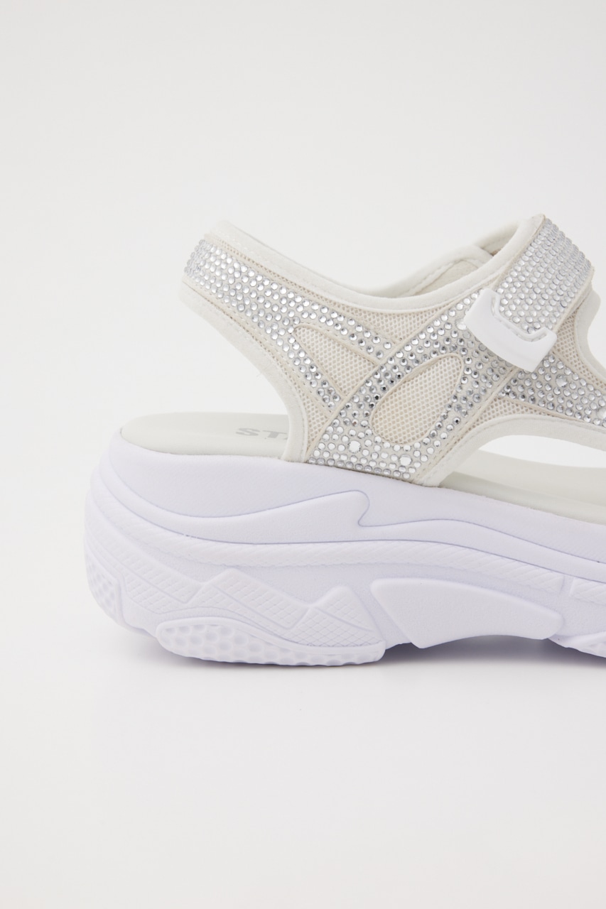 普遍的なのにエレガントな要素を合わせもった、キャッチーでSTACCATOらしいスポーティーサンダル。メッシュ地にシャイニーなストーンをほどこした、タフな雰囲気の中に華やかさが溢れるデザイン。履き心地に定評のある定番デザインのEVAソールでとても軽量かつリズミカルな履き心地です。