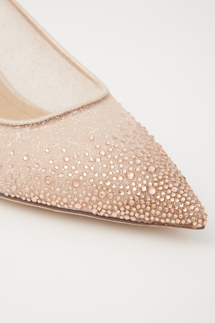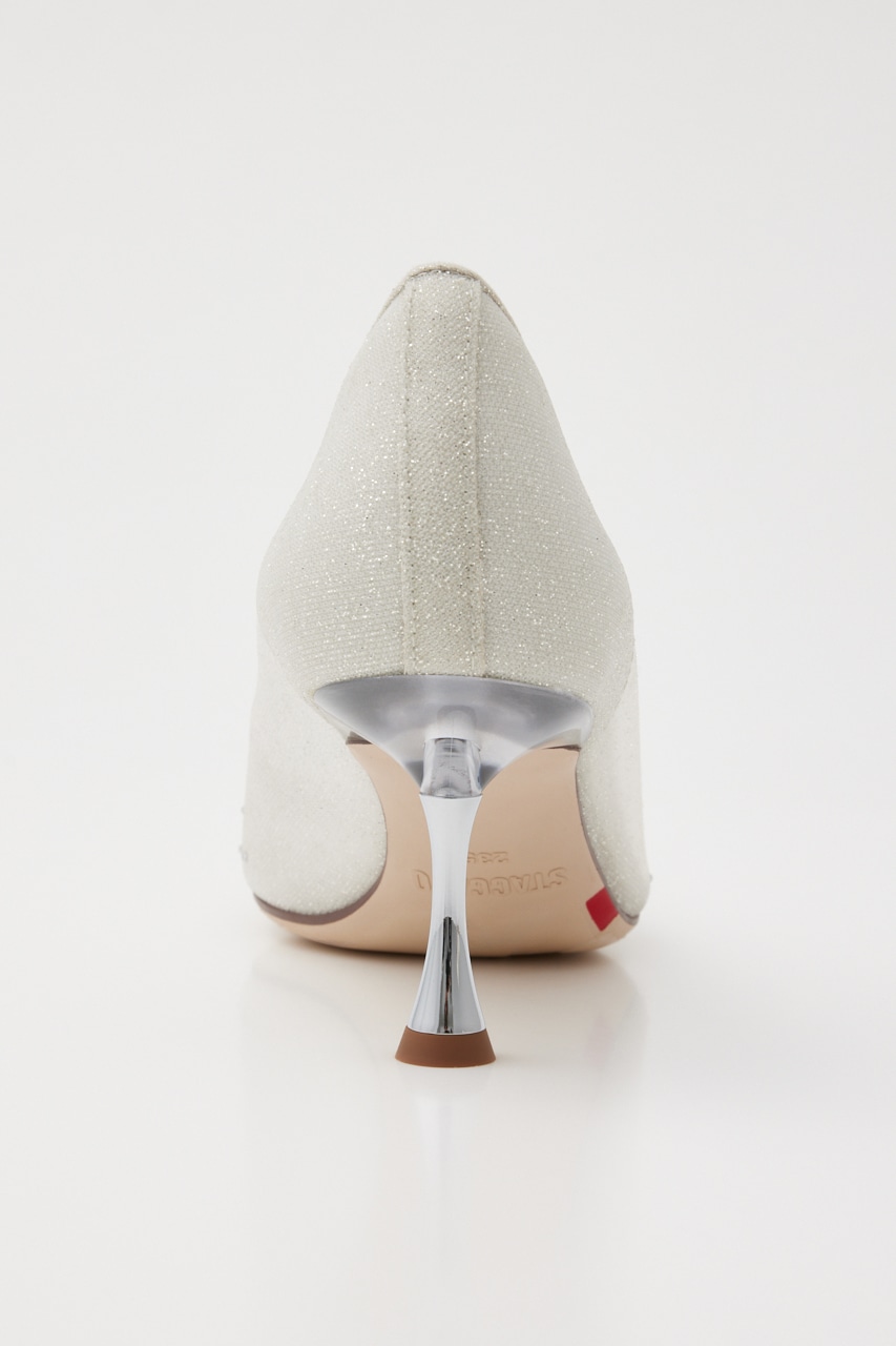【TBS「Eye Love You」7話 山下美月様着用】 ロマンチックな雰囲気のSTACCATOの象徴的なメッシュとストーンを装飾した、程よくヌーディーで上品さが際立つシルバーヒールパンプス。華やかかつみずみずしいカラーと着映えしてくれるシルエットが際立つデザイン。特別な日にも相応しい、とっておきの1足です。