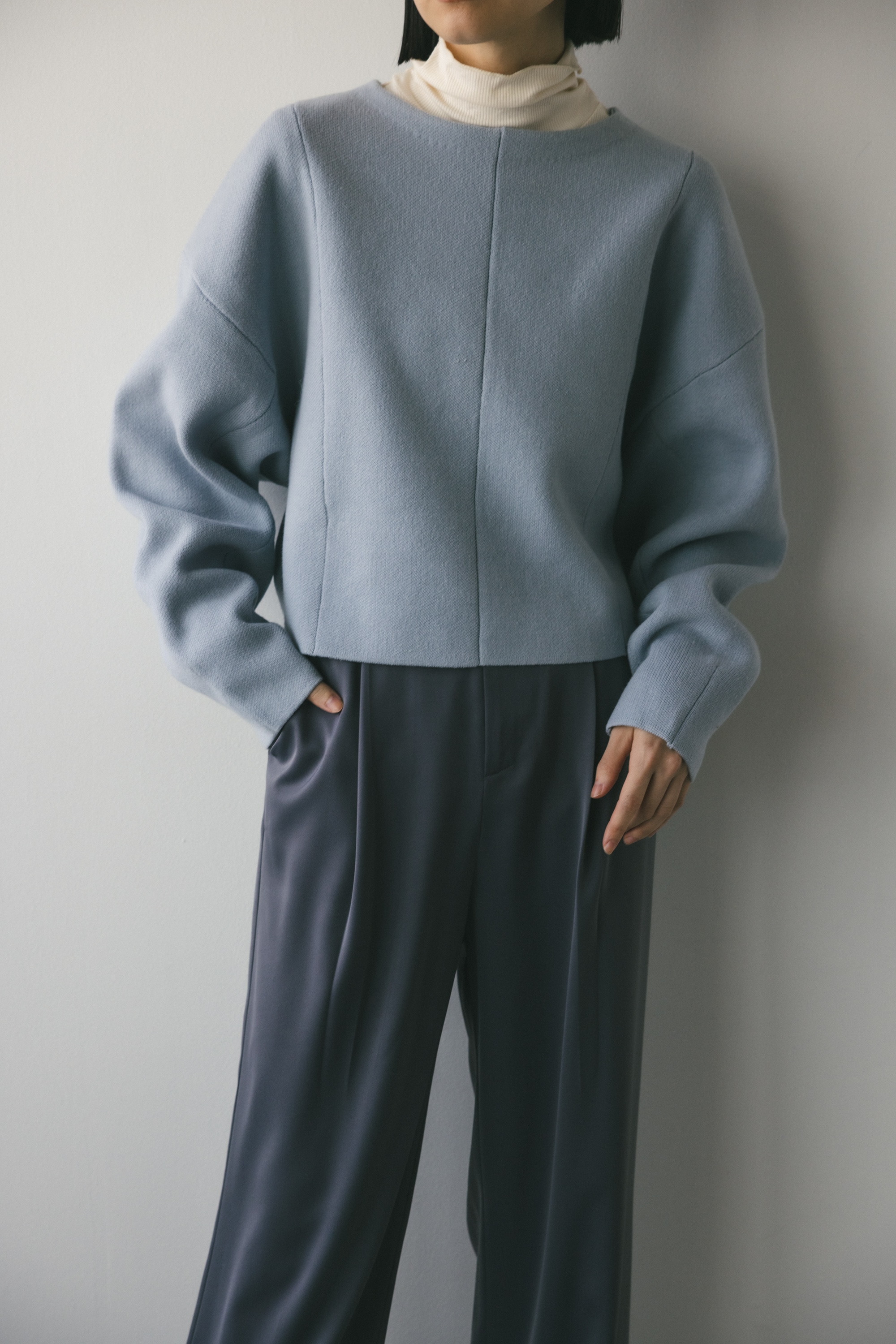 しっかりとした厚みのある糸でシンプルな編地なので着回しやすいトップスです。