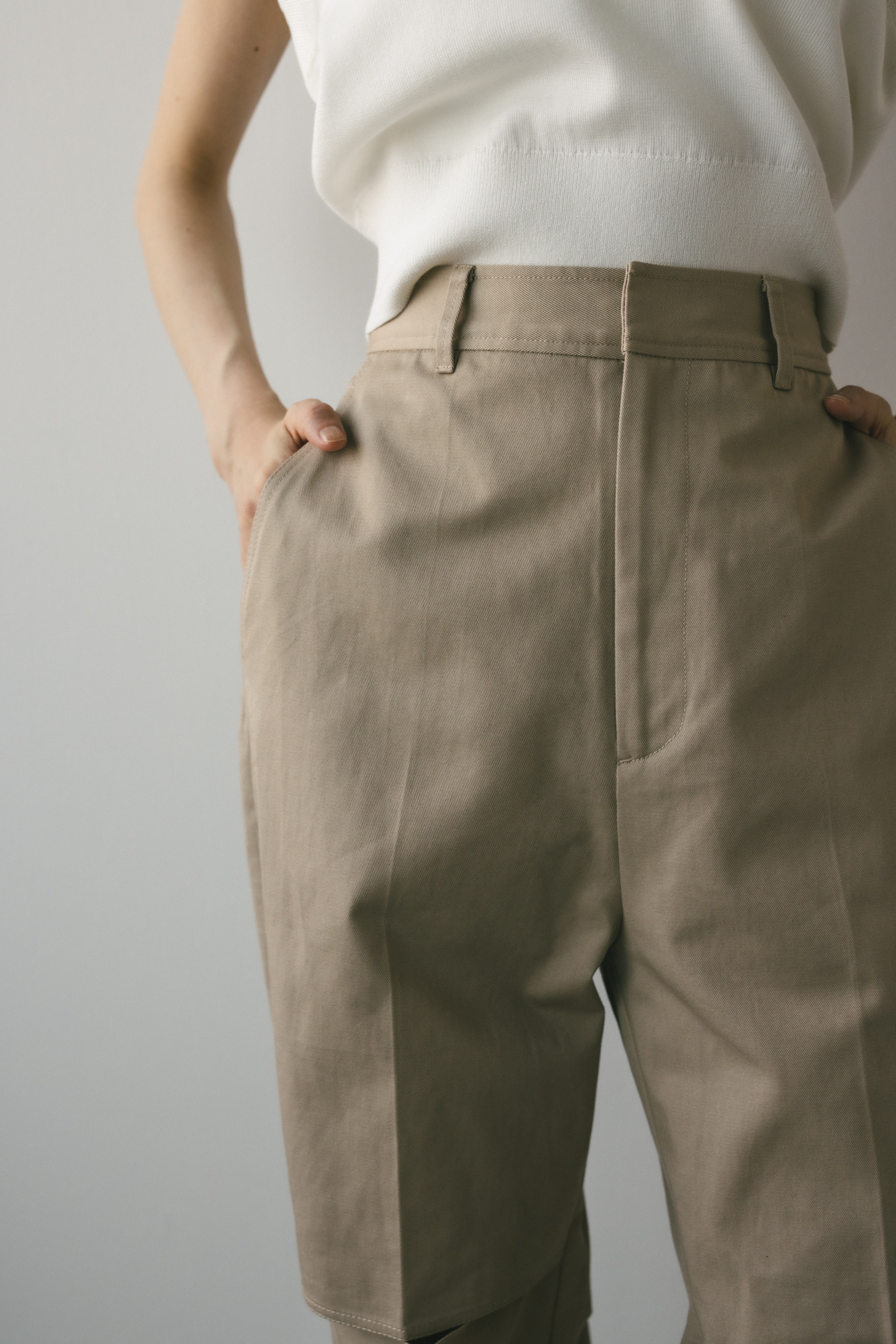 厚めのコットン生地を使用したカジュアルライクなパンツ。