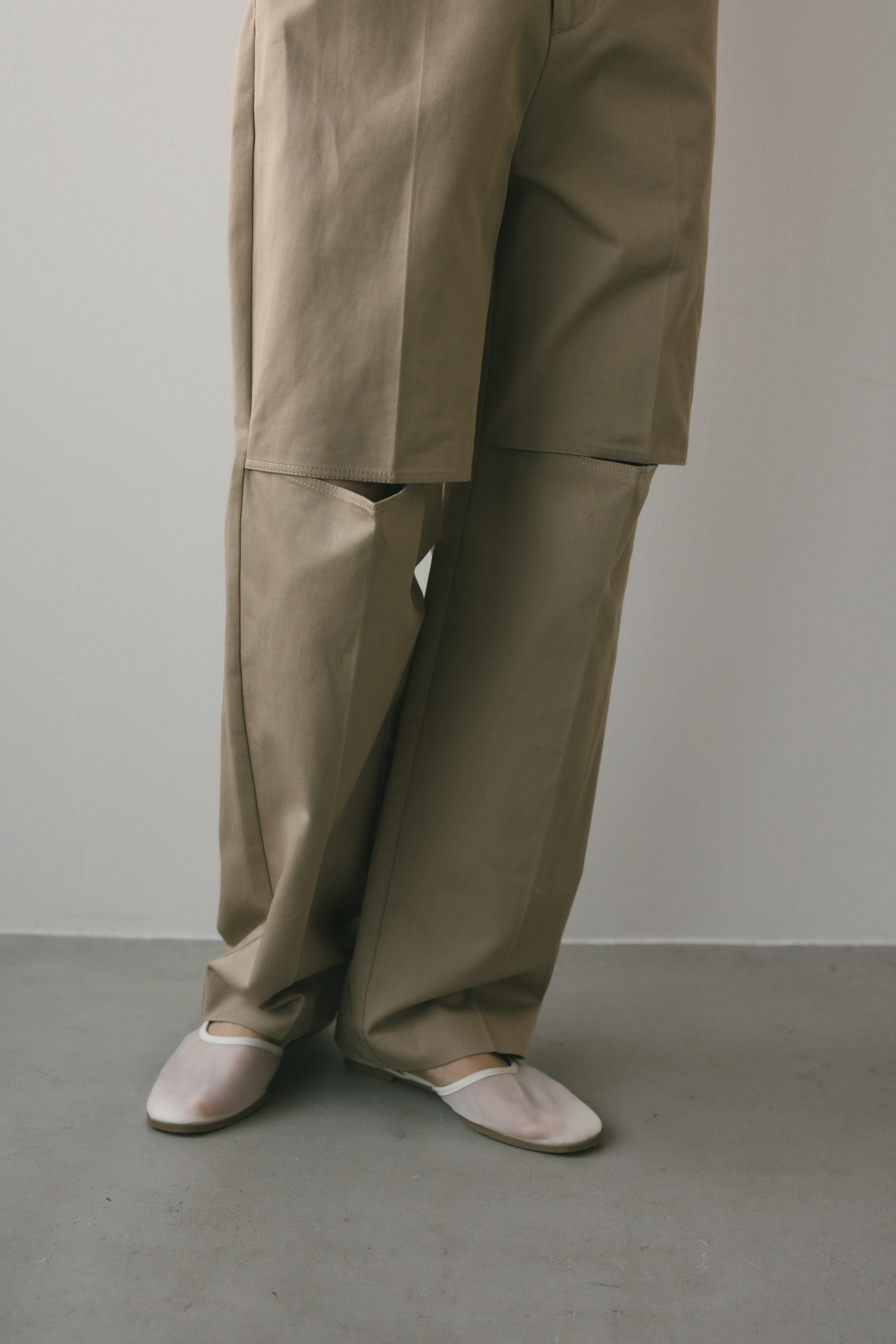 膝部分の大きなスリットがデザインポイントです。