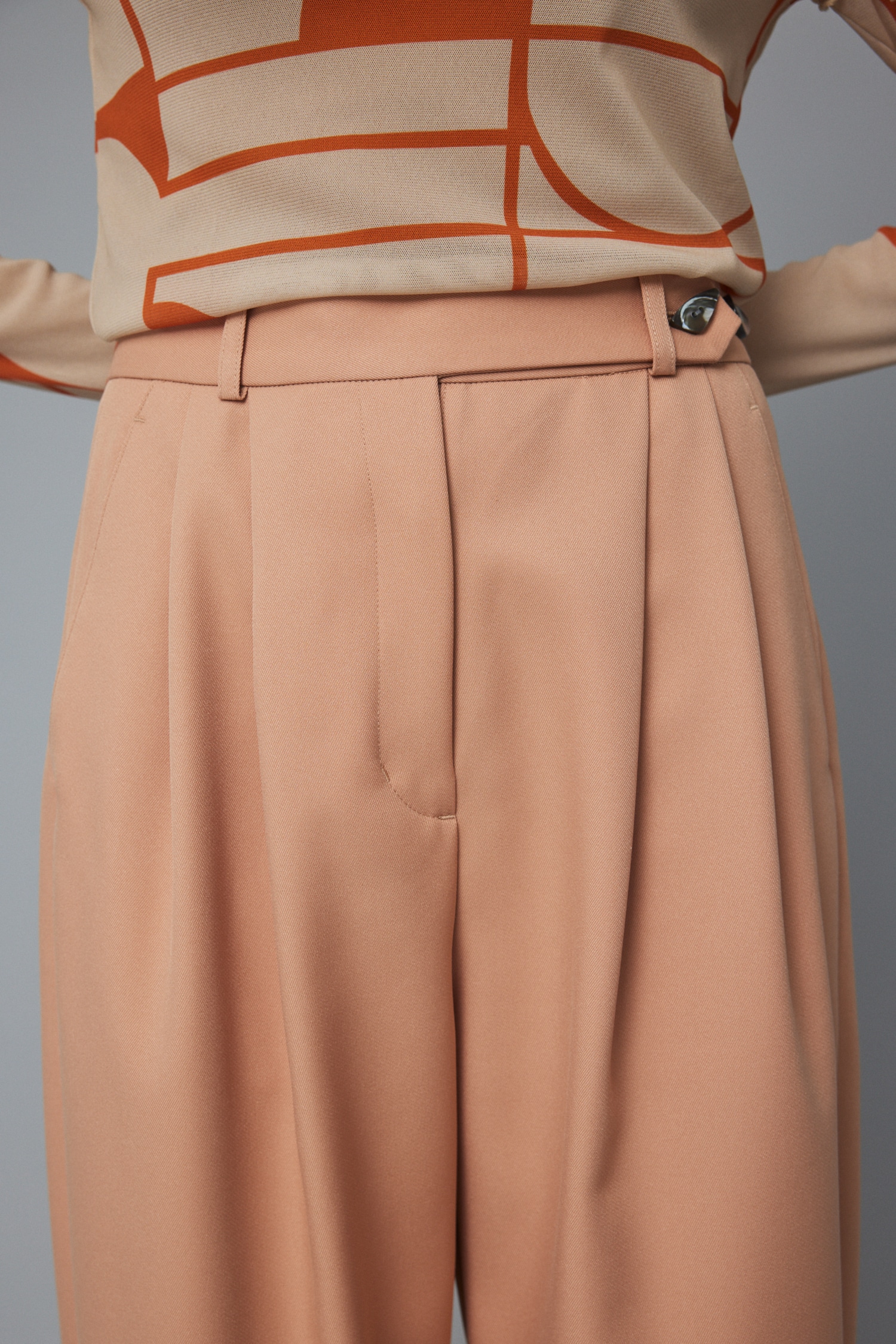ウエストゴムでイージーに履ける仕様で、ボタンの位置でサイズ調整も可能。