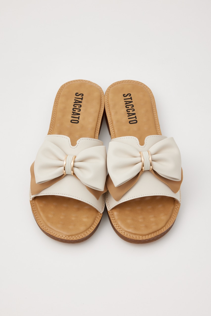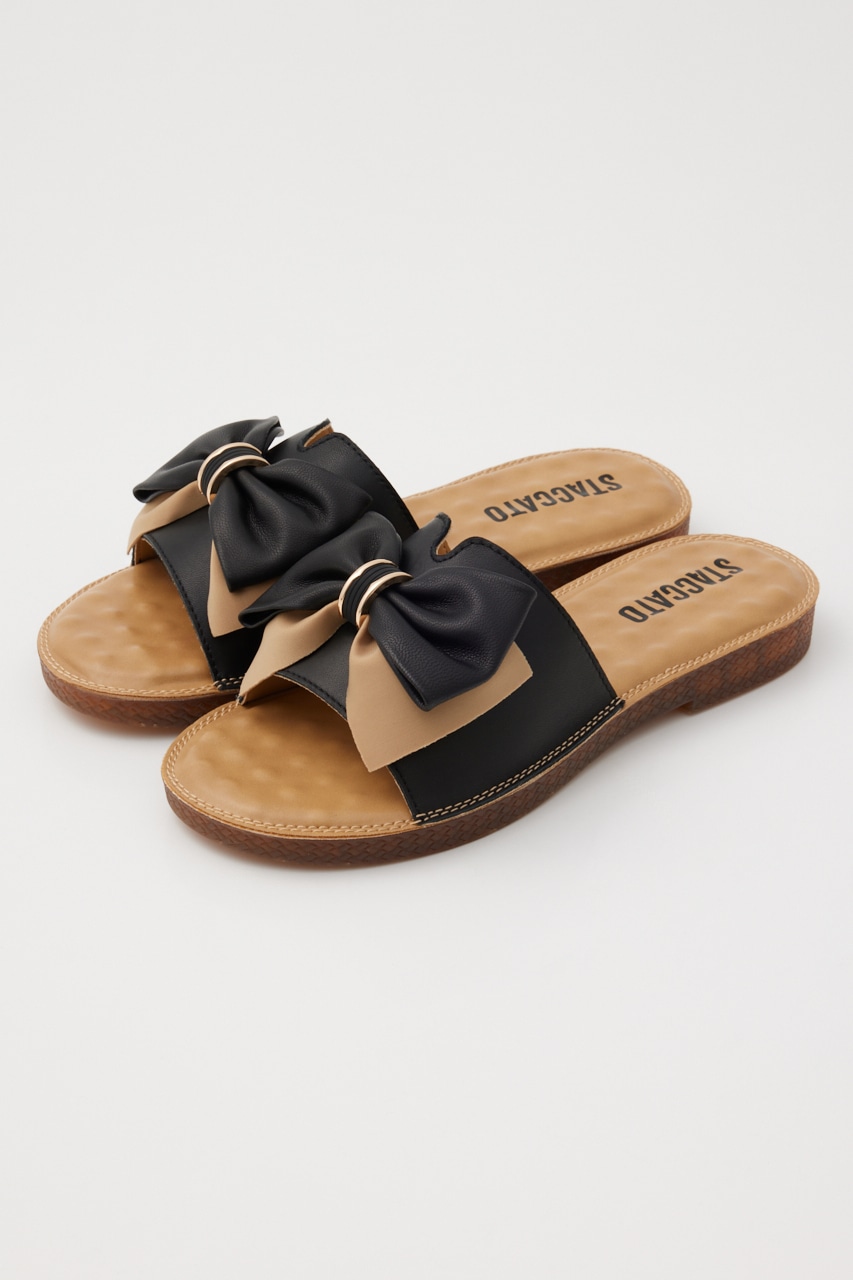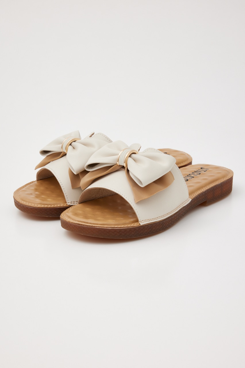 ”かわいい”を取り入れる、レディライクなスリッパサンダル。2トーンのWリボンデザインにスリッパ感覚で気軽に履けながらも意外とどんなコーディネートにも取り入れやすいデザインが、カジュアルになりすぎない上品さを与えてくれる一足。軽量&柔軟性もよく足に吸い付くようなゼリーのようなもちもちの履き心地です。