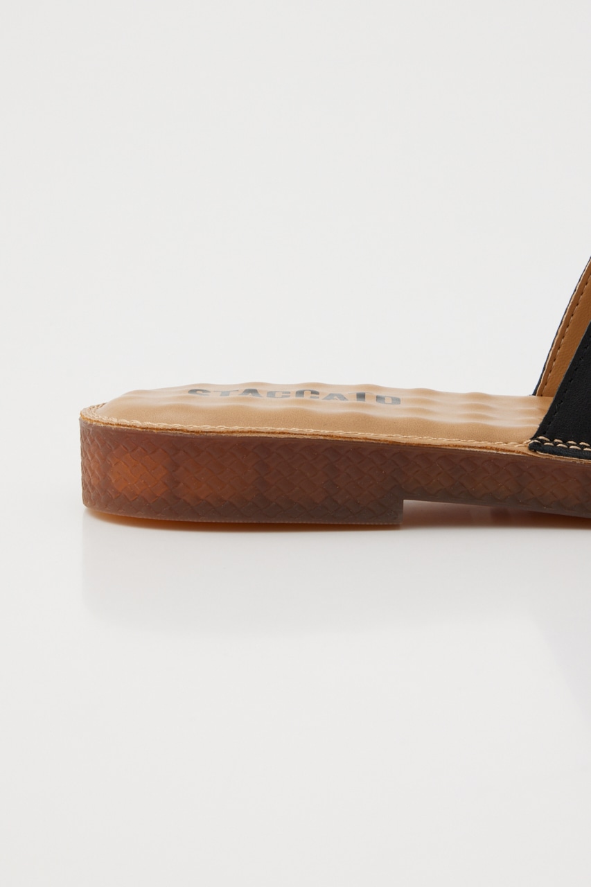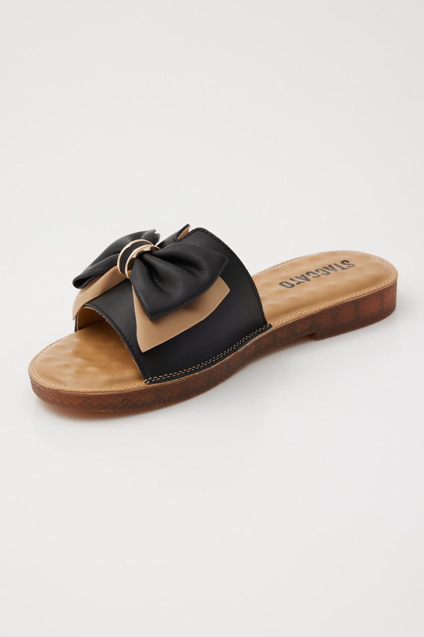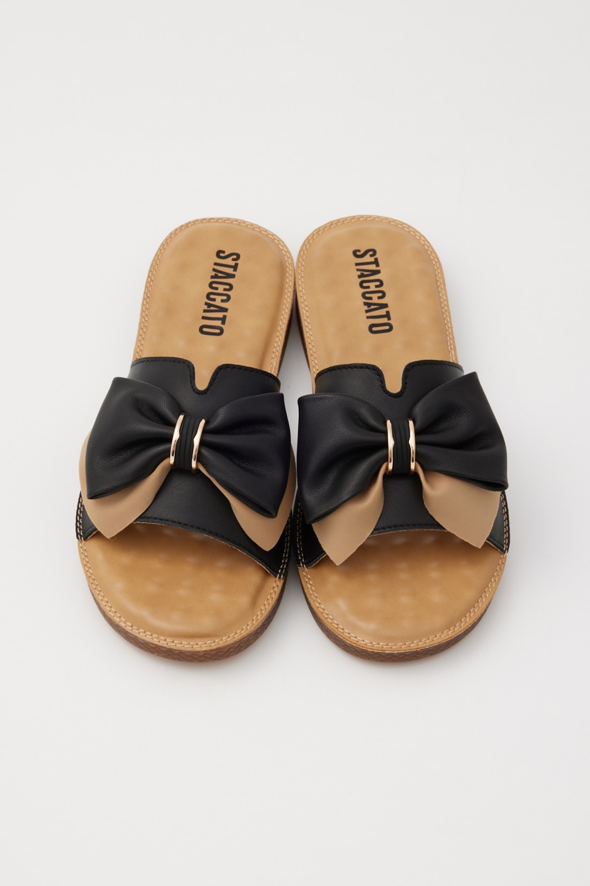 ”かわいい”を取り入れる、レディライクなスリッパサンダル。2トーンのWリボンデザインにスリッパ感覚で気軽に履けながらも意外とどんなコーディネートにも取り入れやすいデザインが、カジュアルになりすぎない上品さを与えてくれる一足。軽量&柔軟性もよく足に吸い付くようなゼリーのようなもちもちの履き心地です。