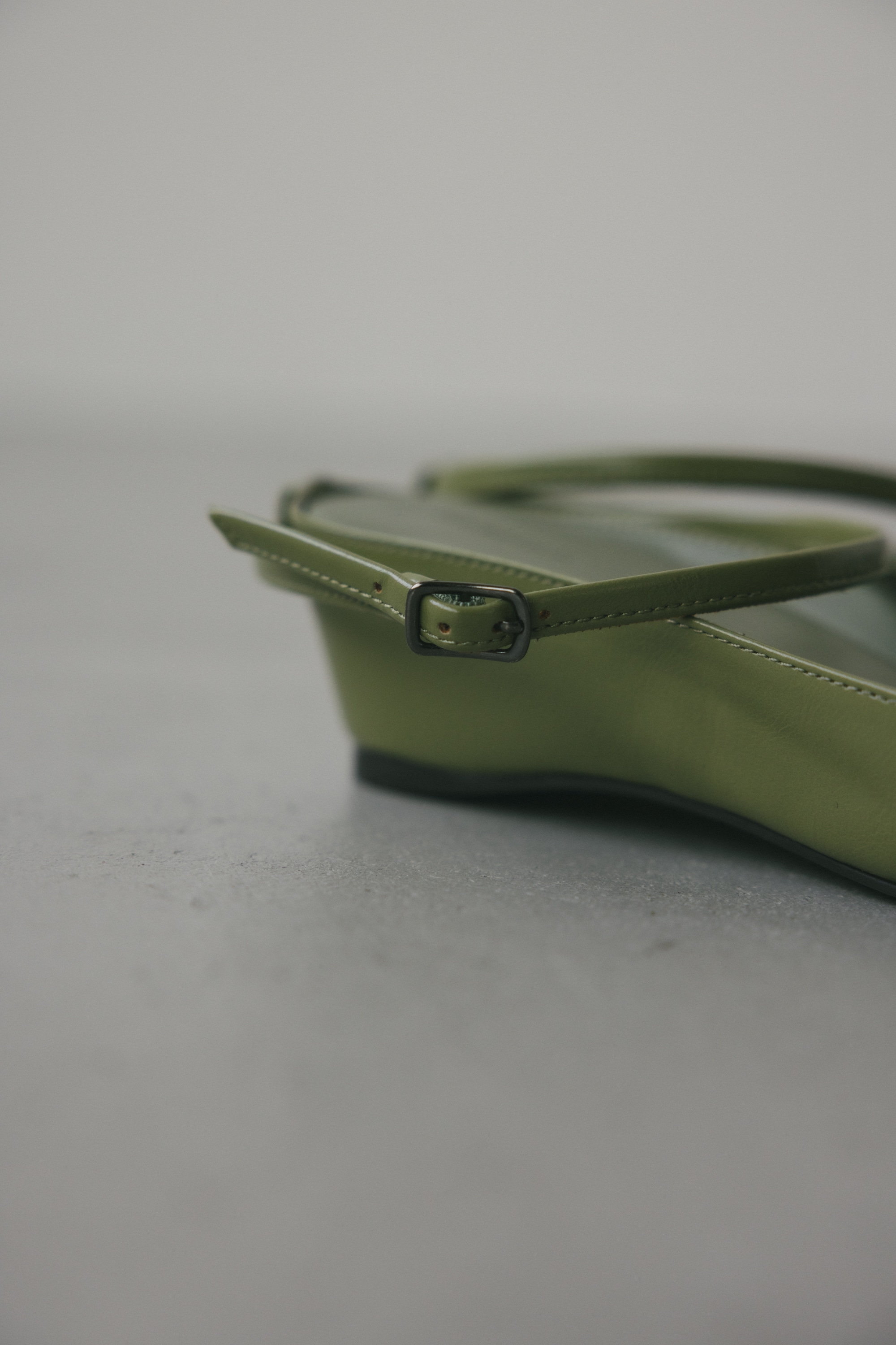 ウェッジソールから伸びるストラップがすっきりとした印象にみせてくれます。
