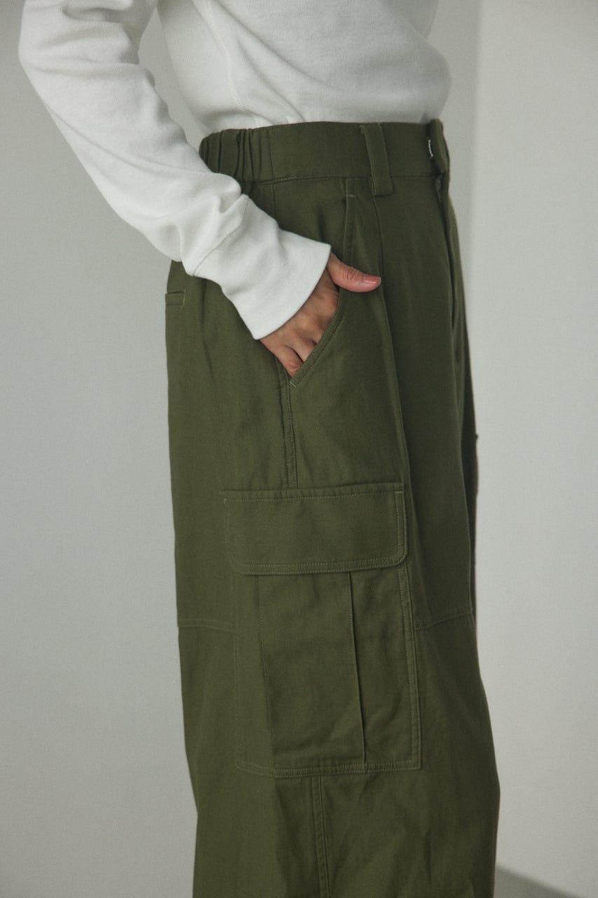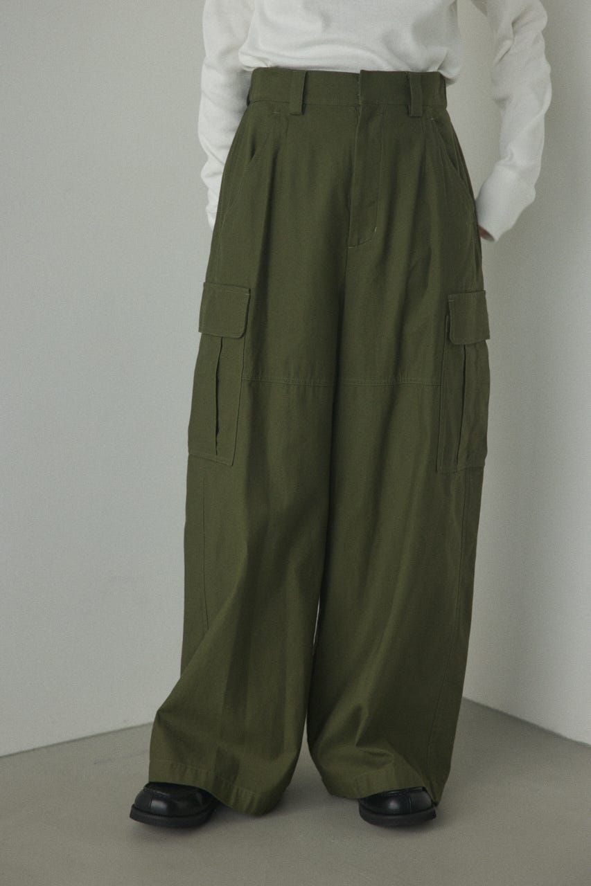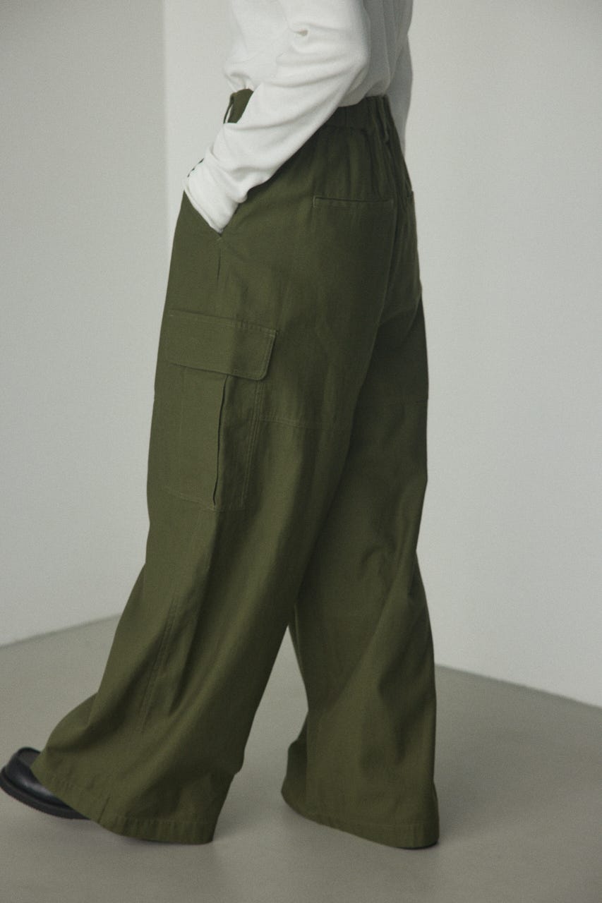 ワイドストレートのシルエットなので、トレンドスタイルがより楽しめるミリタリーボトムが登場しました。