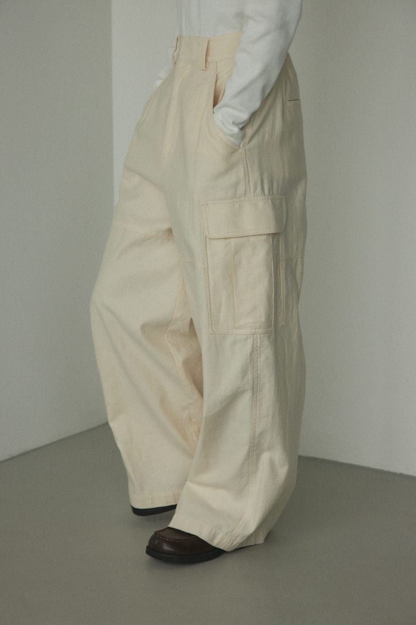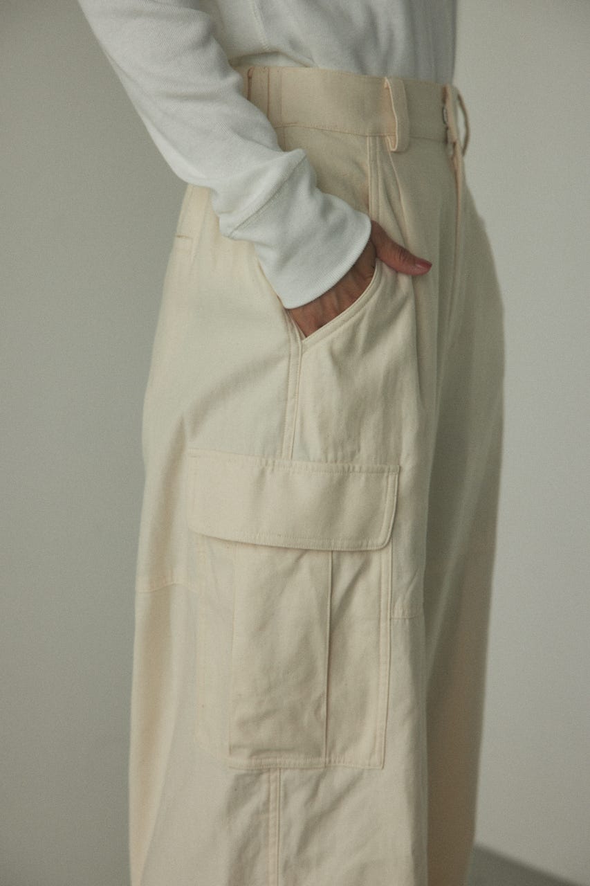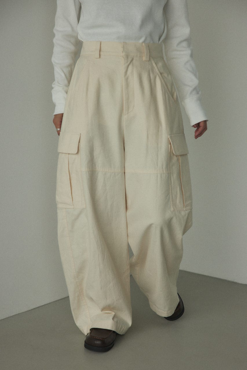 ワイドストレートのシルエットなので、トレンドスタイルがより楽しめるミリタリーボトムが登場しました。
