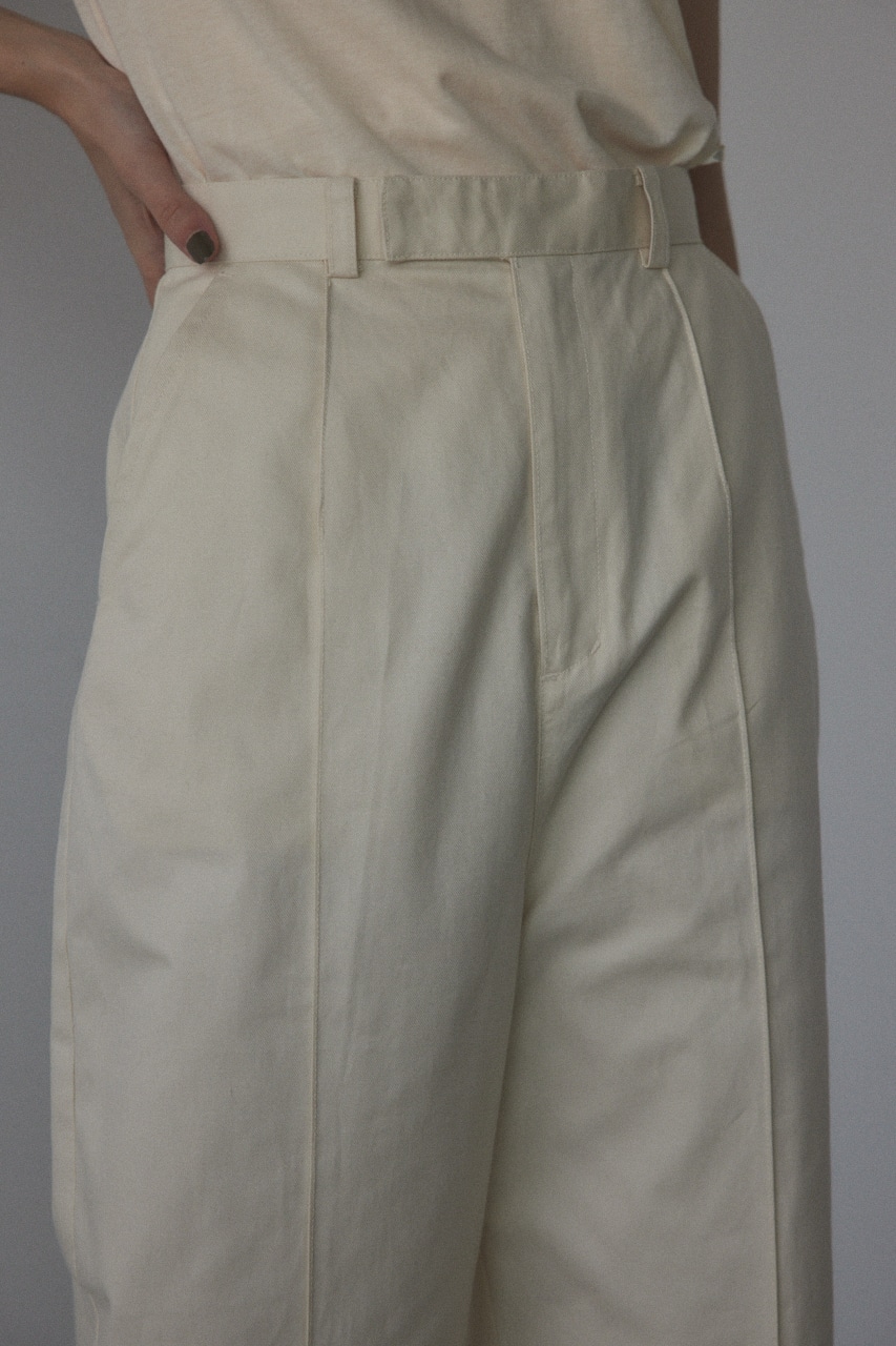 綾織りのミリタリーパンツなどを参考に作製された綿100%のサージ素材です。マシンウォシャブル仕様になります。