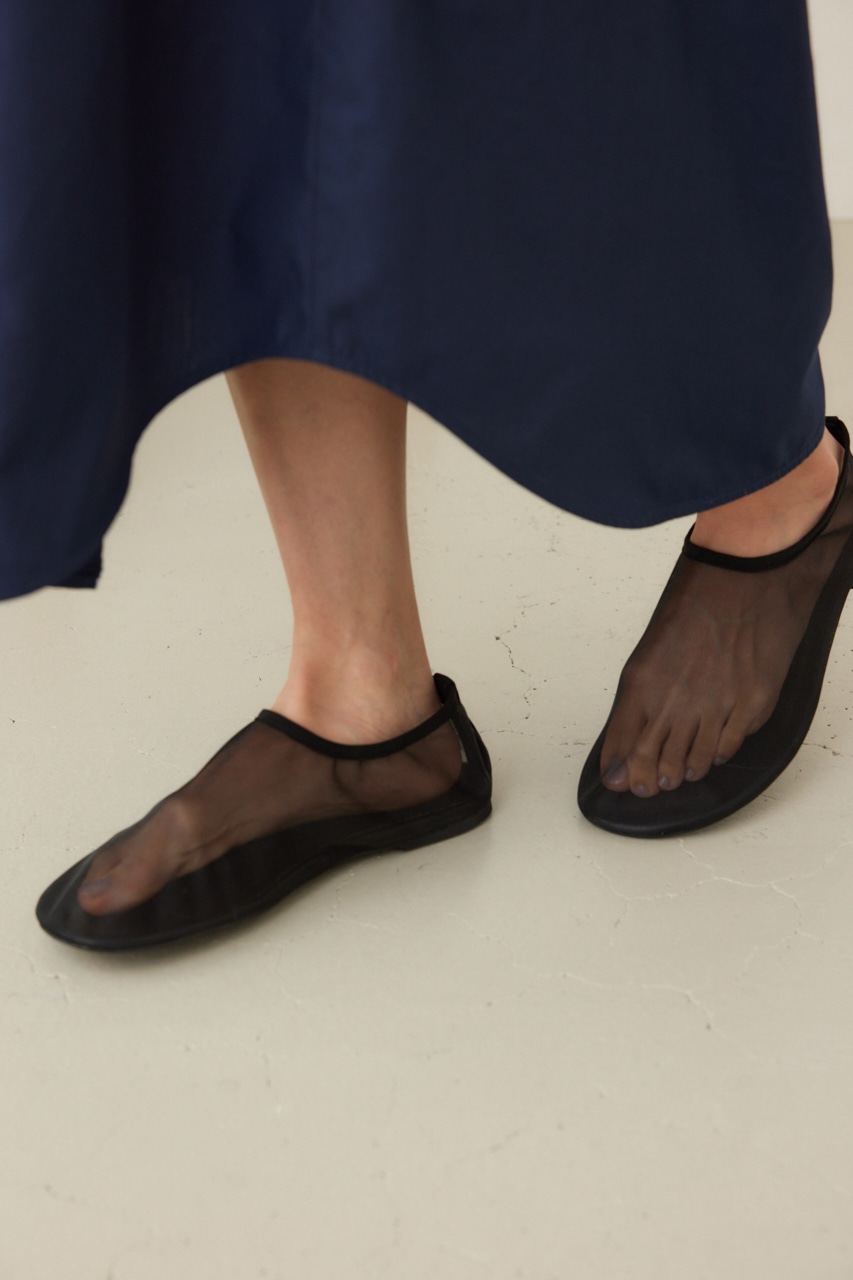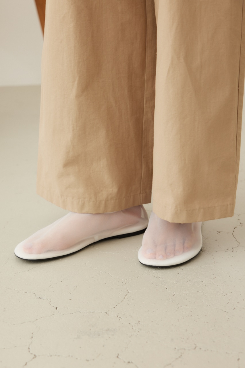 ・足と一体化するようなシアーな素材感で足が透けて見えるので、スタイリングに一気に今っぽい抜け感が出ます。
