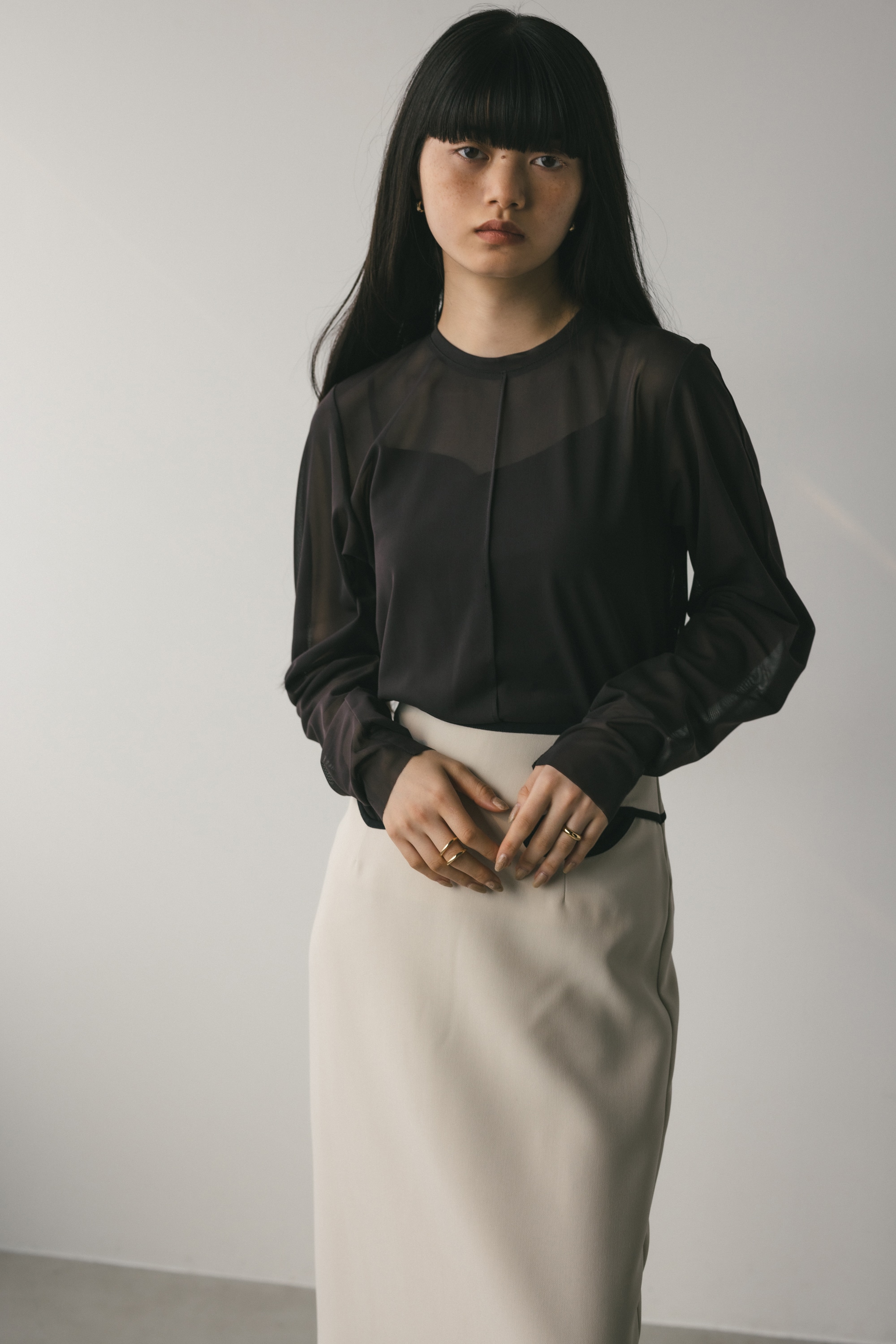 PNK,BRN:モデル身長165cm(FREEサイズ着用)IVO,GRY:モデル身長167cm(FREEサイズ着用)