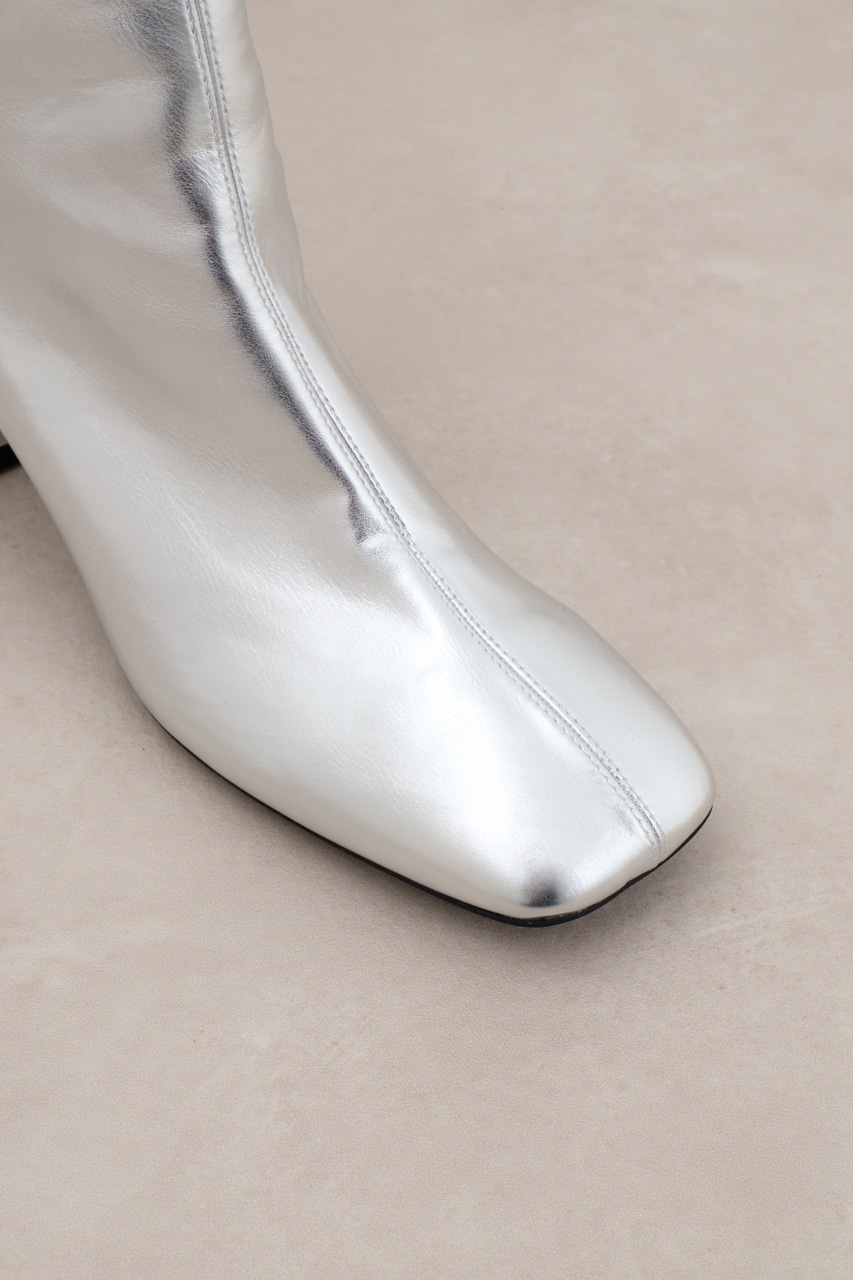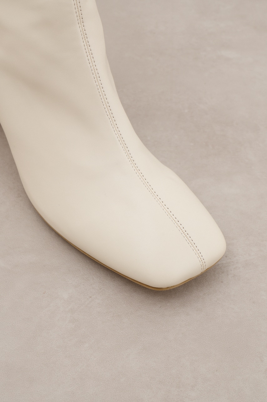 ・シンプルながら踵の切り替えやトレンドのスクエアトゥでクールな印象に。