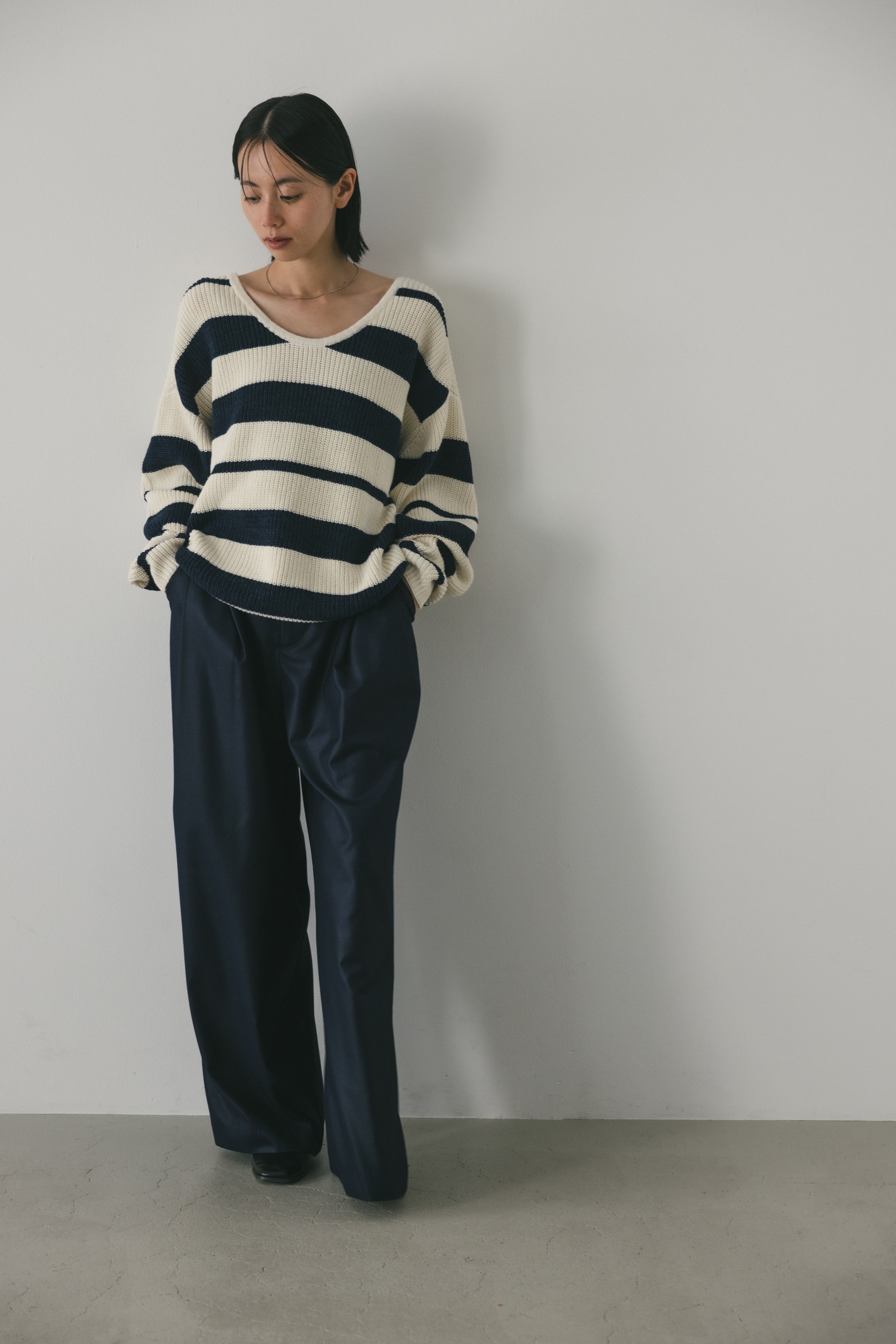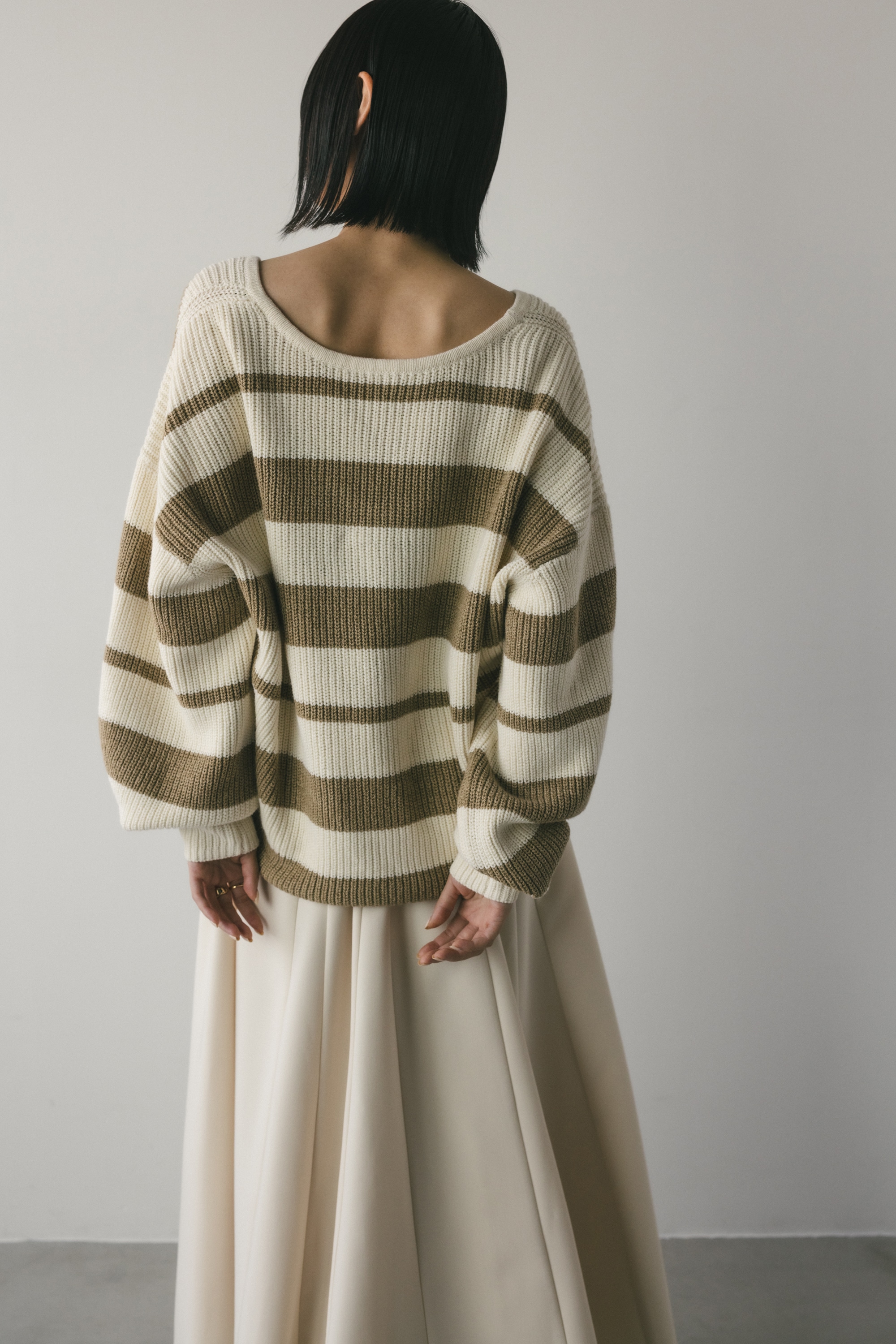 前後2WAY着用可能な女性らしいネックラインがポイントのボーダーニット。