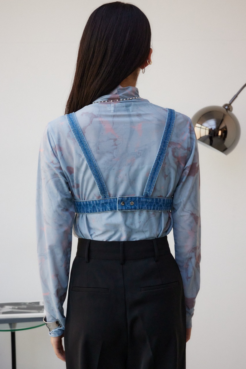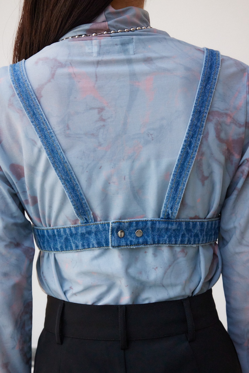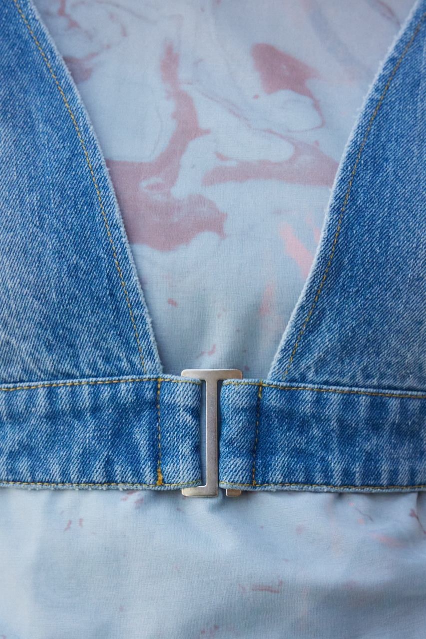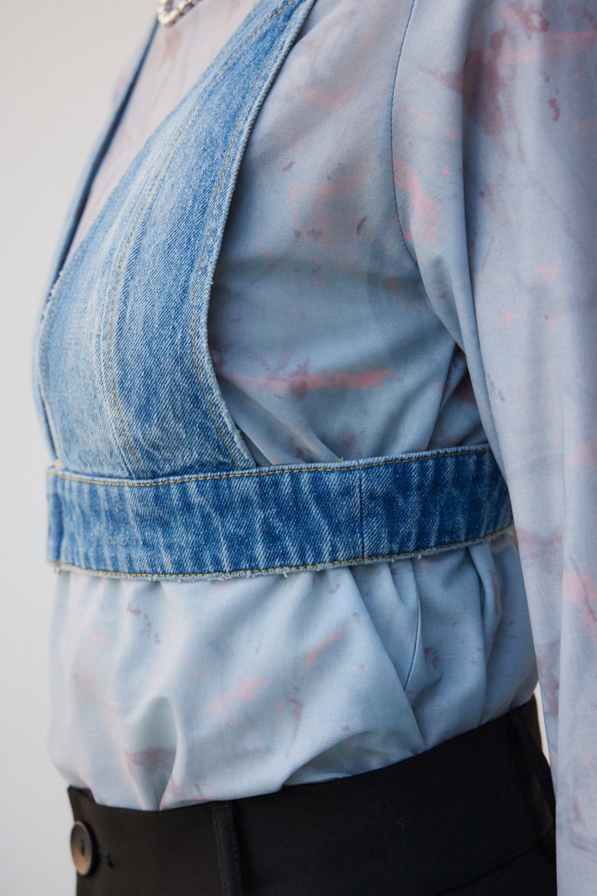 ・程よい生地に肉感があるデニムを使用し、加工を施すことでビンテージ感を演出したデニムビスチェです。