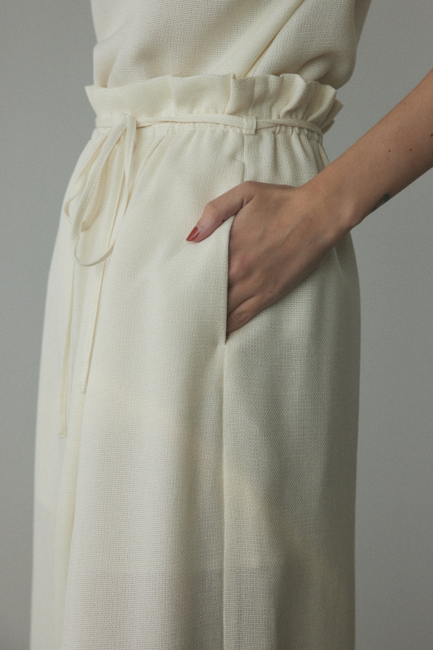 ウエスト部分のタックデザインがポイントでシンプルなトップスとの相性も抜群です。