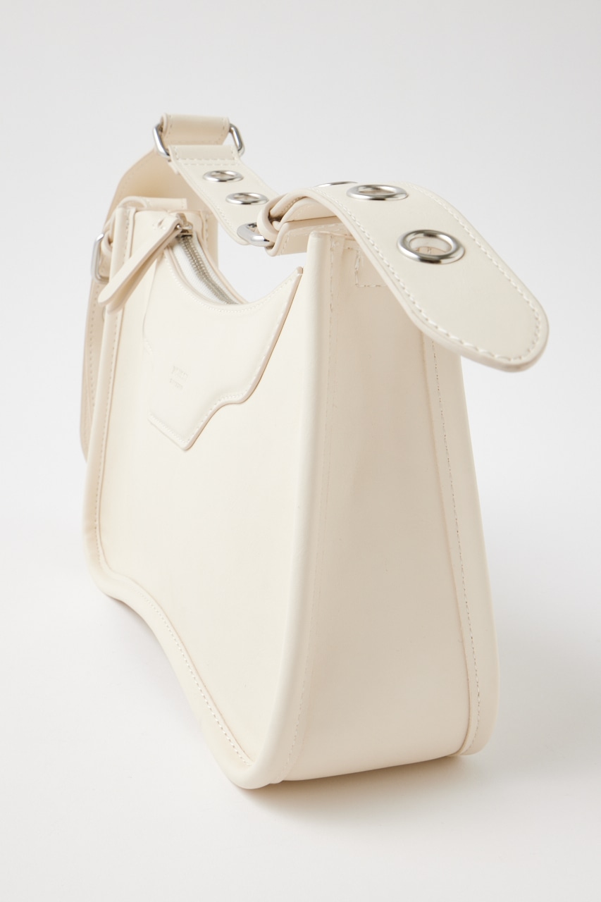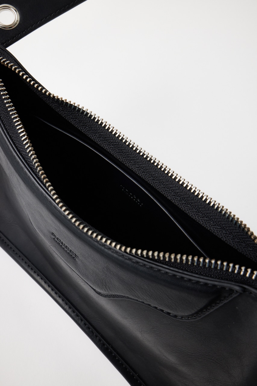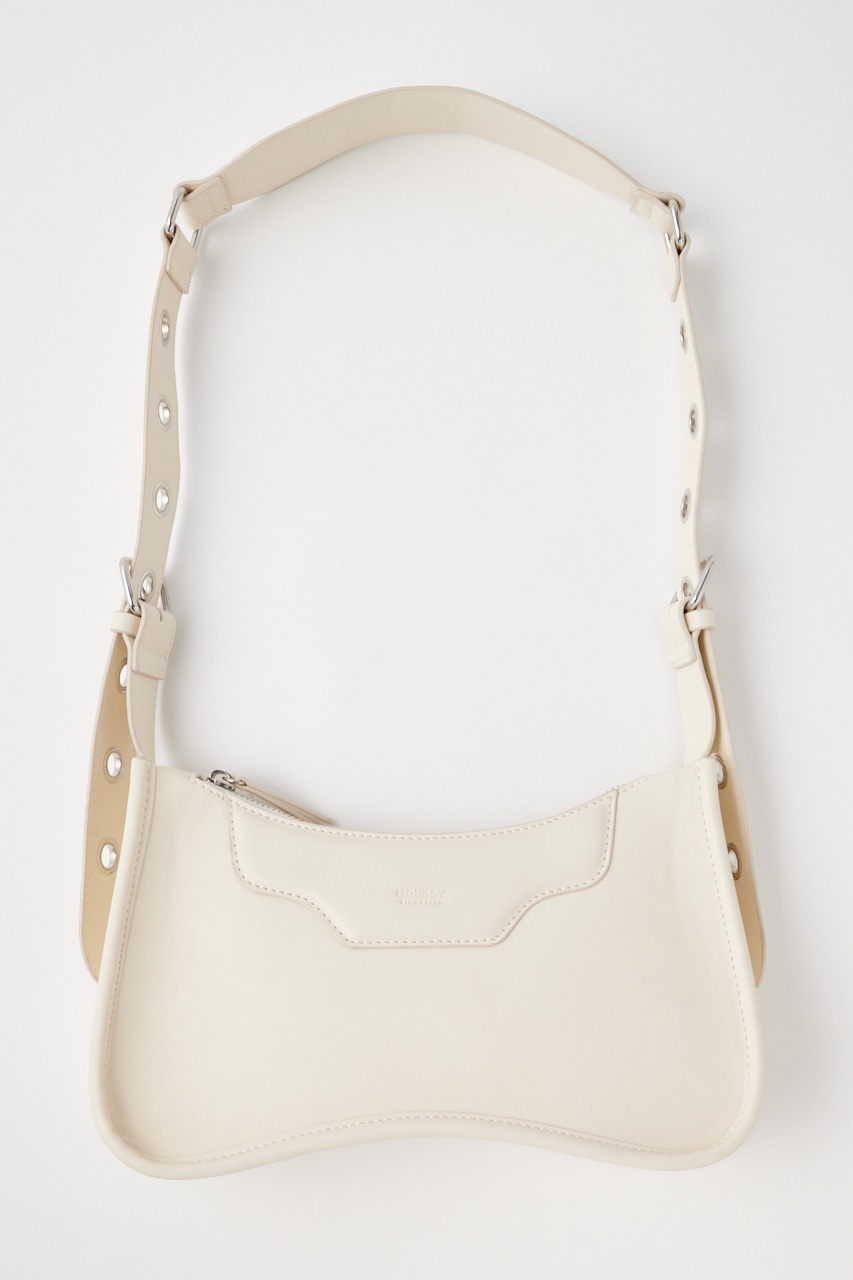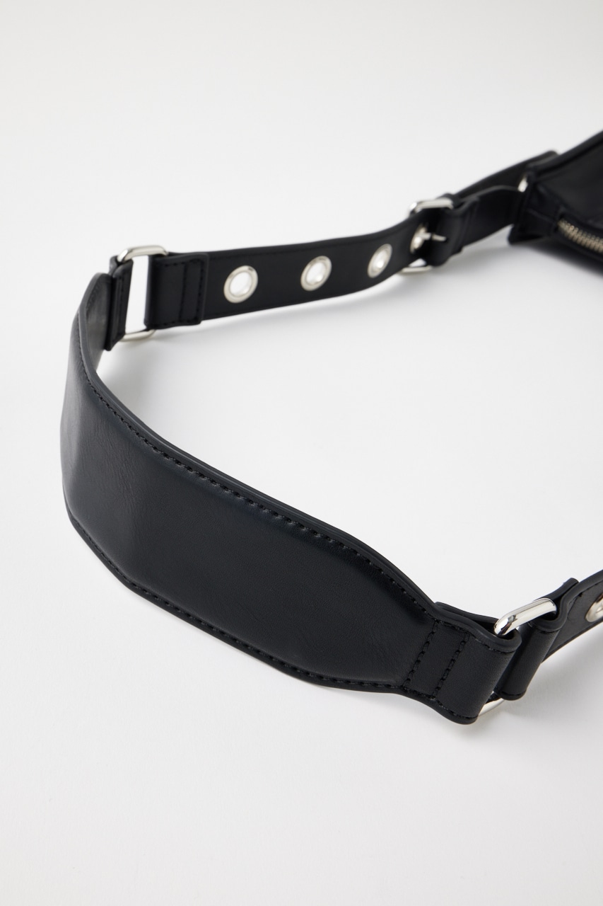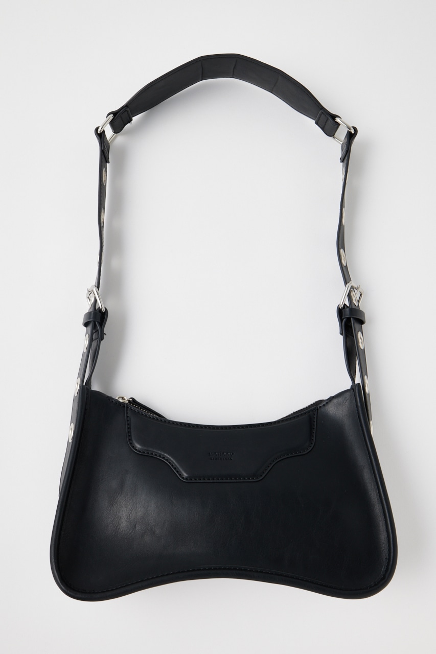 ショルダーのアイレットで自在に長さ調節ができ、肩掛けから最大では斜めがけも可能。