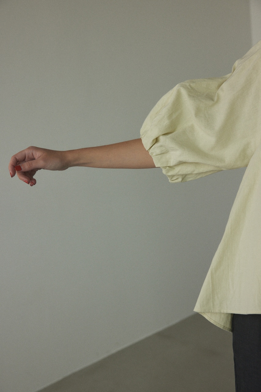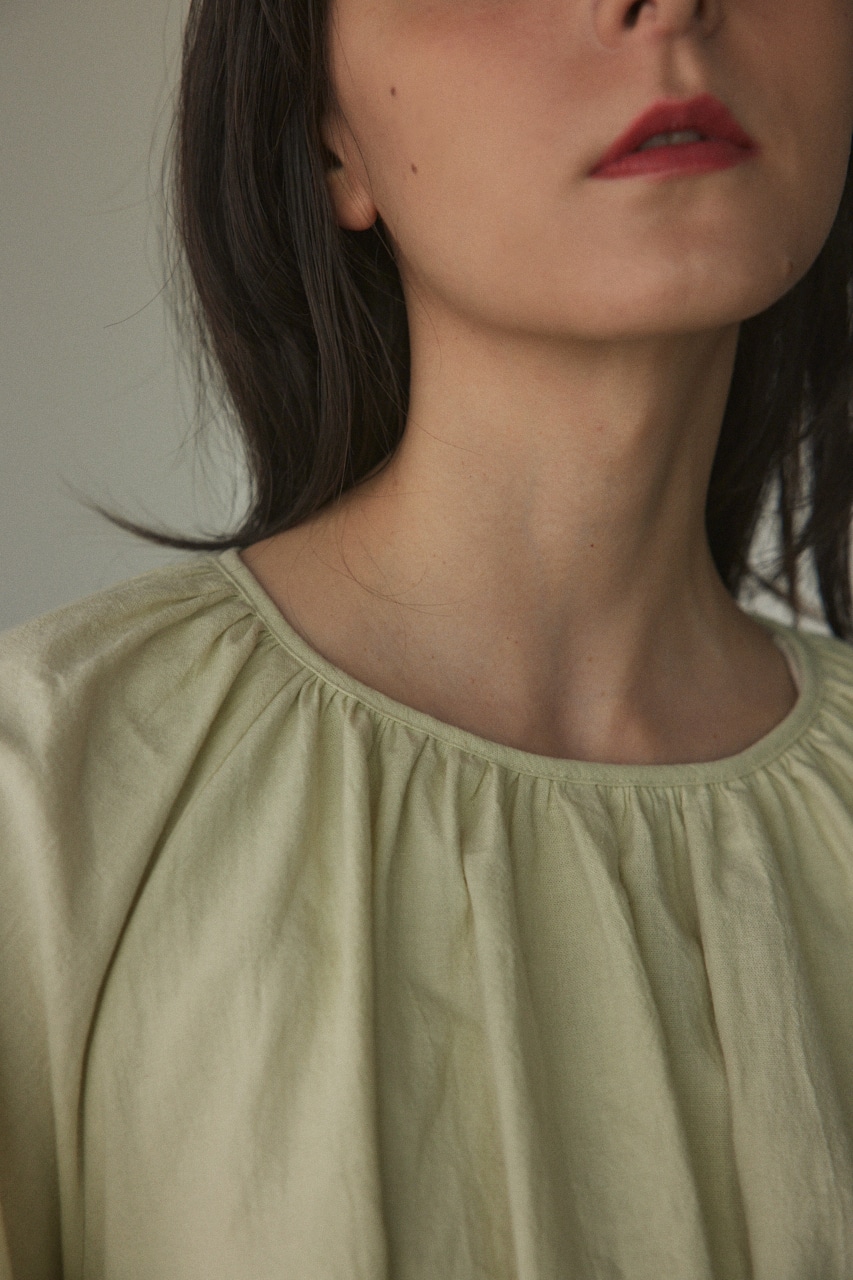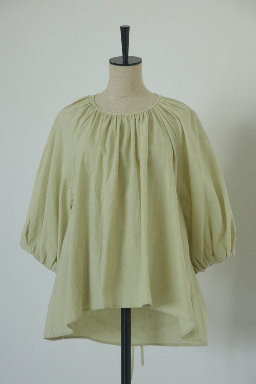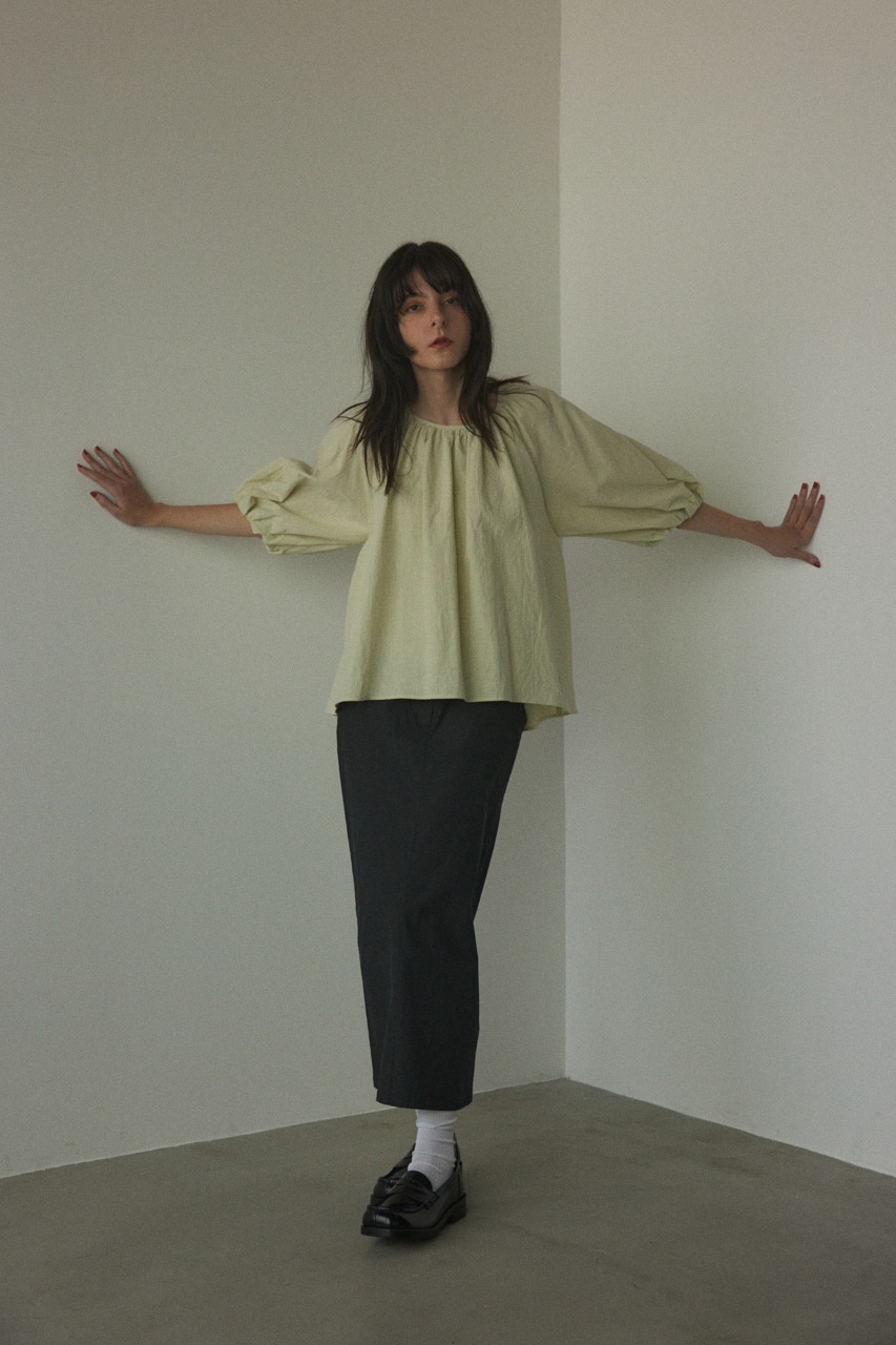 コットンリネンの混紡糸に、洗い晒し風のシワ感と膨らみ感を表現したナチュラルな風合いの素材です。