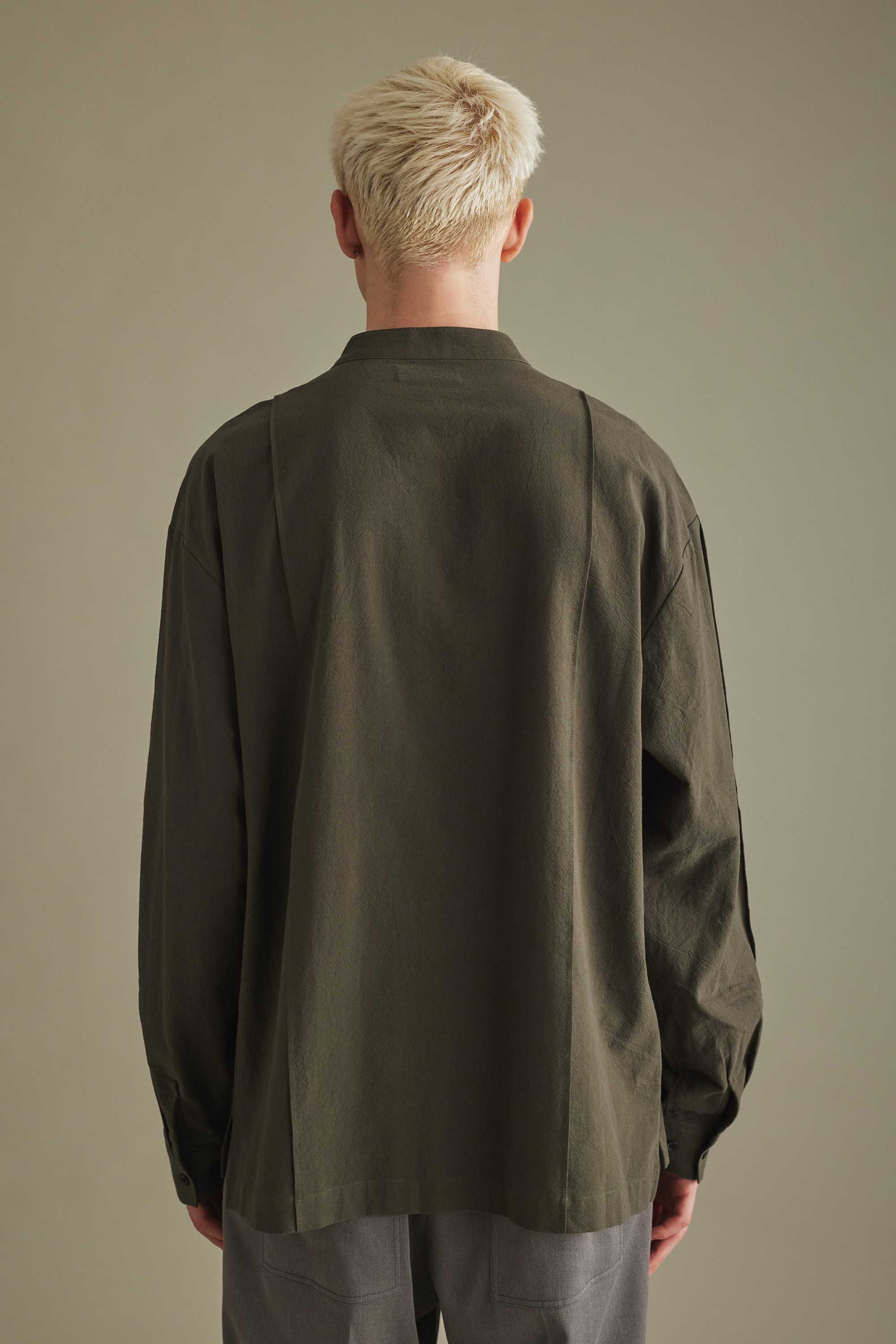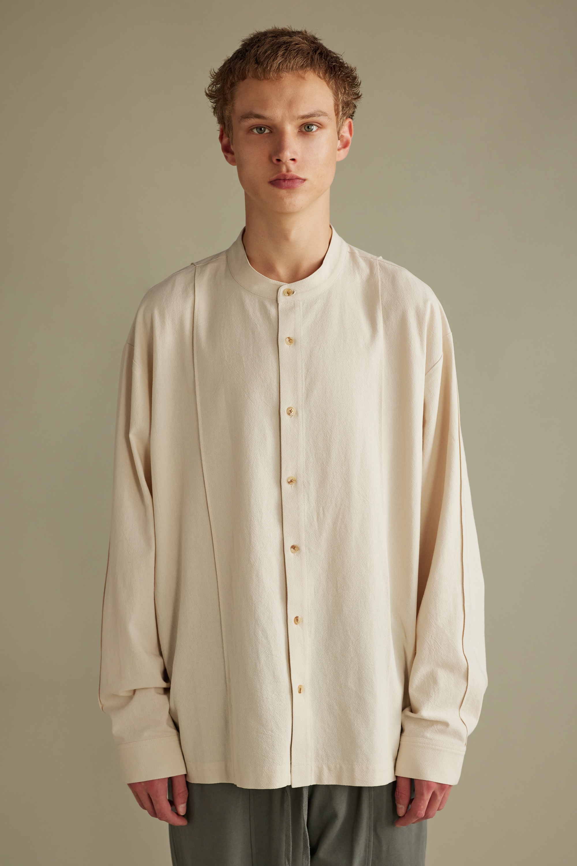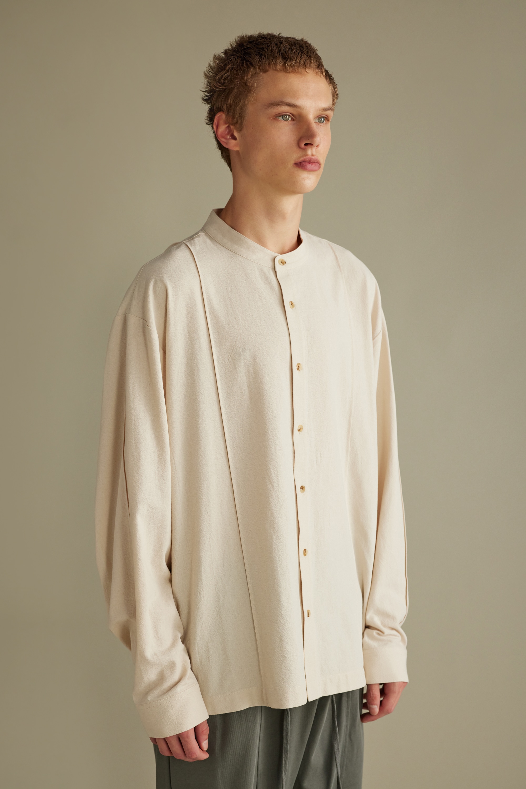 バンドカラーシームデザインシャツ