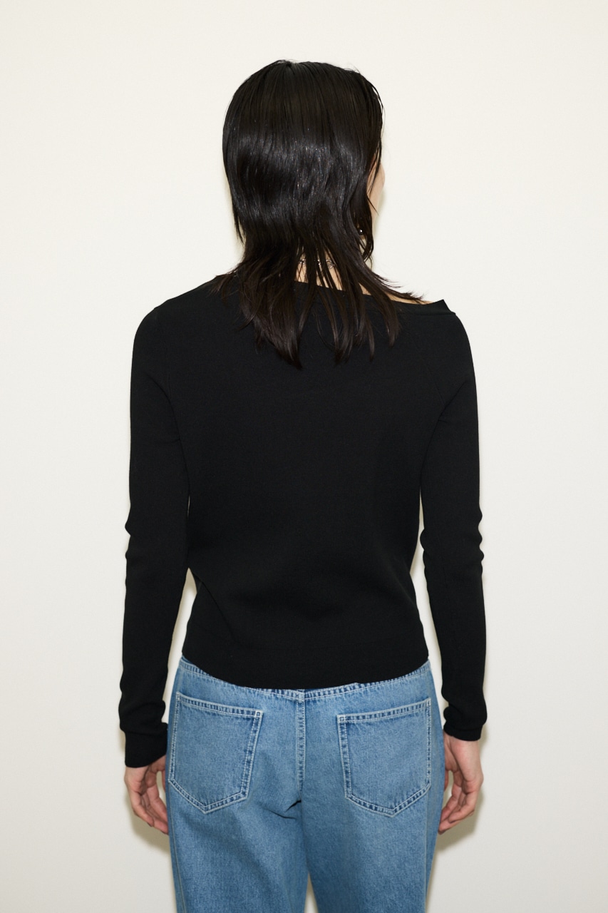 ■DETAIL:ラグランとセットインの左右アシンメトリーなデザインと斜めの開きのディテールが目を引き、デコルテラインがきれいに見える程よい肌見せ感も着用するだけで女性らしい印象に。