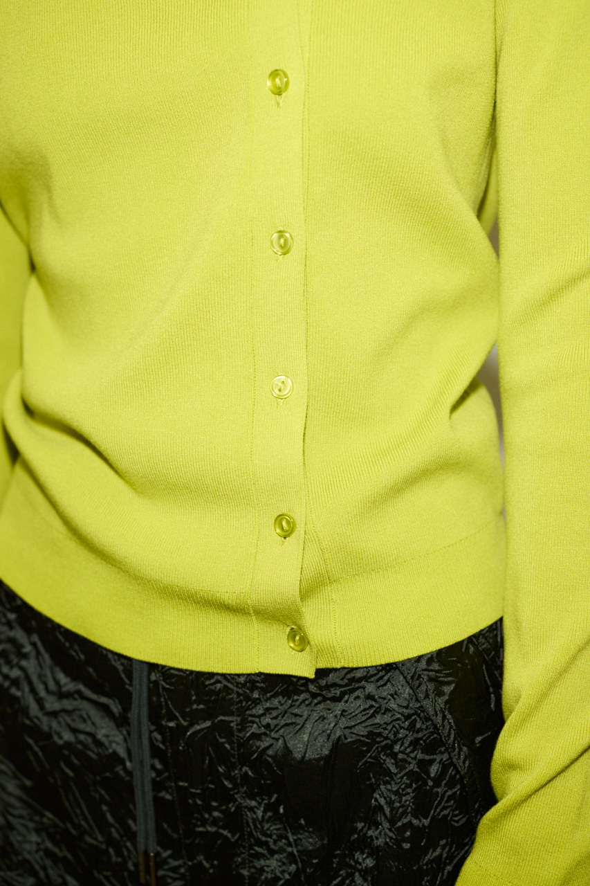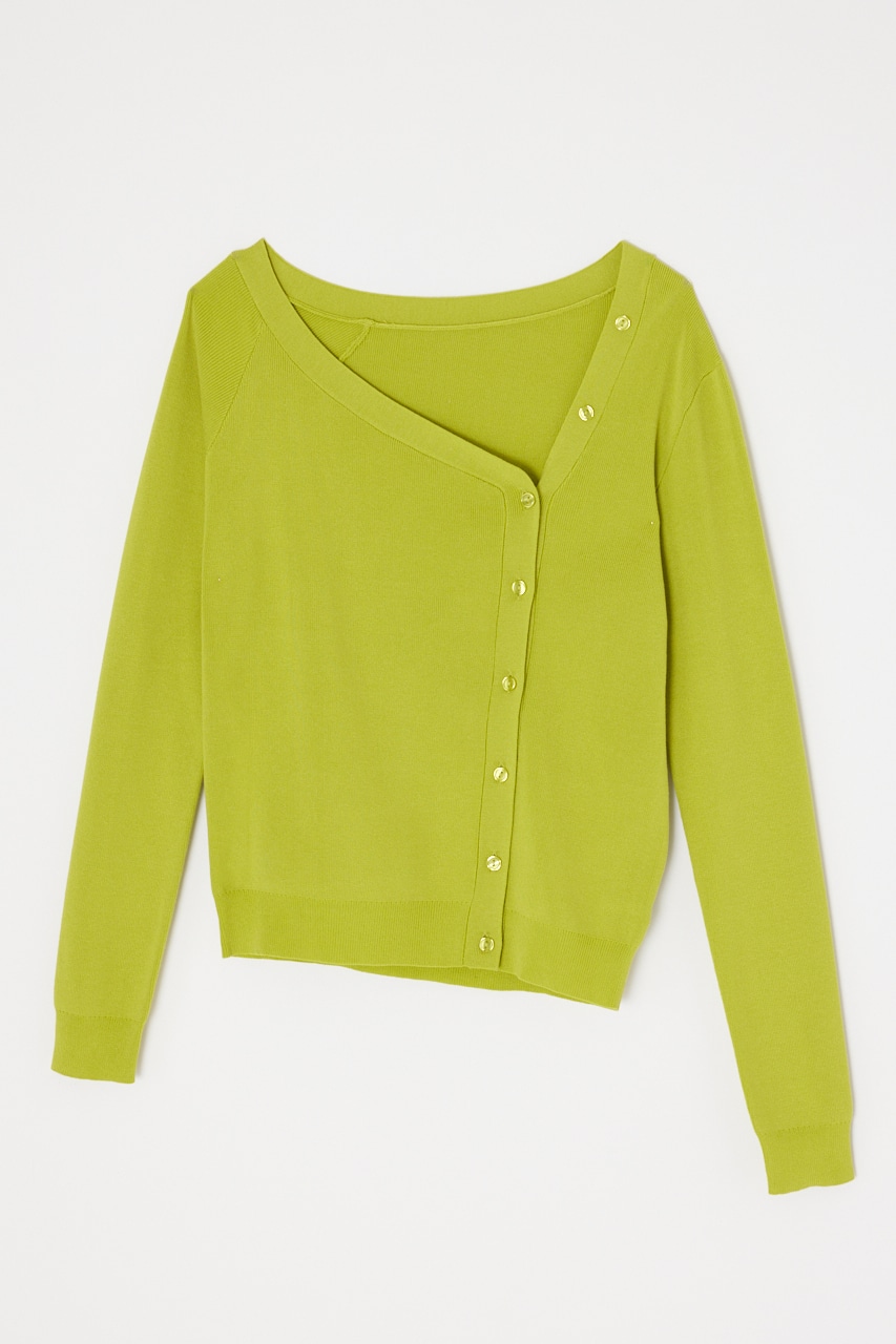 ■POINT:レーヨン混の肌触りのよいハイゲージ素材を使用したアシンメトリーカーディガン。