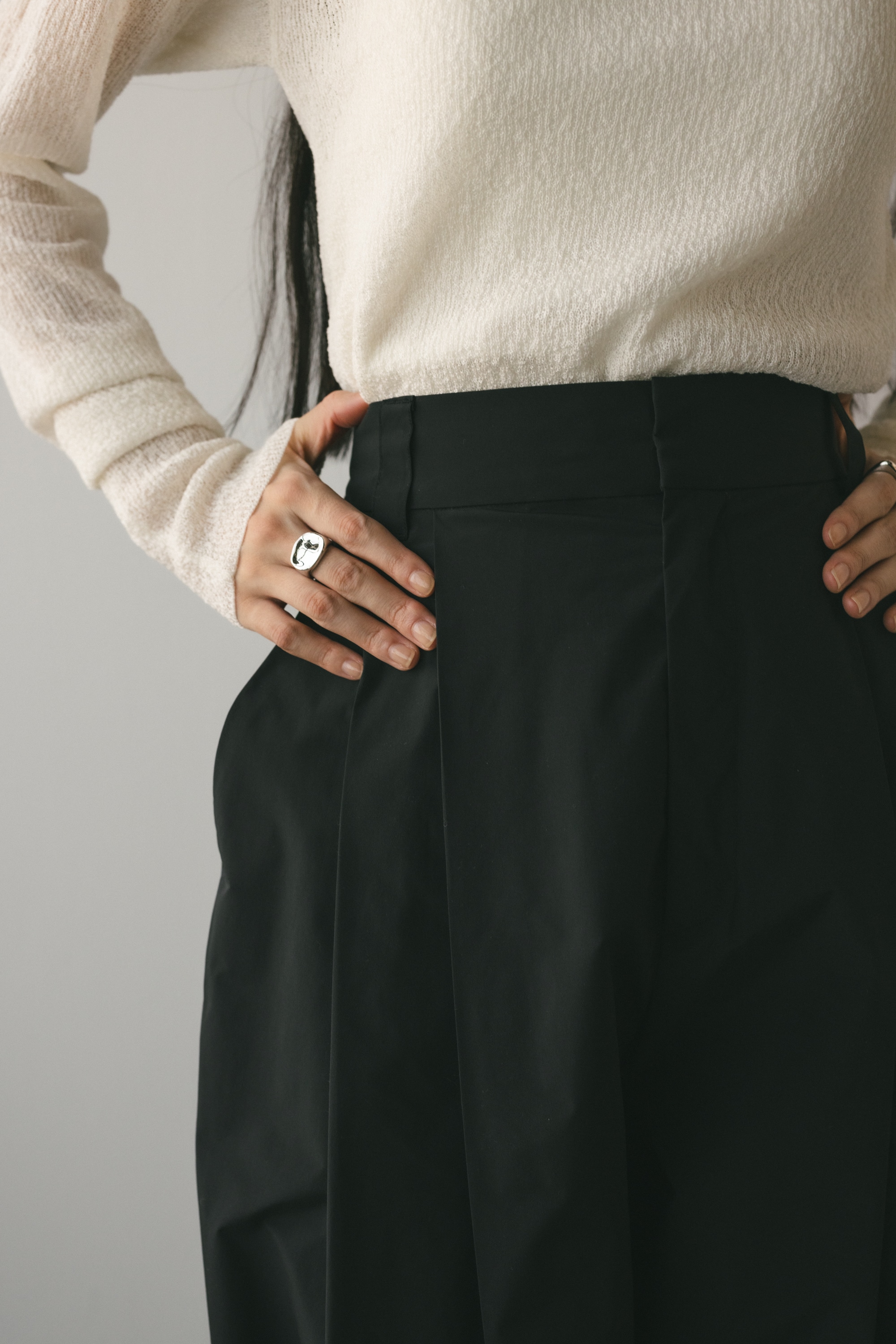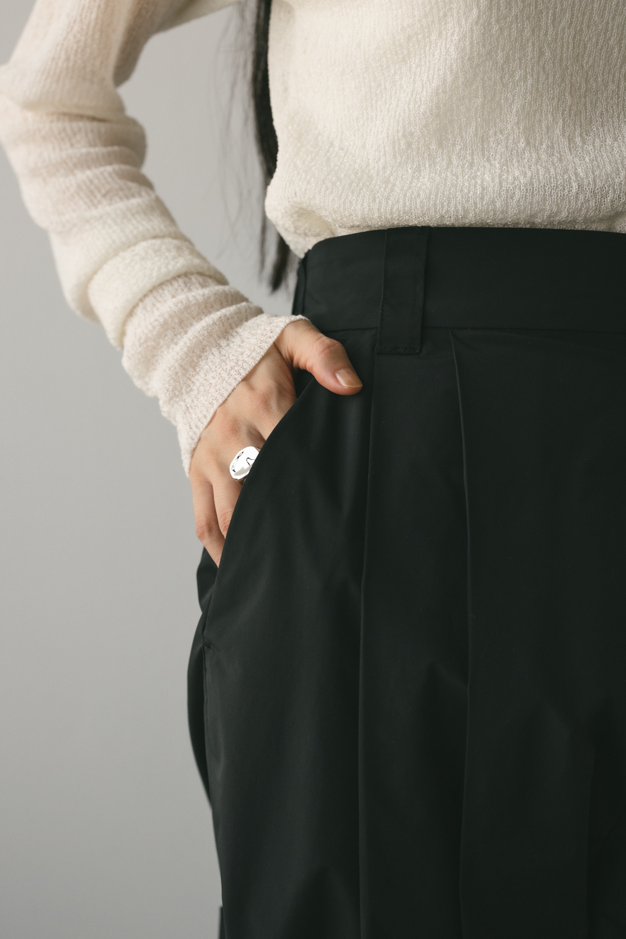 タックを入れたフォルムシルエットがモードカジュアルなタックパンツ。