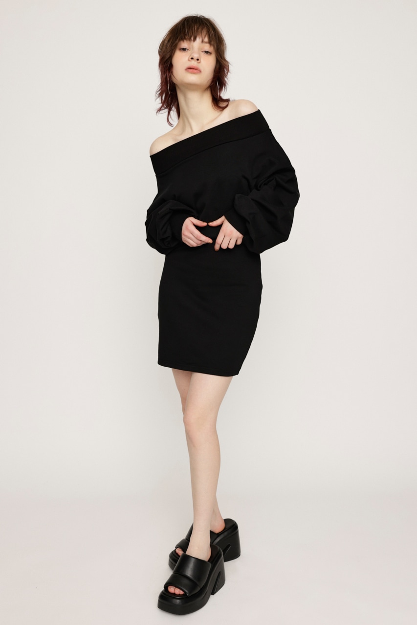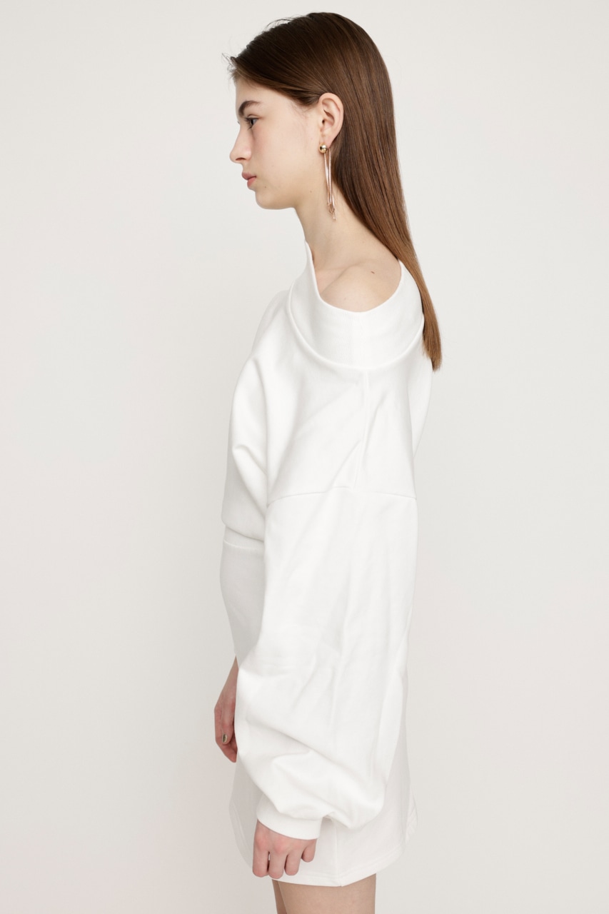 ■DETAIL:オフショルダーやワンショルダーとして着用できるサイズ感で、ウエストはゴム仕様なので、楽に着用できます。身体のラインを拾い過ぎない程よい肉感のスウェットを使用しているので、一枚で様になるアイテムです。