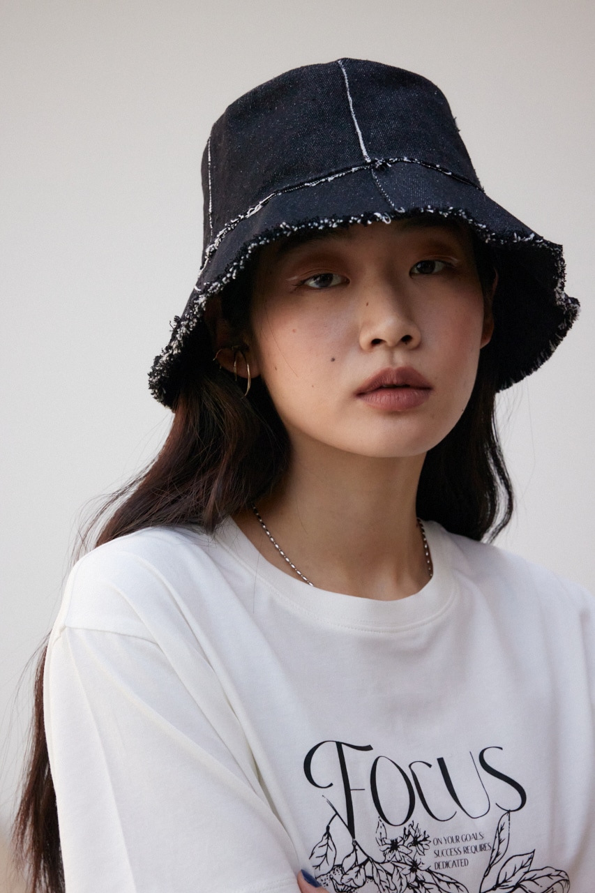 ・デニム素材とアウトステッチがポイントのバケットハットです。