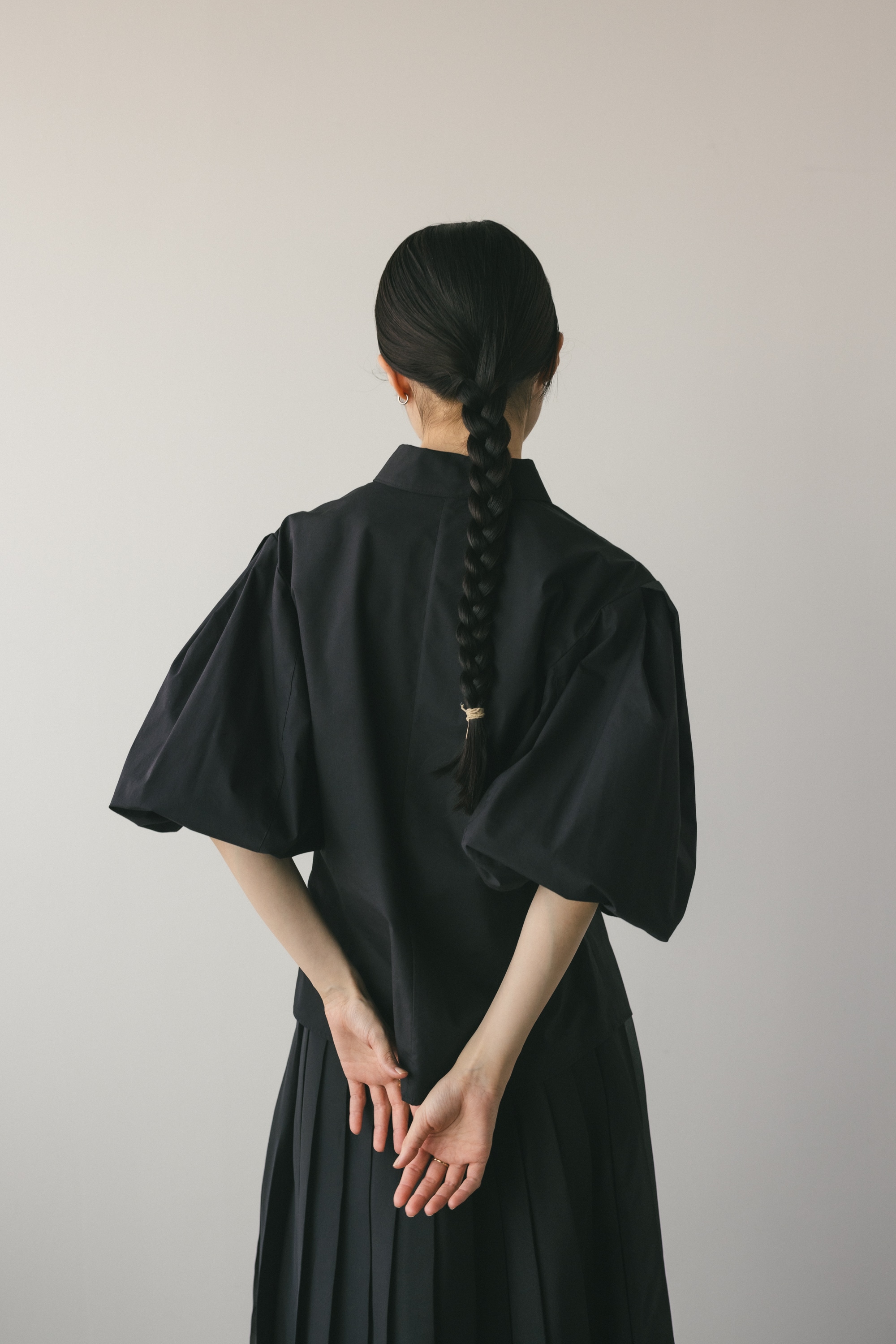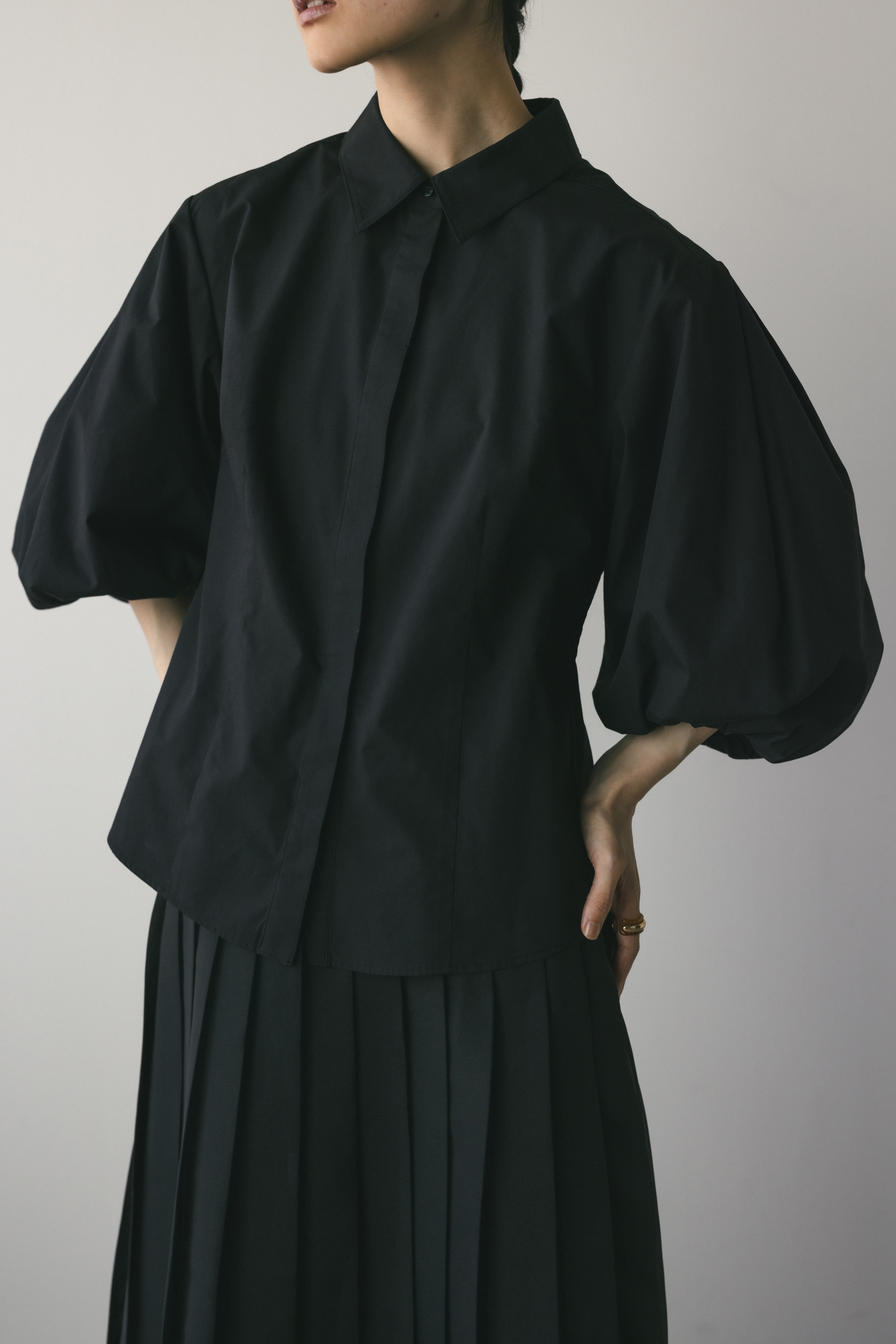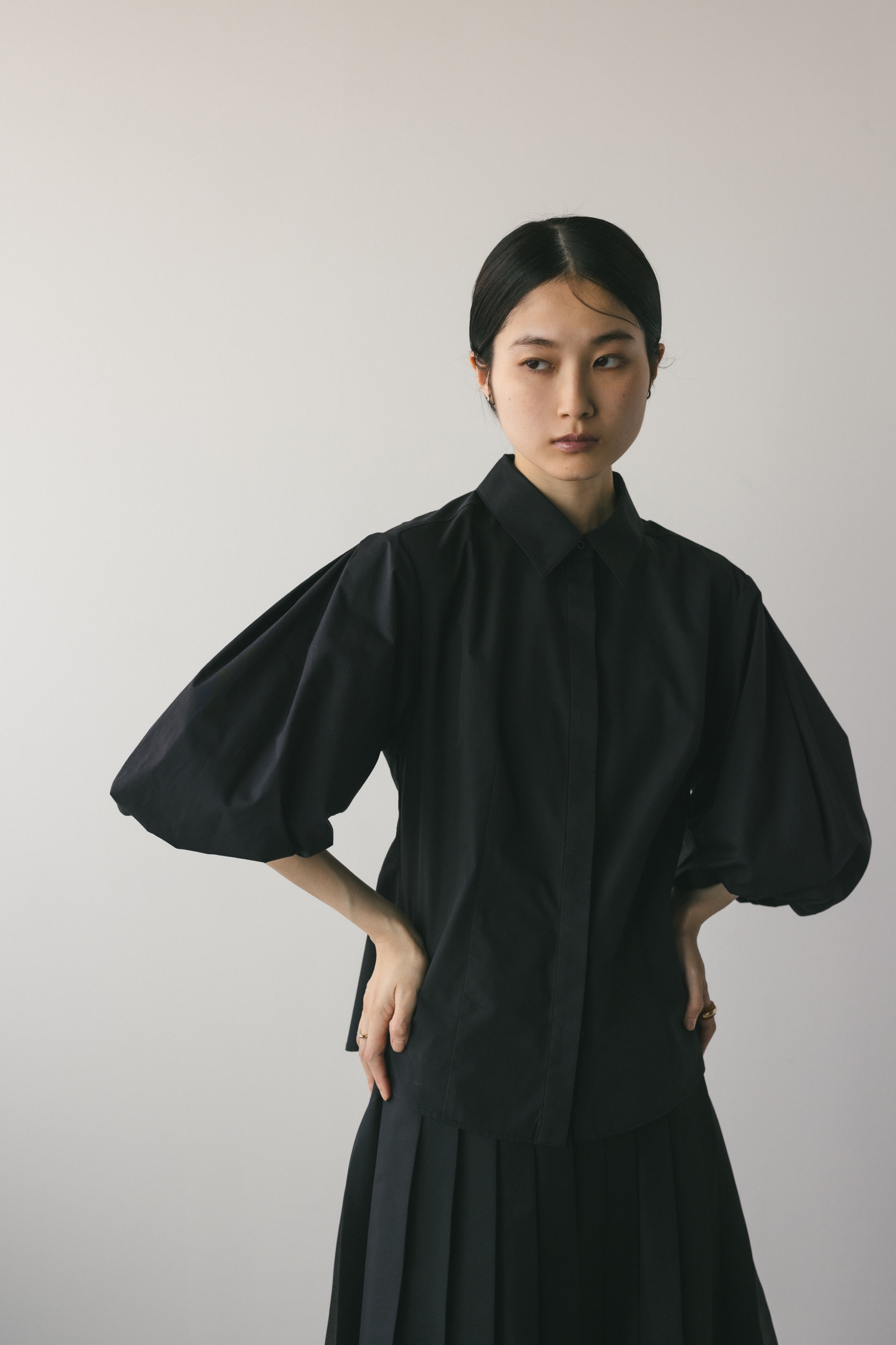 ボリューム感のあるバルーンスリーブとすっきりと細身に仕上げた身頃のメリハリのあるシルエットがポイント。